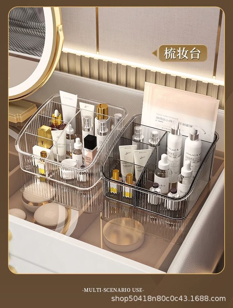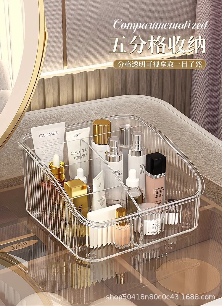 化妆品收纳盒桌面护肤品整理盒梳妆台化妆刷口红置物架五格收纳盒