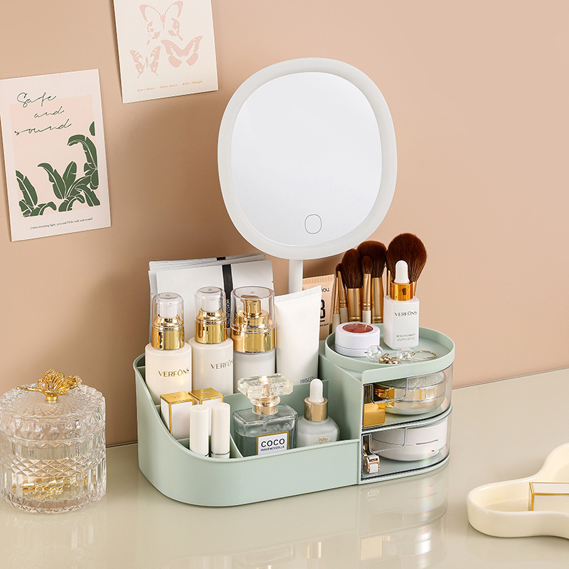 化妆品收纳盒桌面梳妆台化妆镜护肤品置物架口红整理箱桌上抽屉式