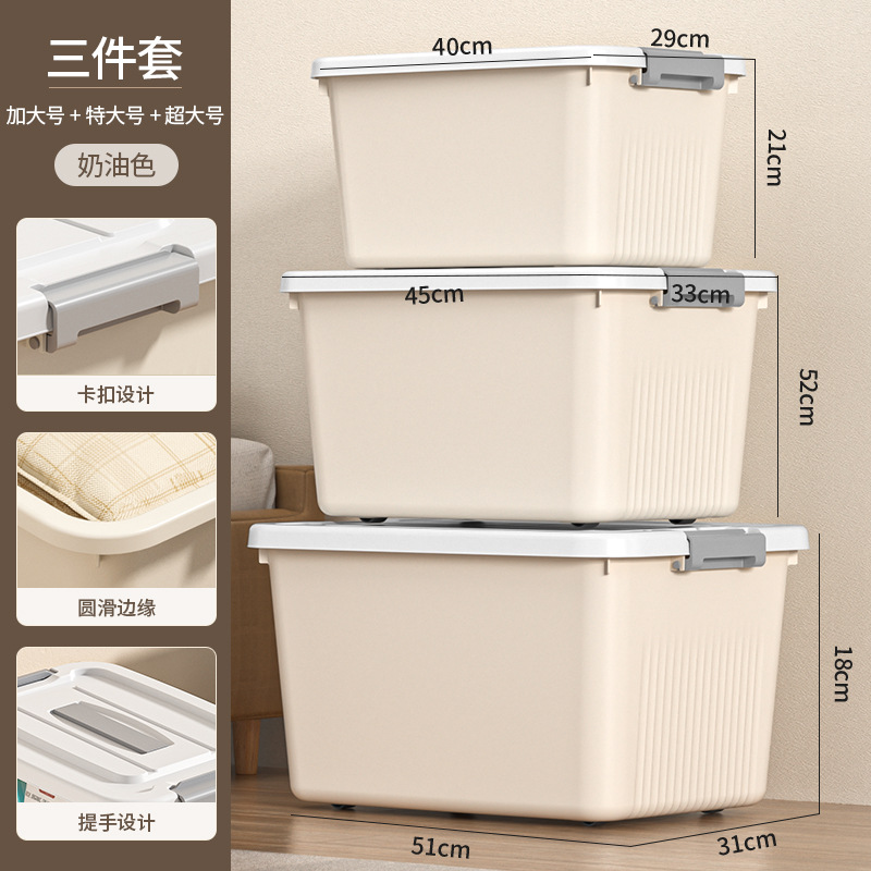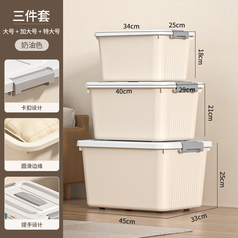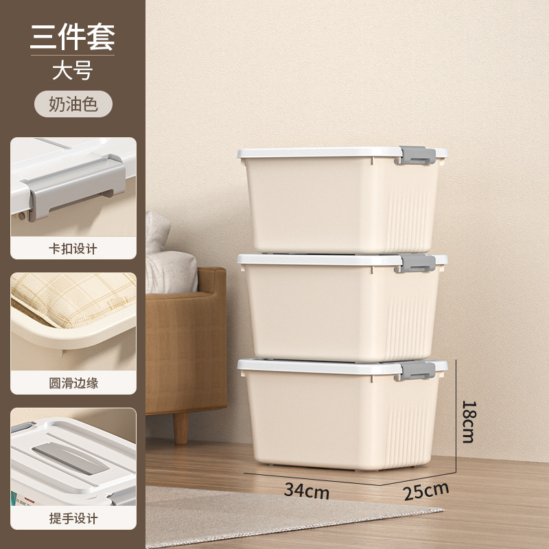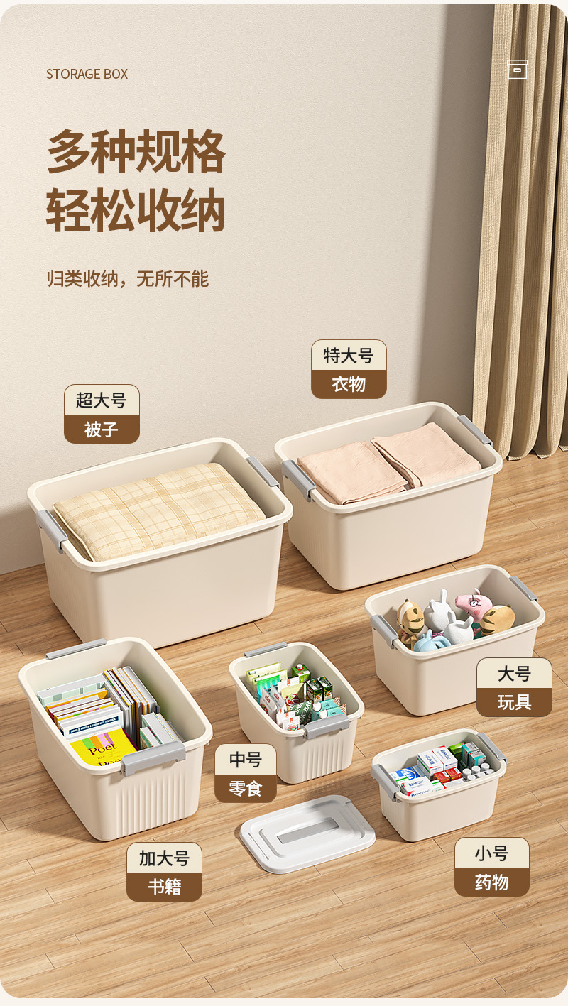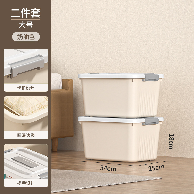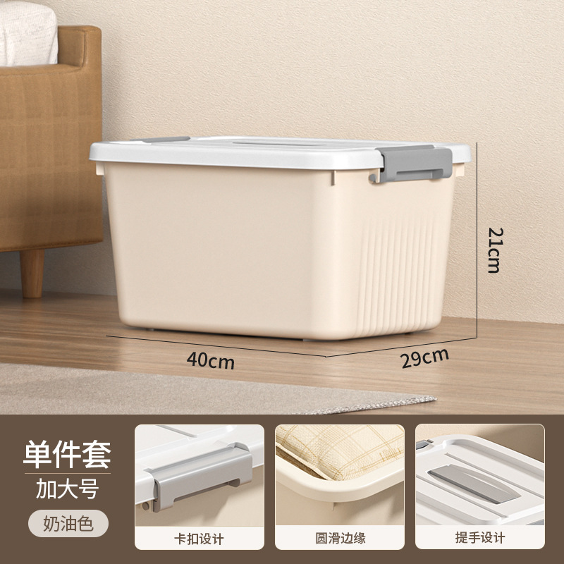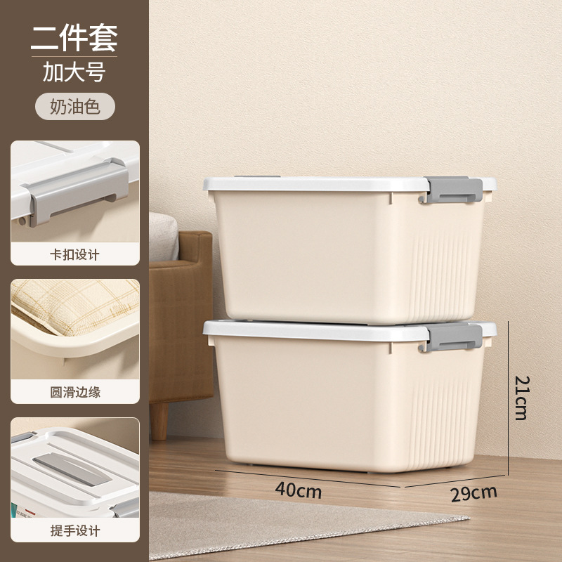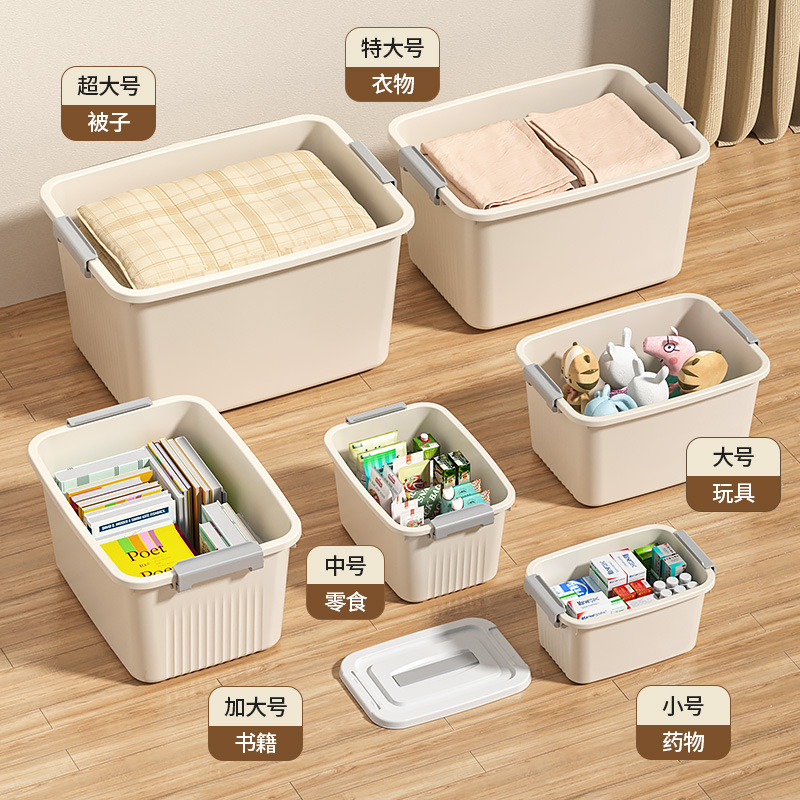 加厚家用收纳箱塑料奶油风收纳大容量衣服整理盒带盖桌面收纳盒