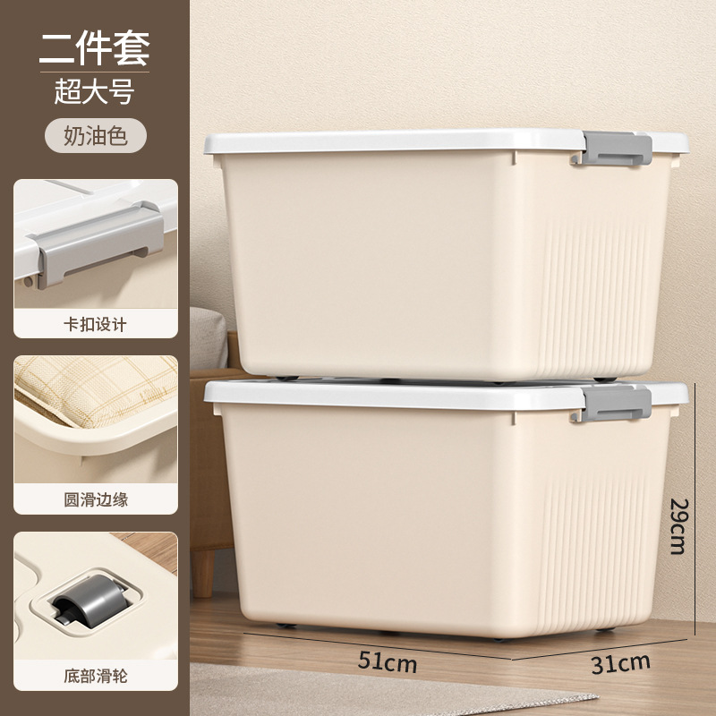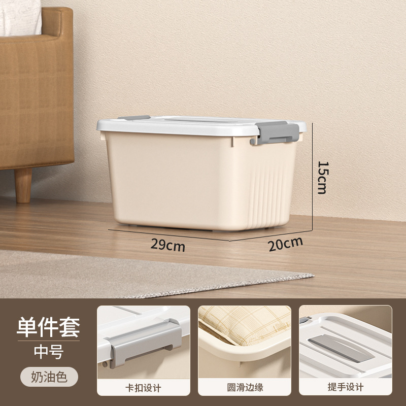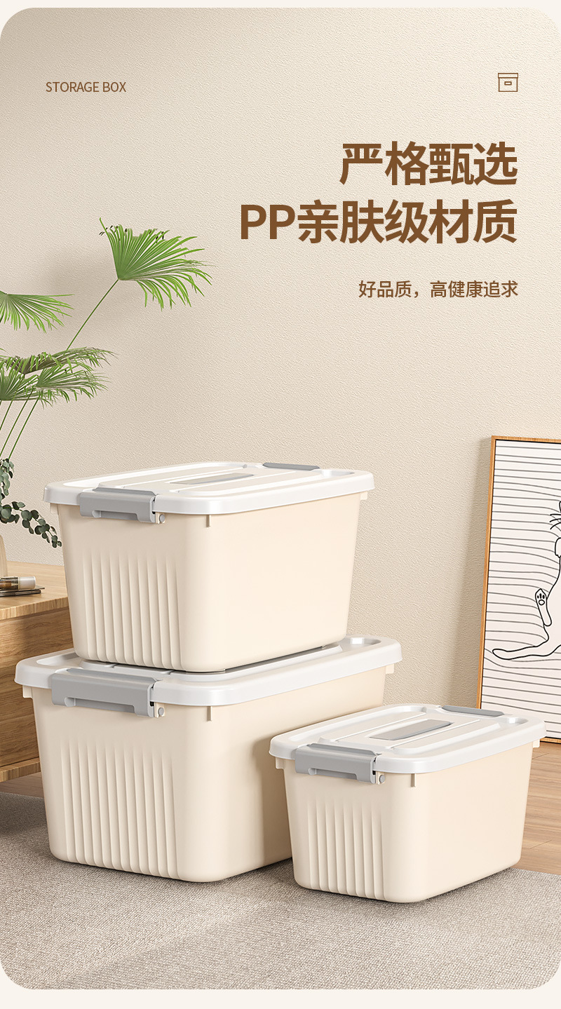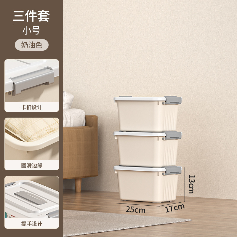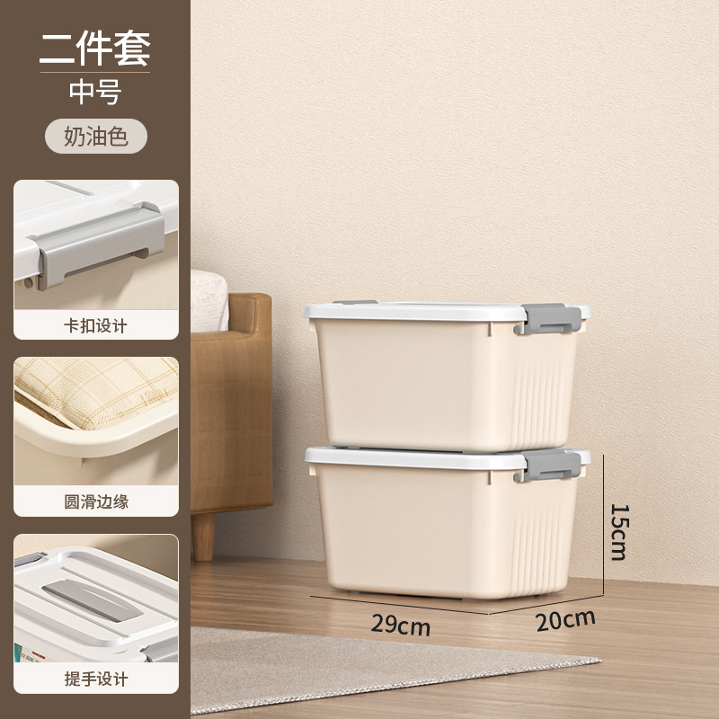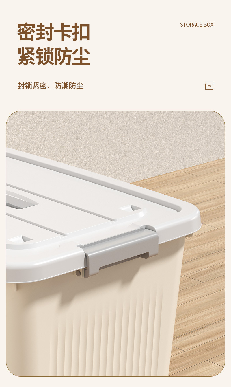加厚家用收纳箱塑料奶油风收纳大容量衣服整理盒带盖桌面收纳盒