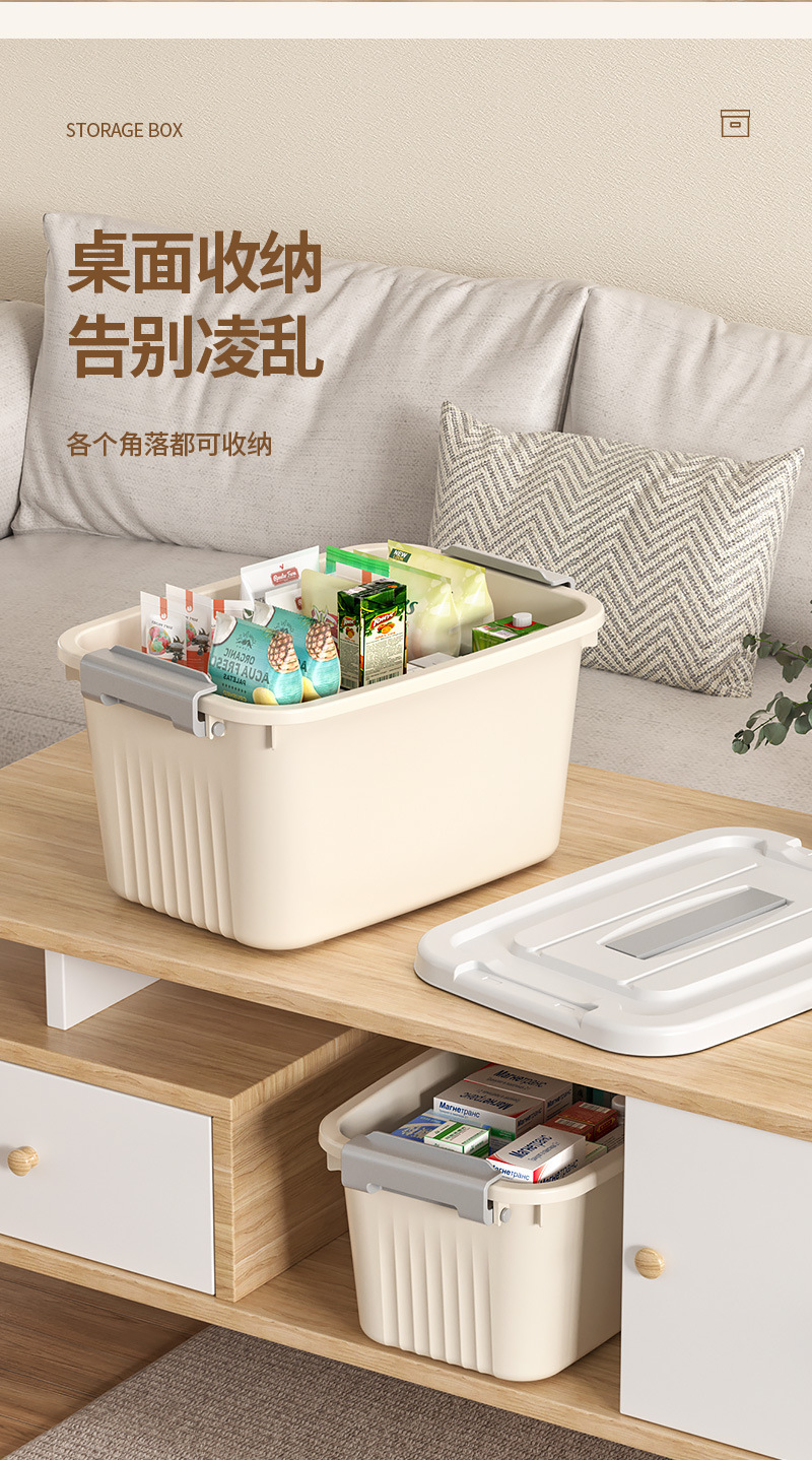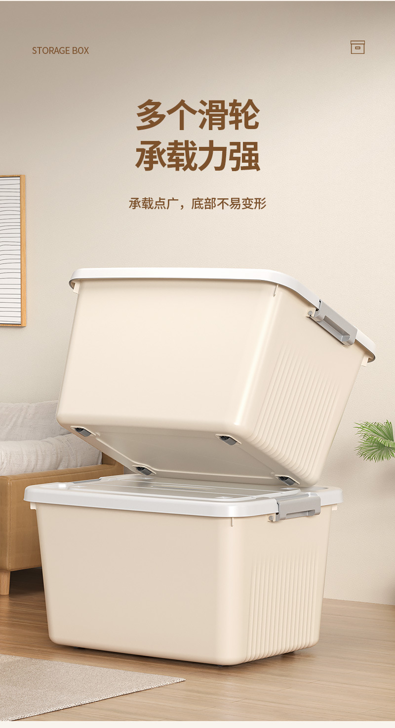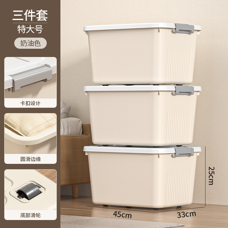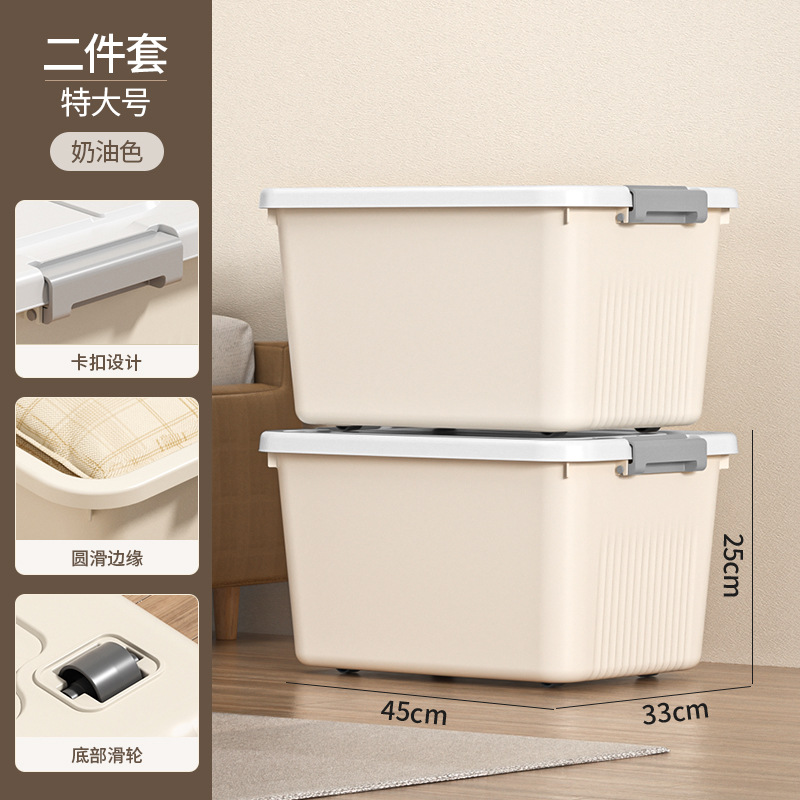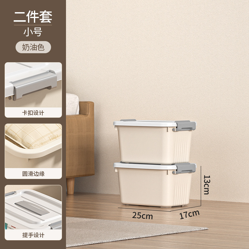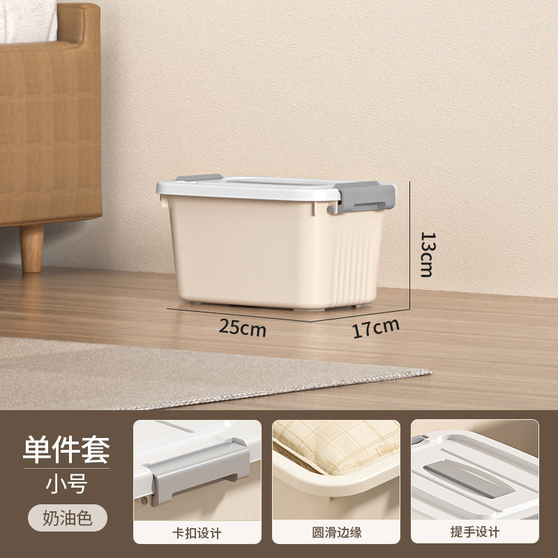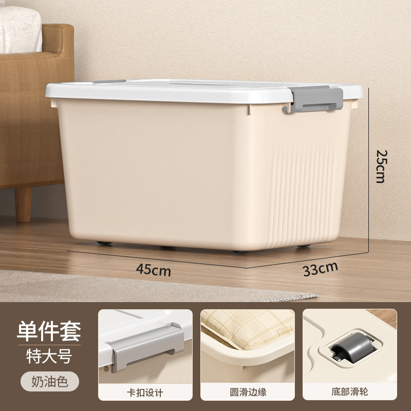 加厚家用收纳箱塑料奶油风收纳大容量衣服整理盒带盖桌面收纳盒