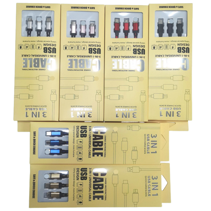 【必采好货】编织一拖三数据线适用苹果安卓type-c三合一快充电线