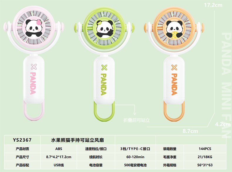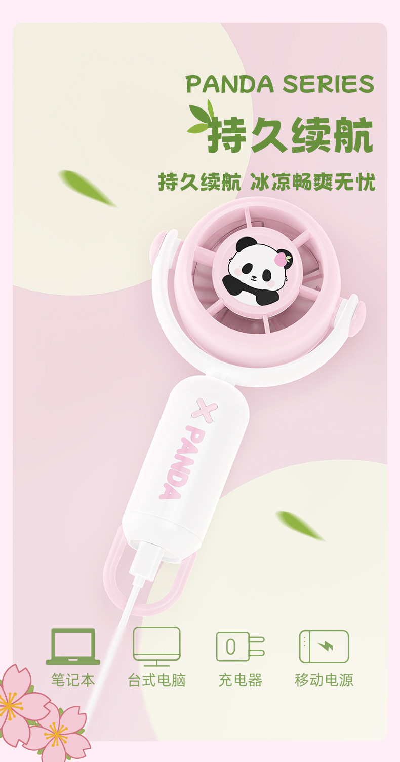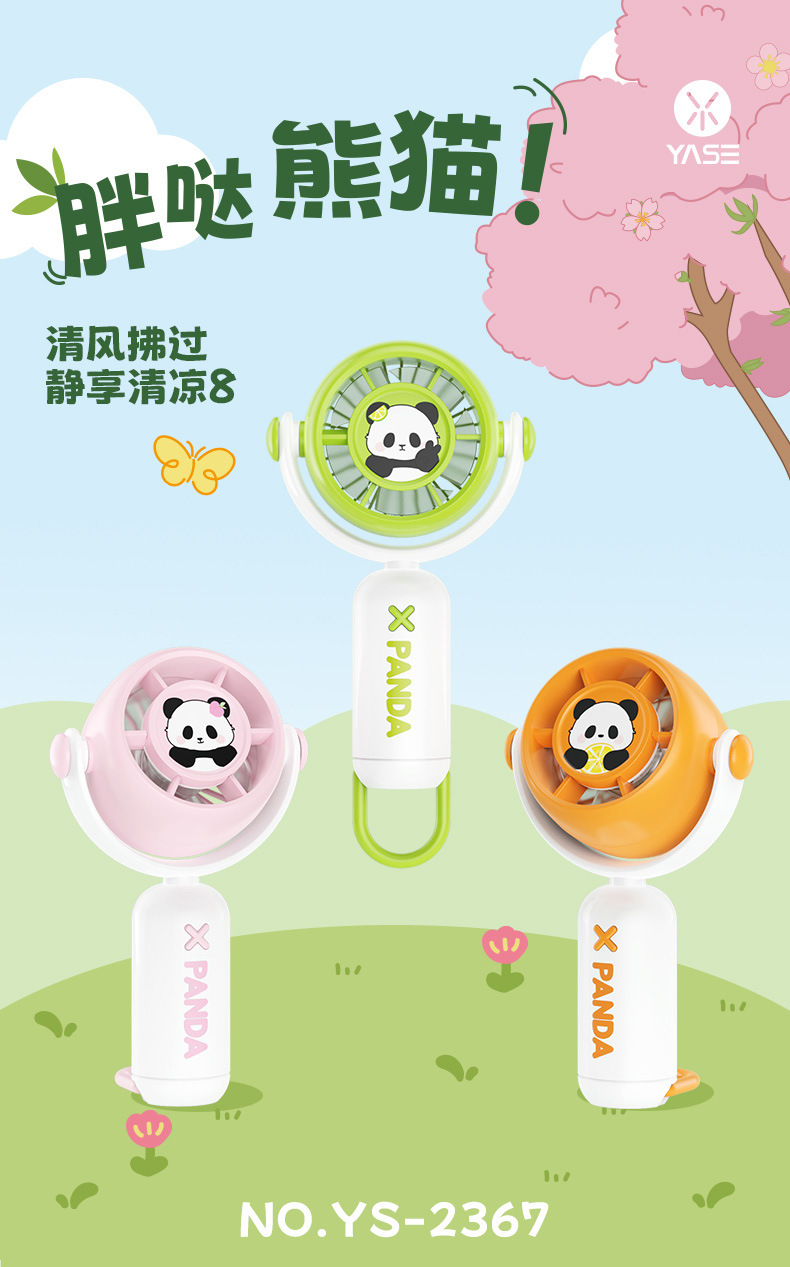 跨境新款可折叠熊猫手持小风扇USB充电迷你便携式小电扇批发厂家
