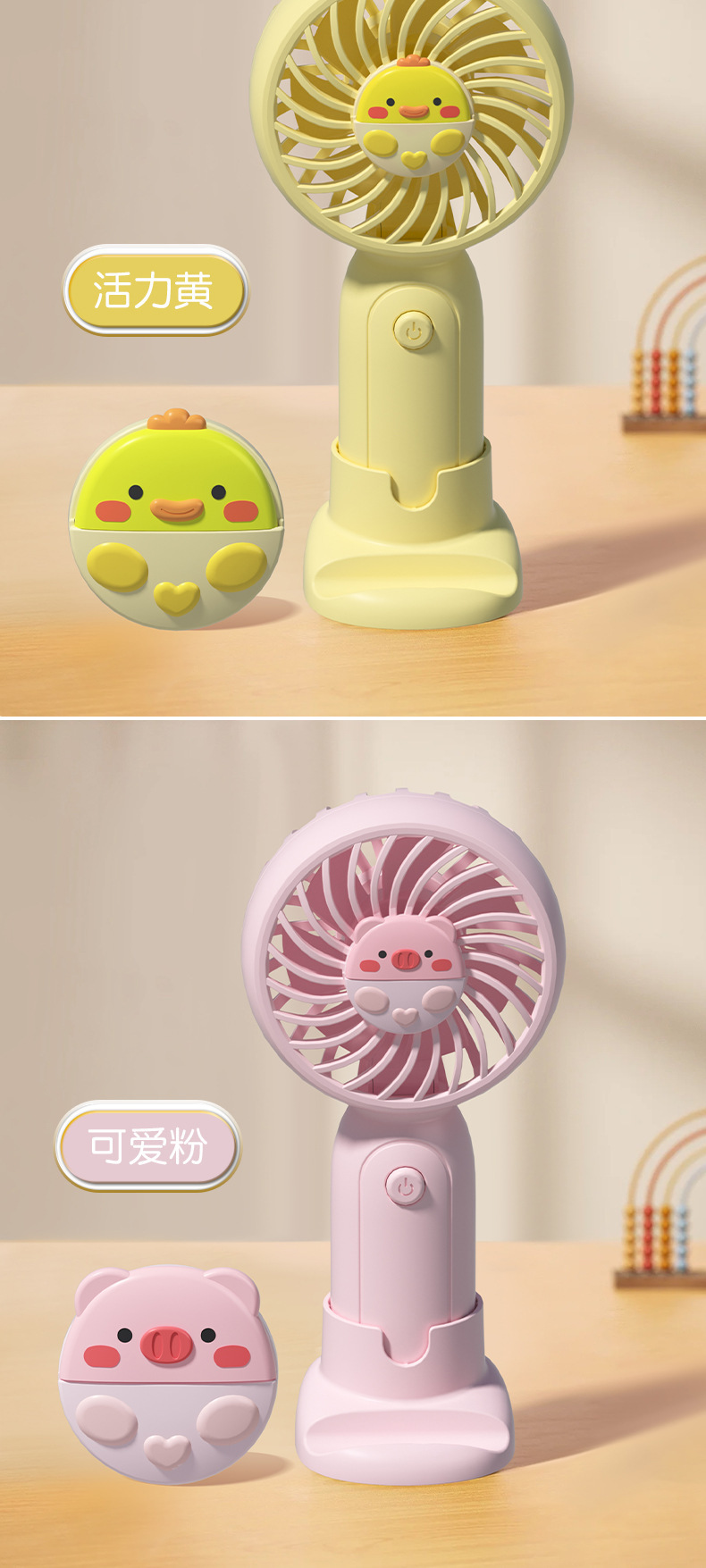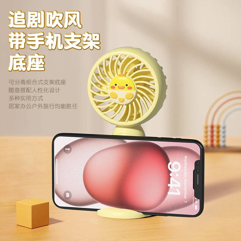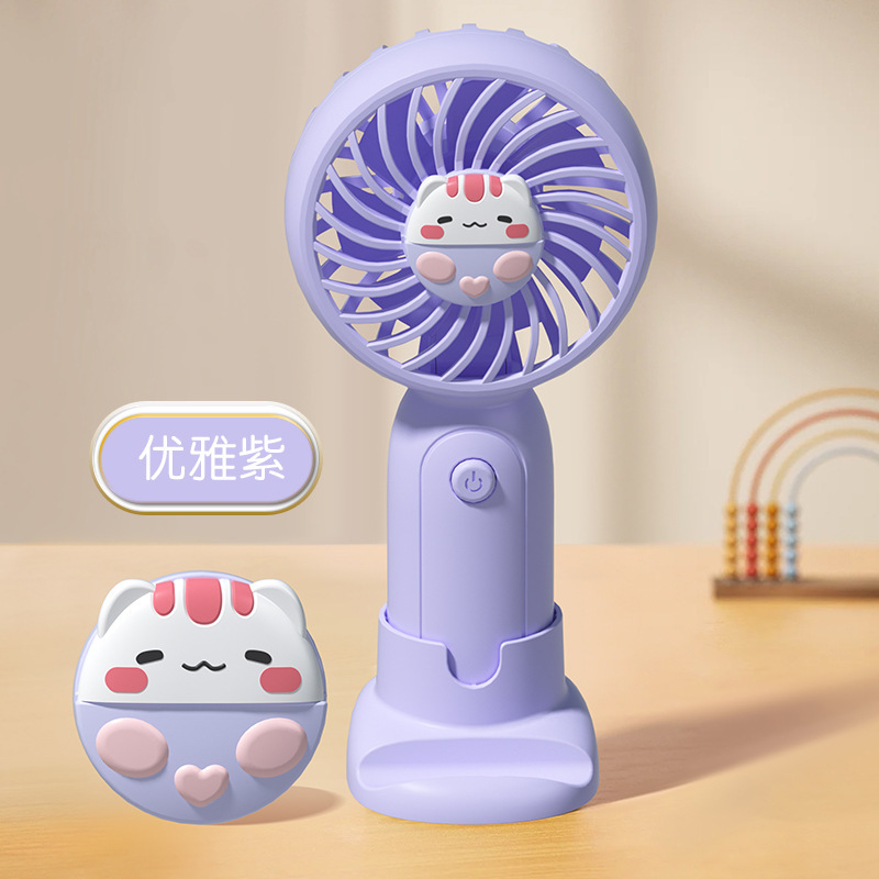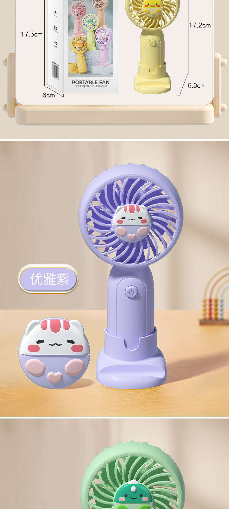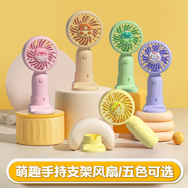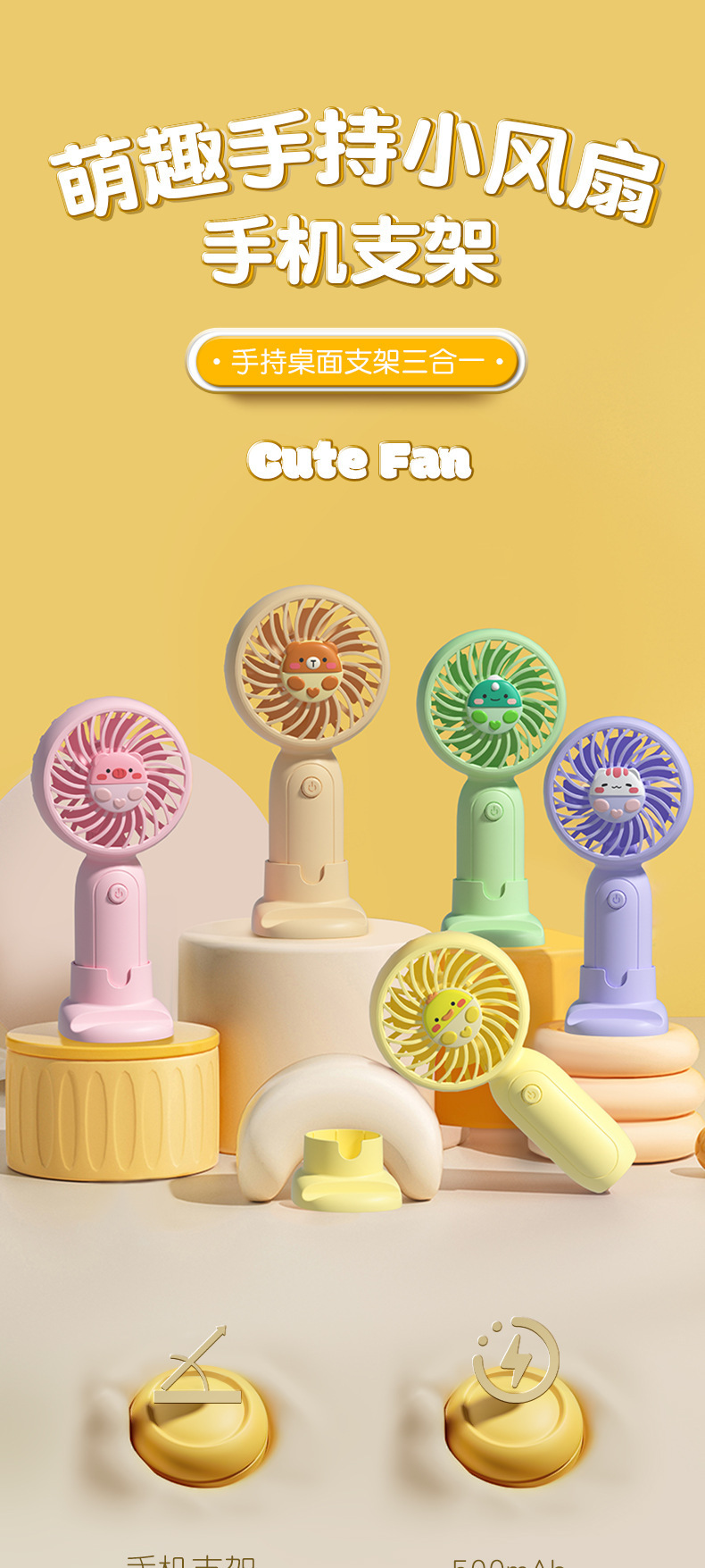 萌趣手持小风扇手机支架桌面三合一 USB充电糖果色便携学生电商厂