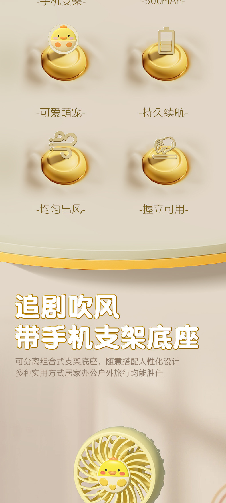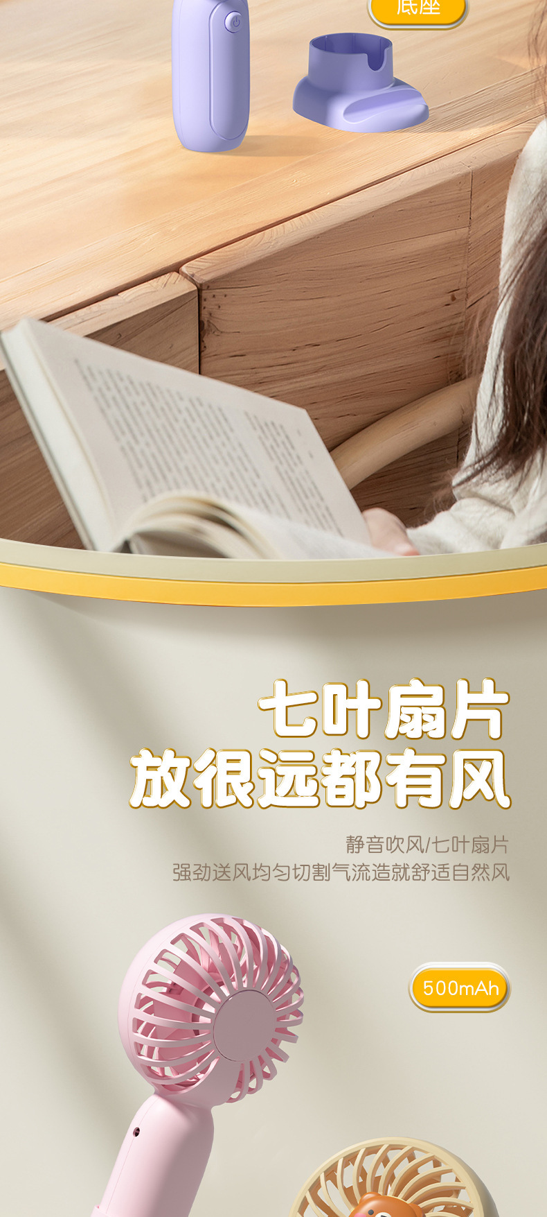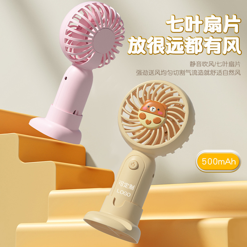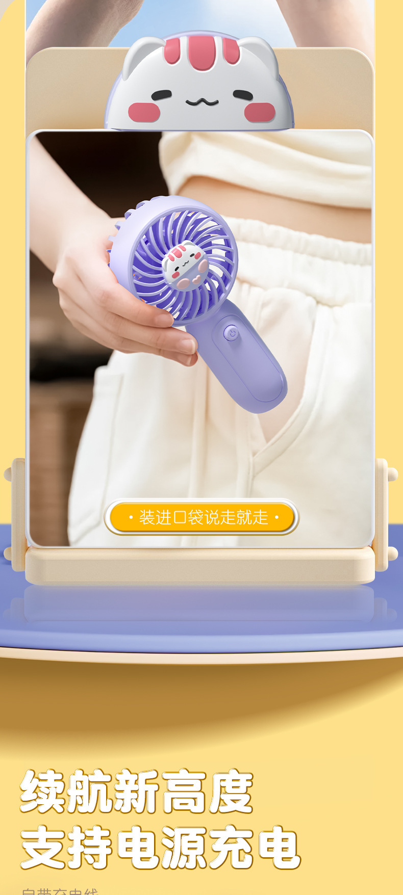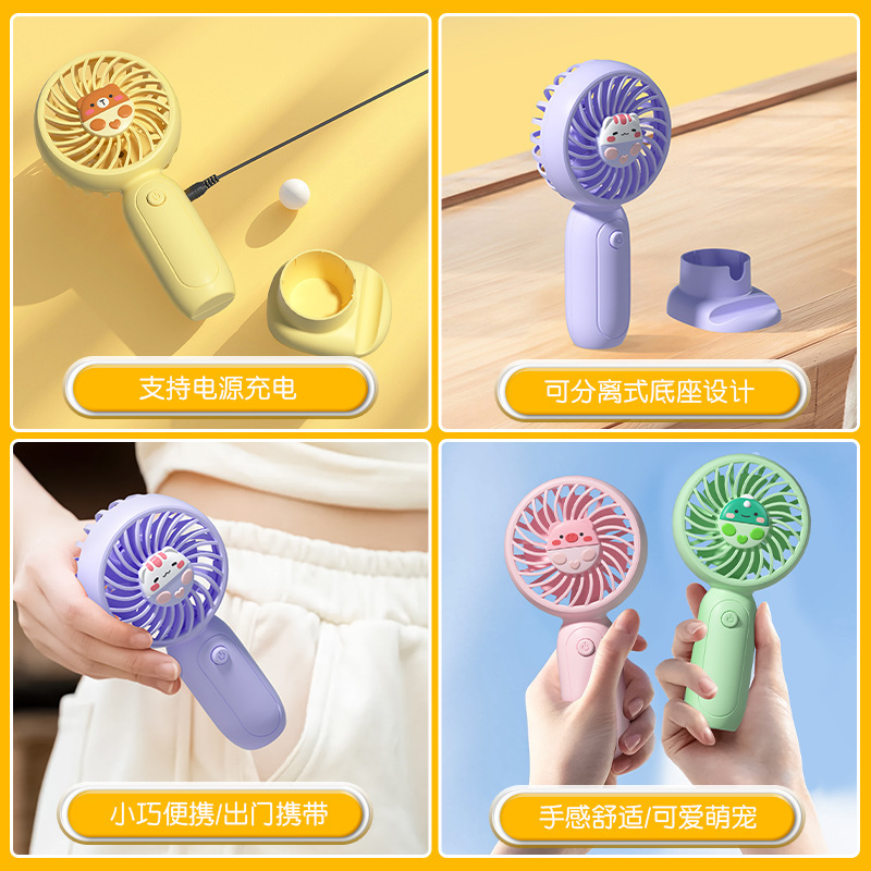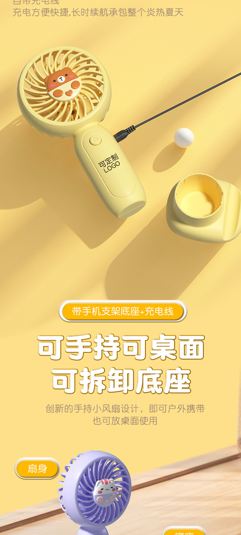 萌趣手持小风扇手机支架桌面三合一 USB充电糖果色便携学生电商厂