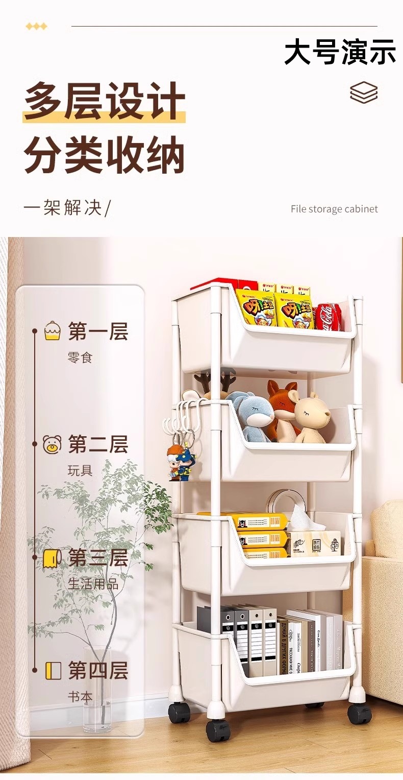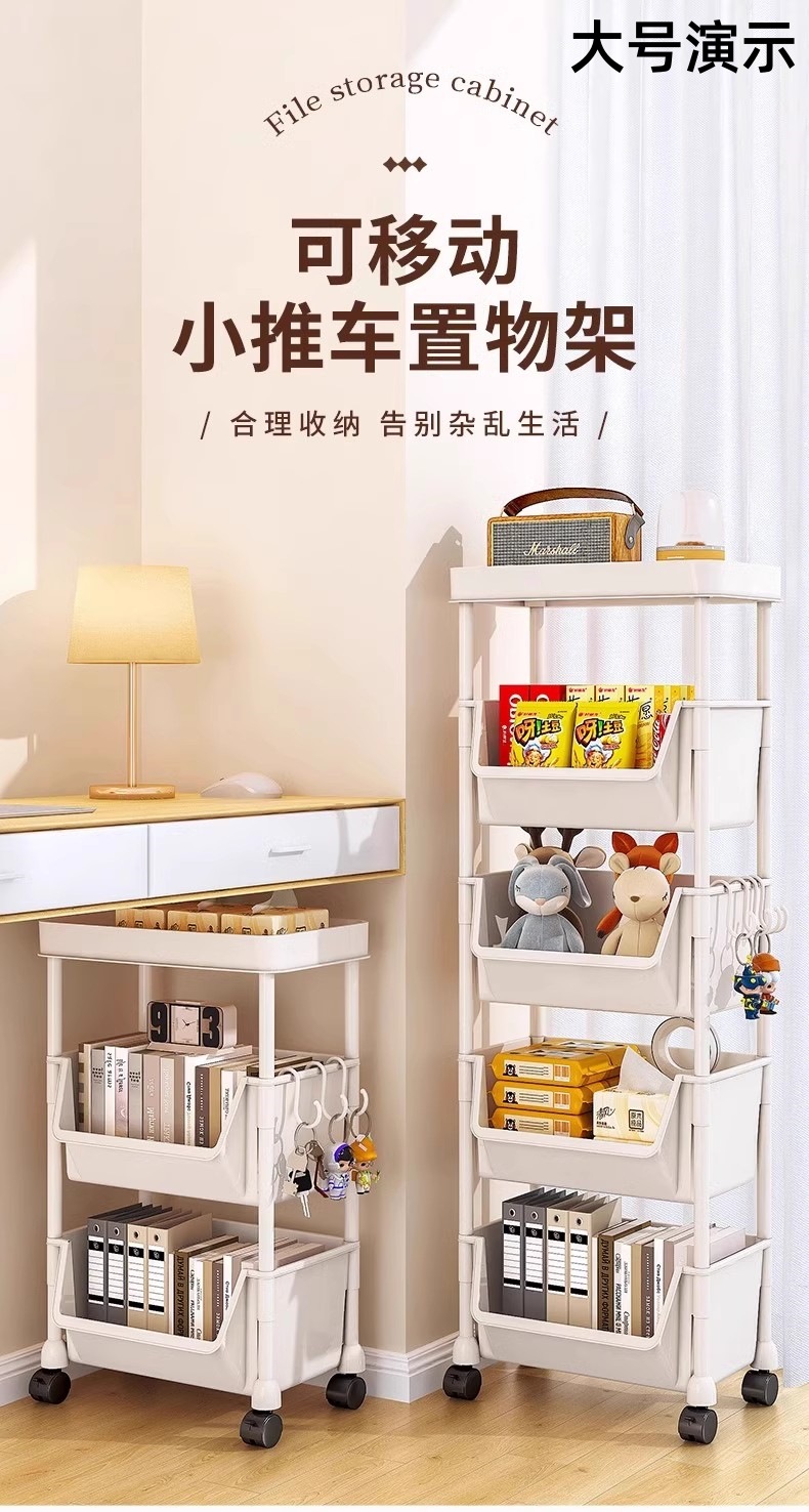 小推车置物架移动家用零食落地多层客厅收纳书架厨房客厅摆摊架子
