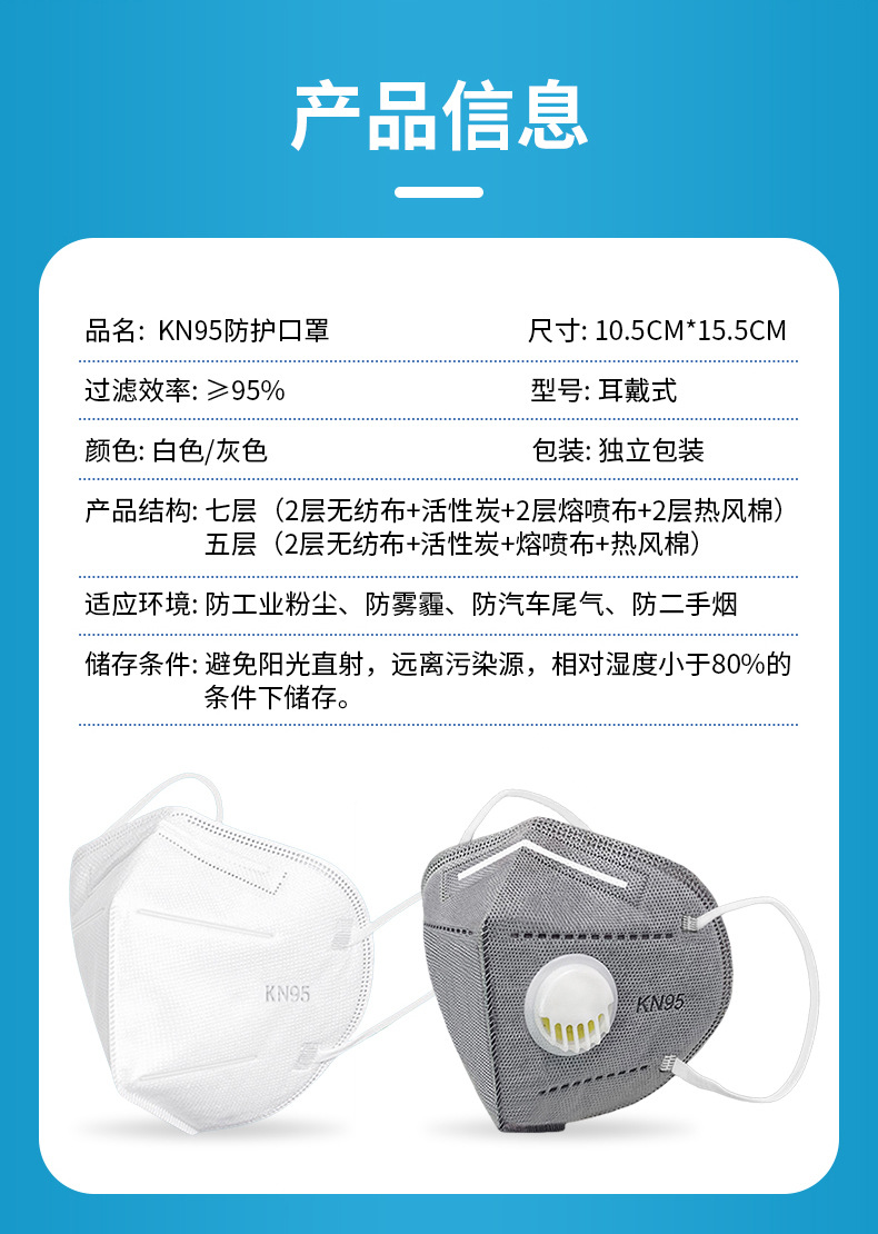 挂耳式KN95防尘口罩活性炭呼吸阀工业防粉尘成人独立包装口罩批发