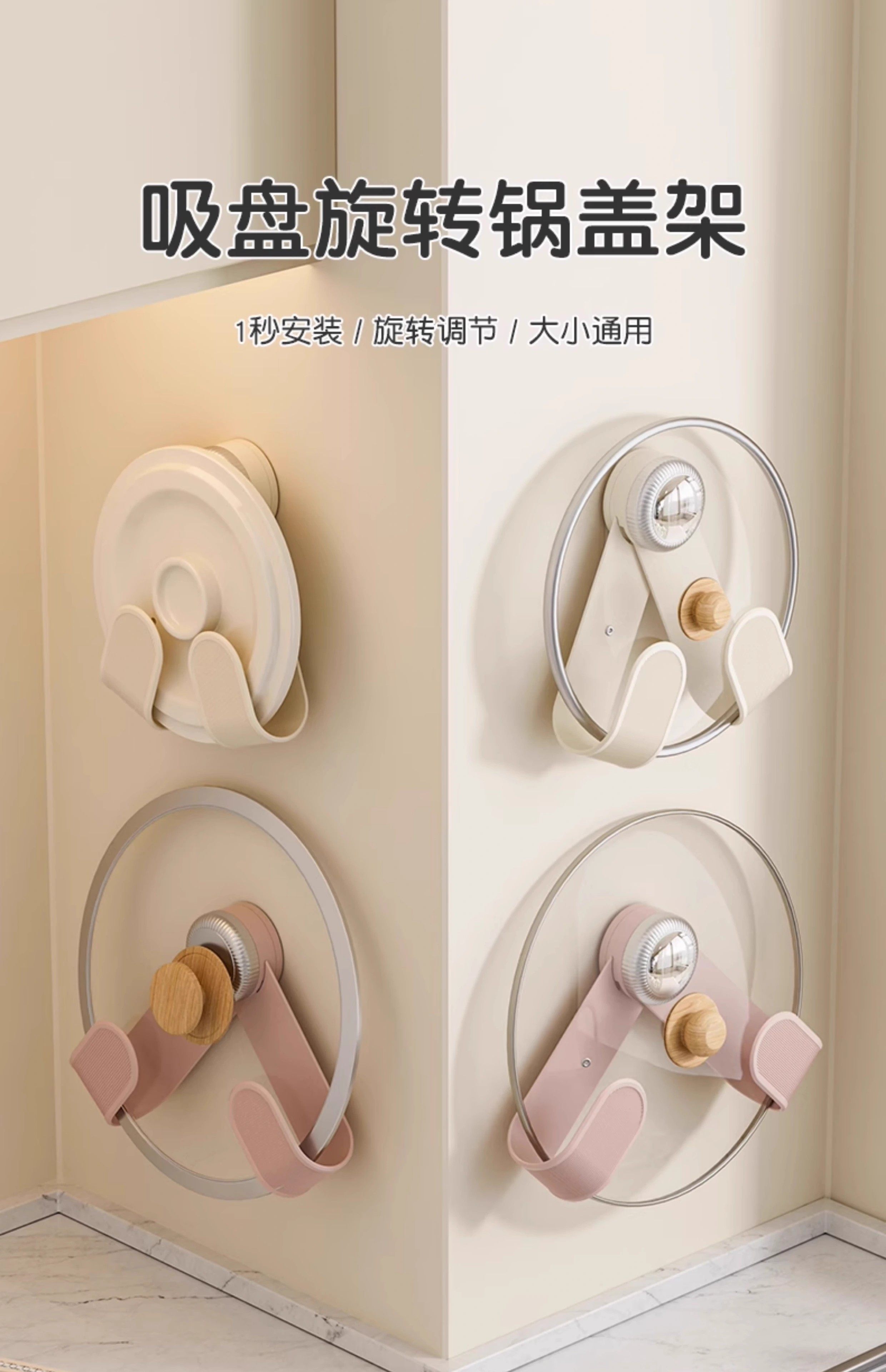 锅盖架奶油吸盘旋转壁挂式免打孔厨房置物架收纳挂架菜板架砧板架
