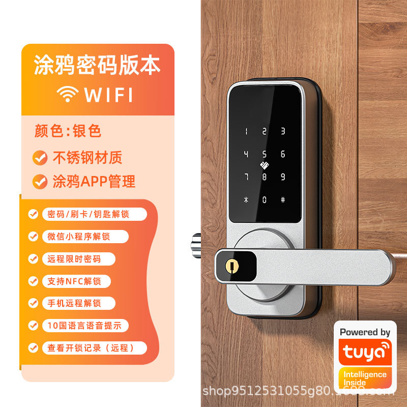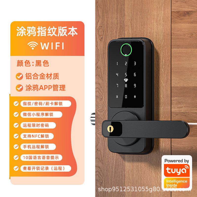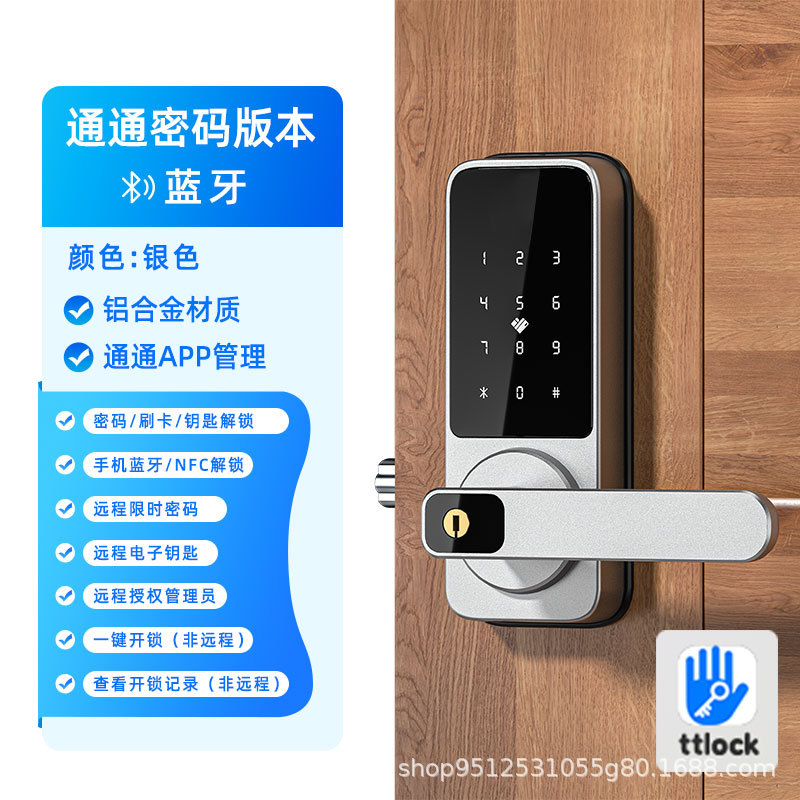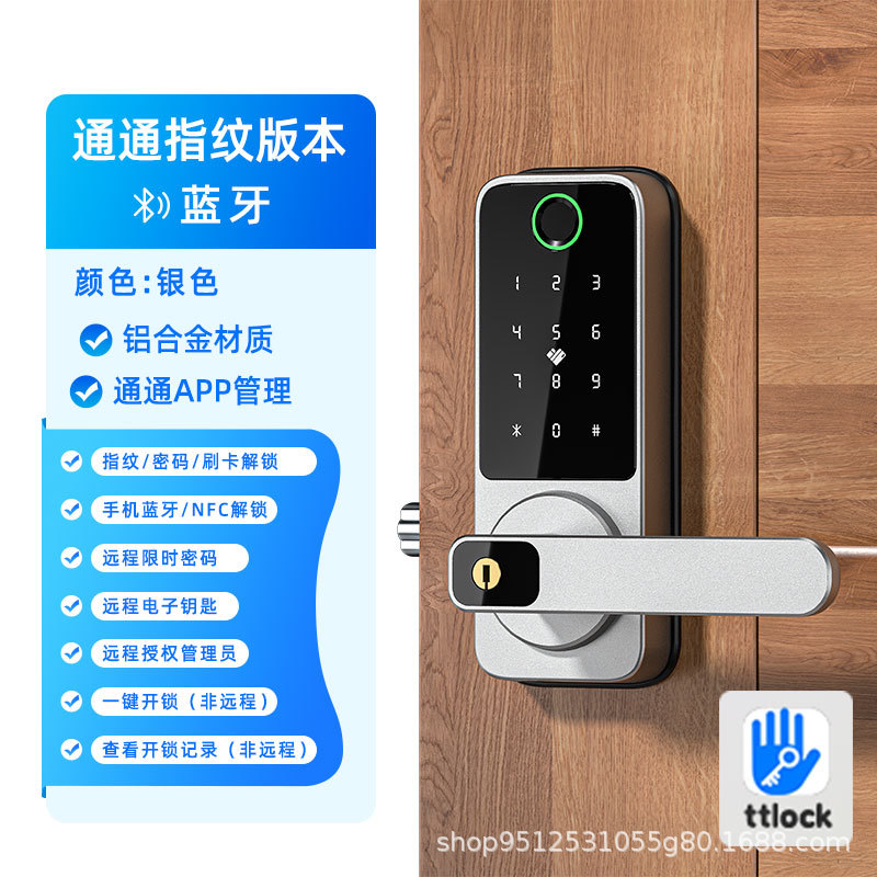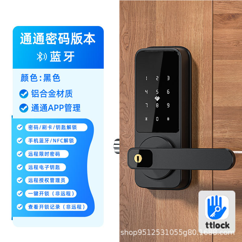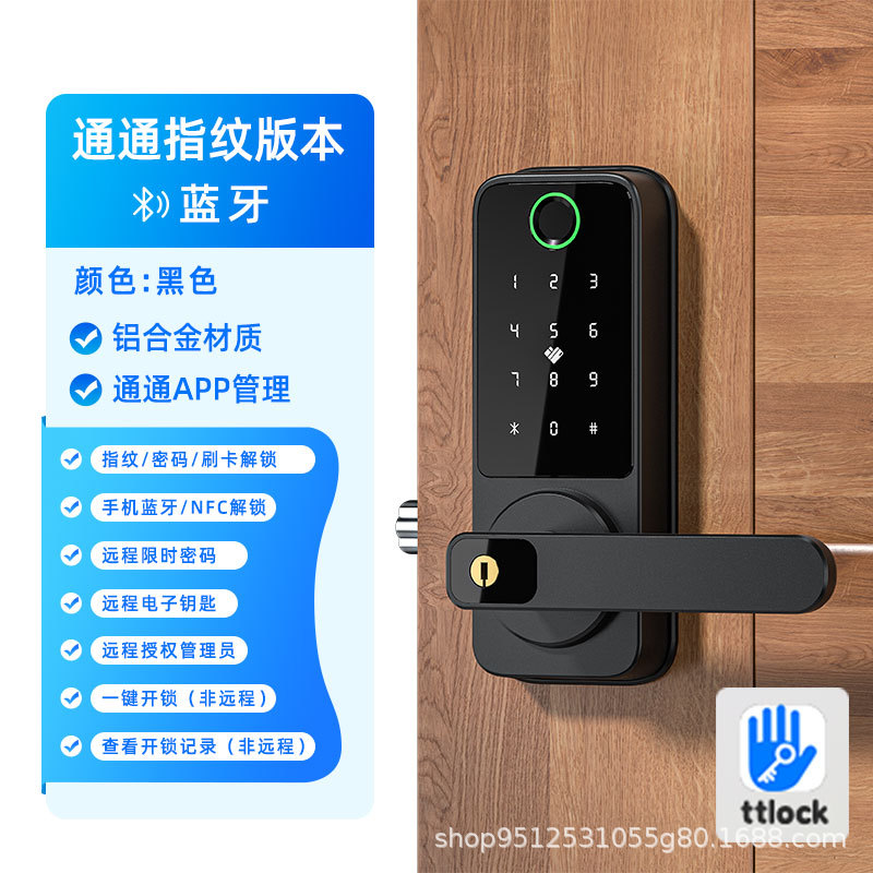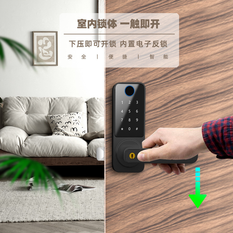 跨境爆款家用室内房间门通通蓝牙六合一密码刷卡锁欧美单舌指纹锁