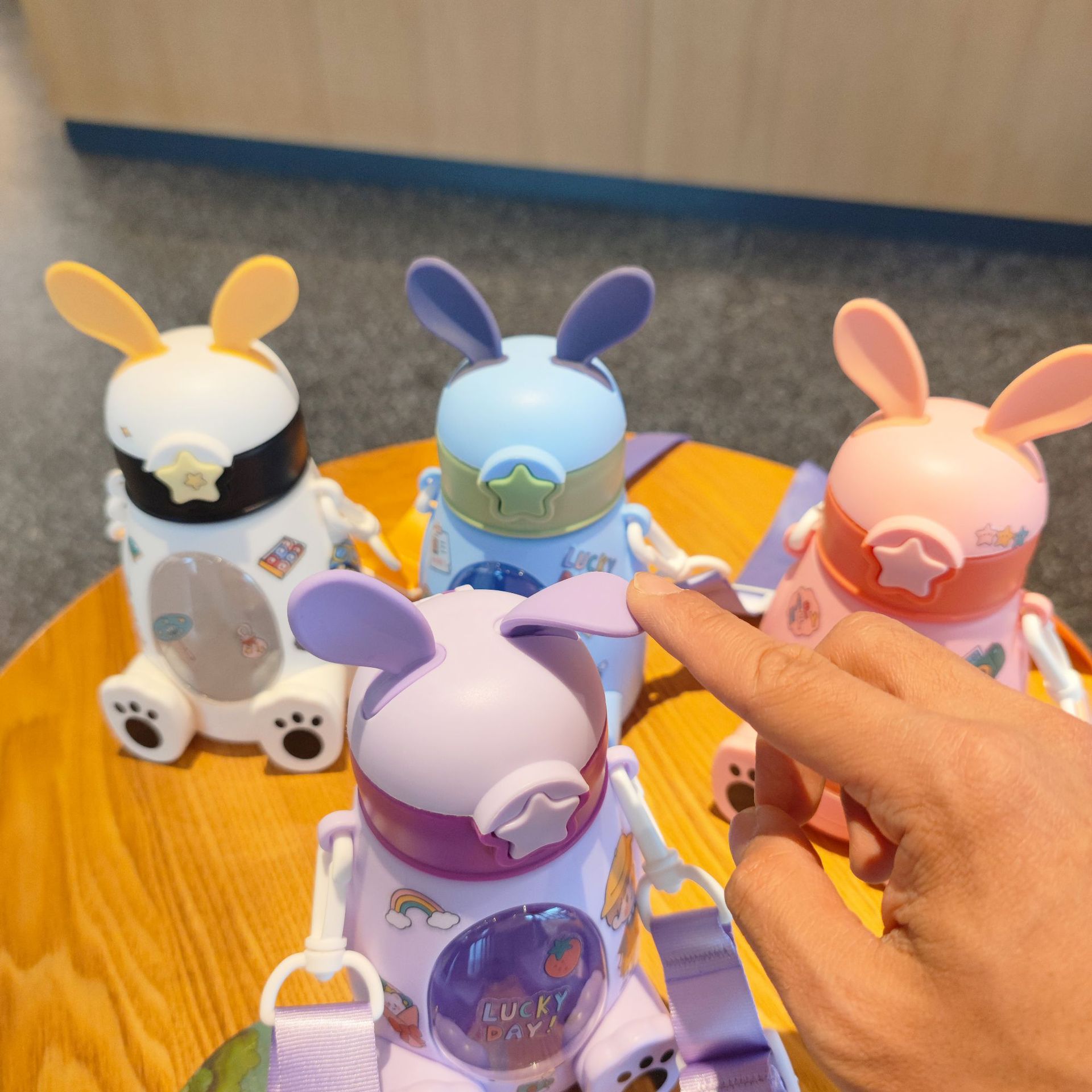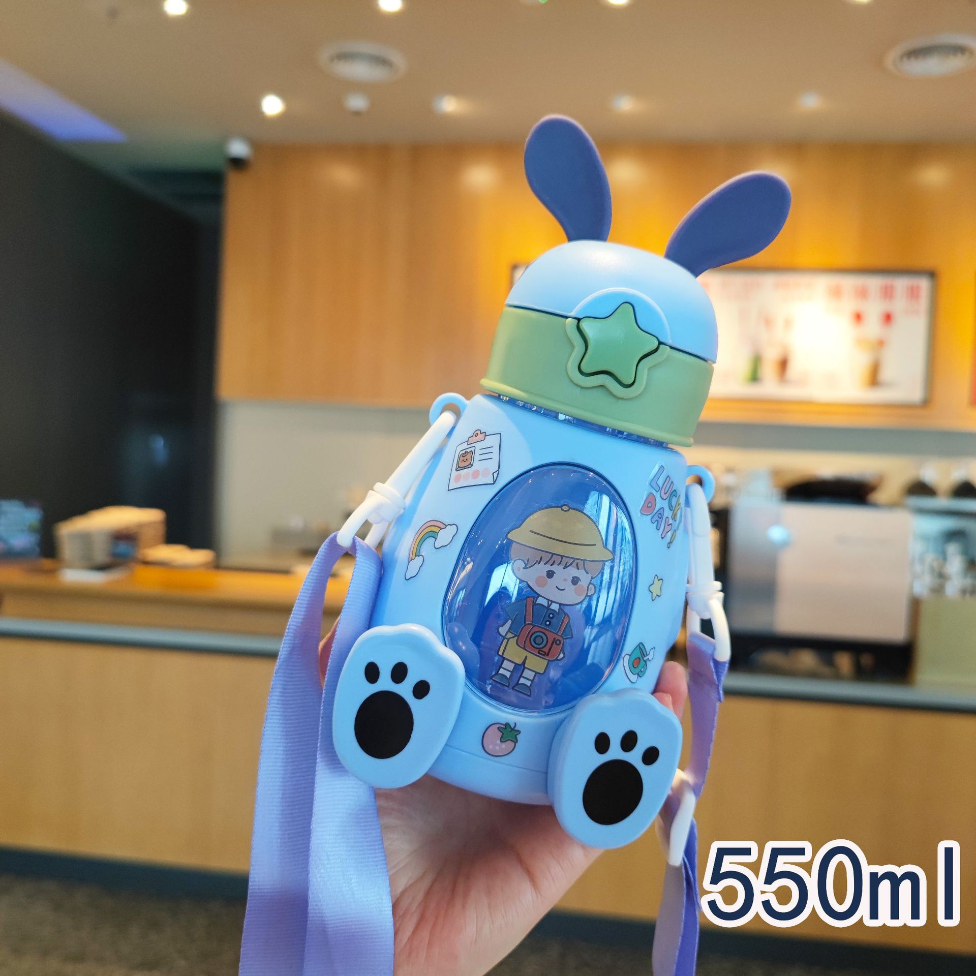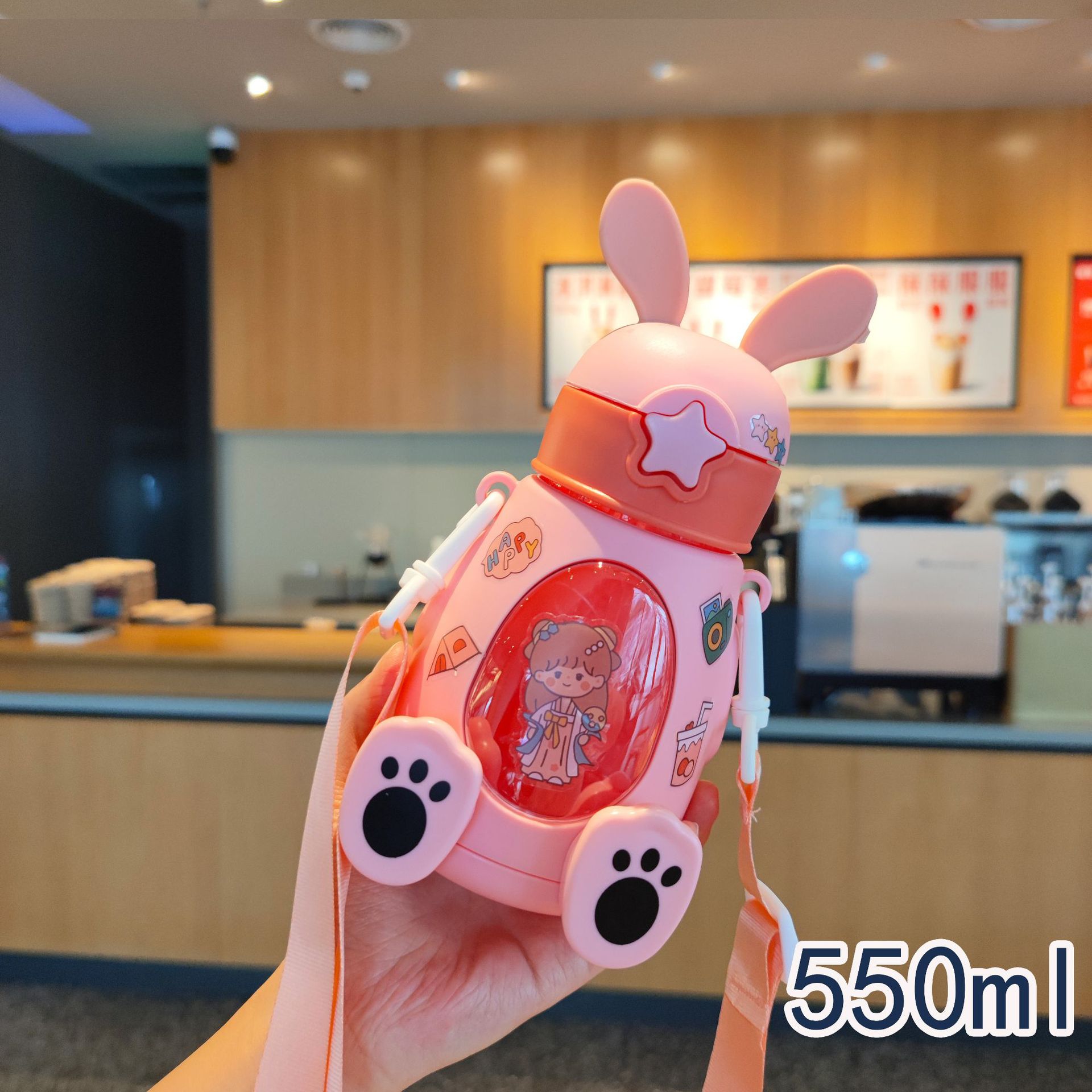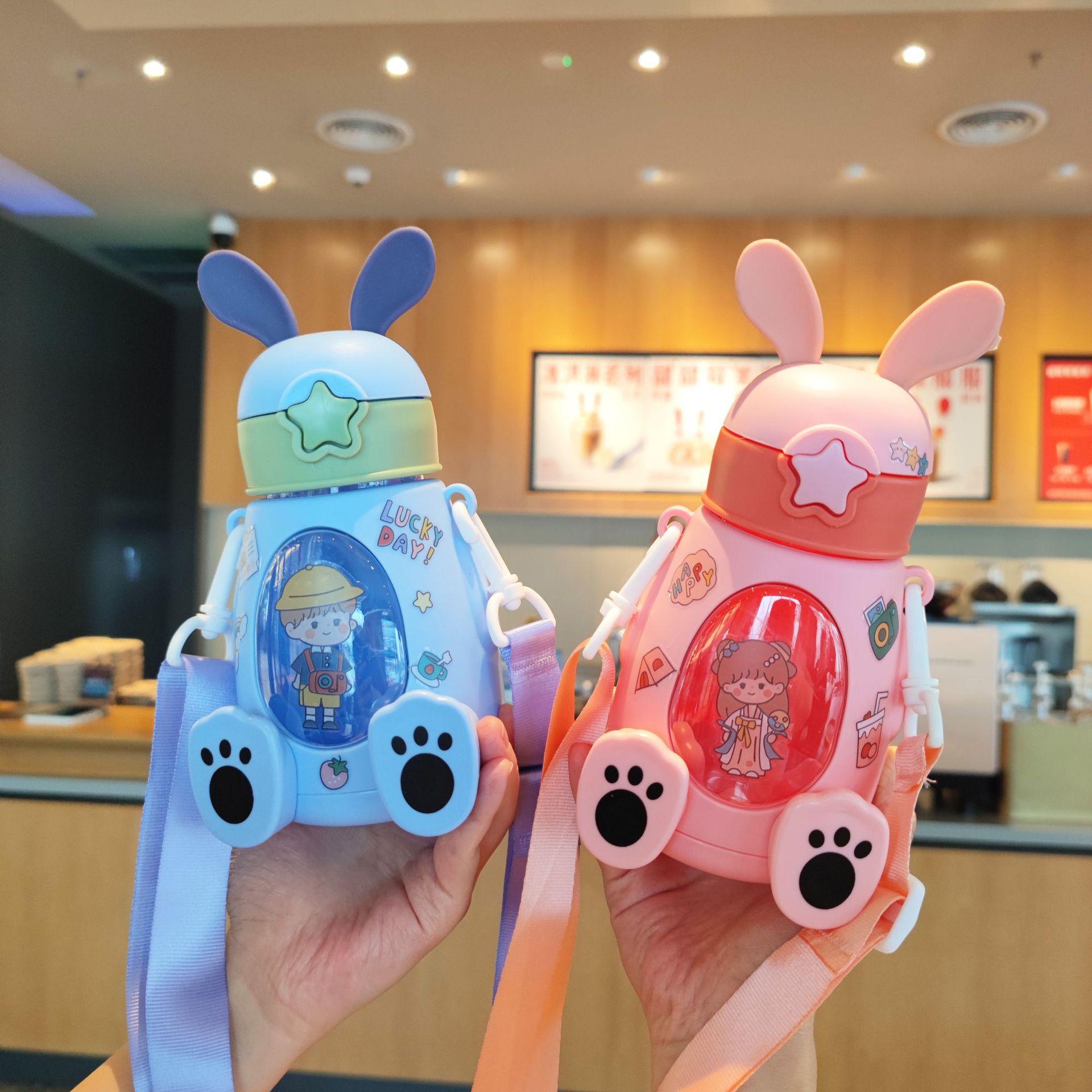 B57儿童水杯小动物兔子背带吸管杯学生幼儿园户外礼品外贸亚马逊