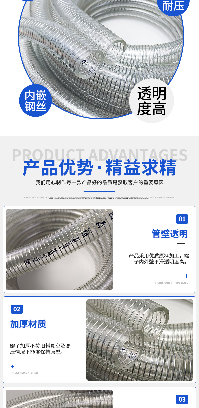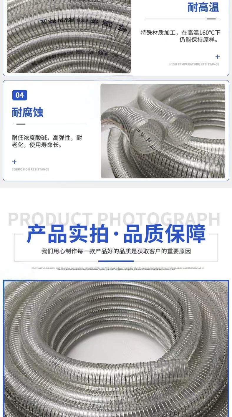 工厂现货耐高温160°PVC透明钢丝软管 耐高温耐高压耐磨损