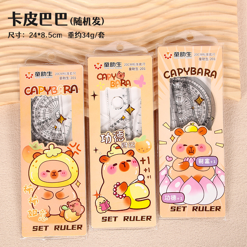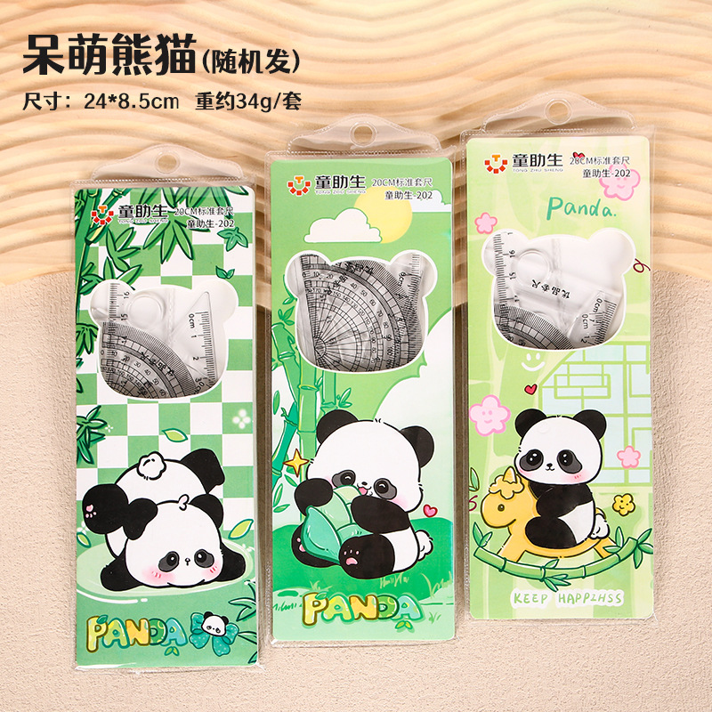 古风套尺小学生励志文字直尺三角尺四件套20cm奖励文具小礼品批发