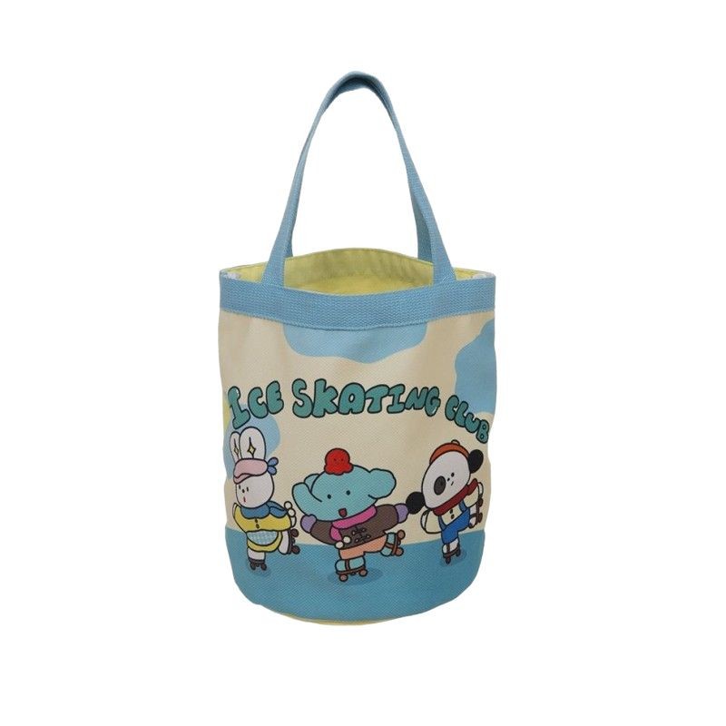 帆布水桶包可爱涂鸦童趣插画手提圆桶妈咪收纳包便当袋上班小拎包