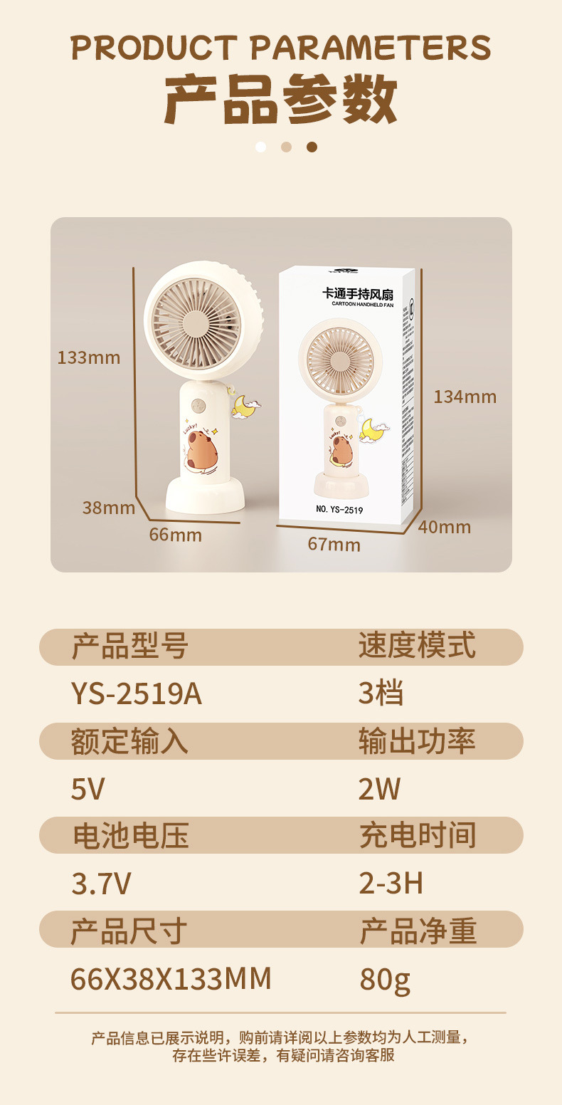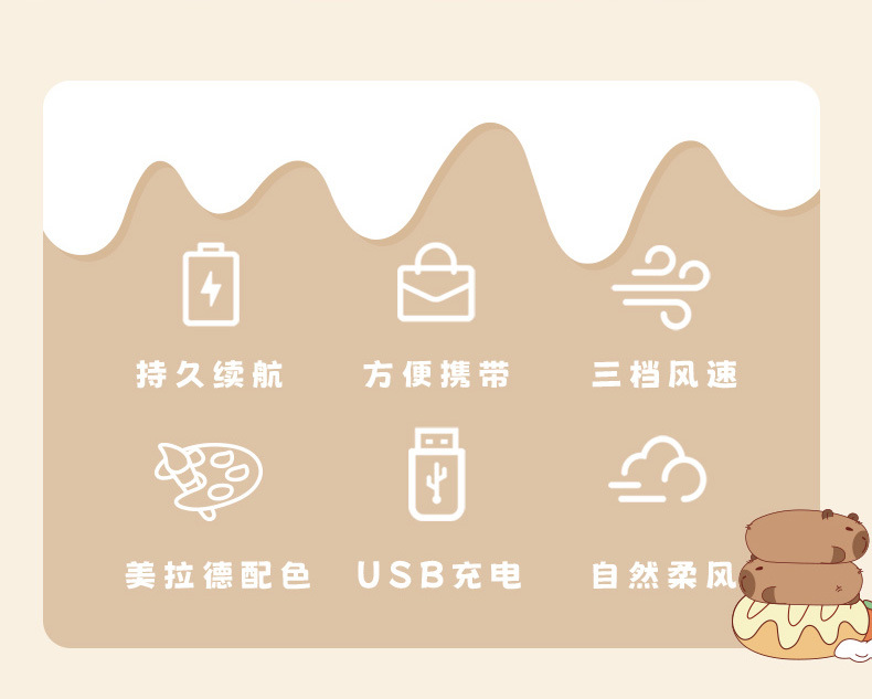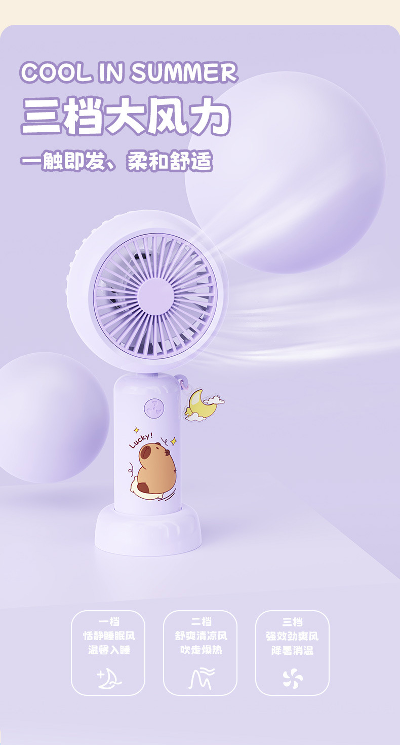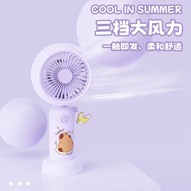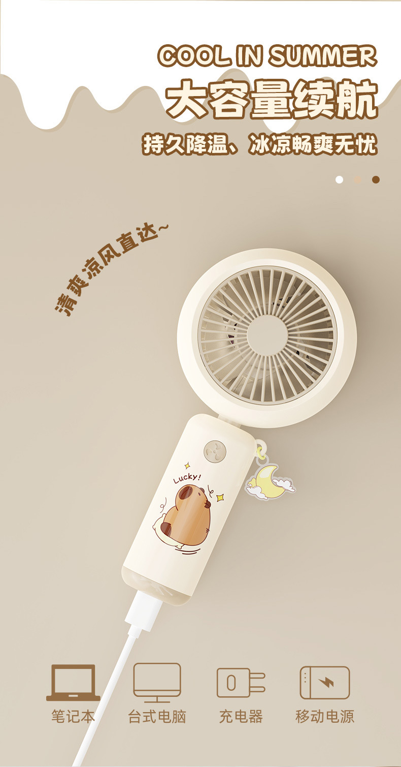 水豚可爱手持迷你小风扇usb充电大风力便携式学生礼品小电扇厂家