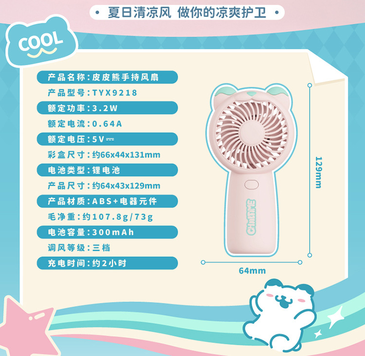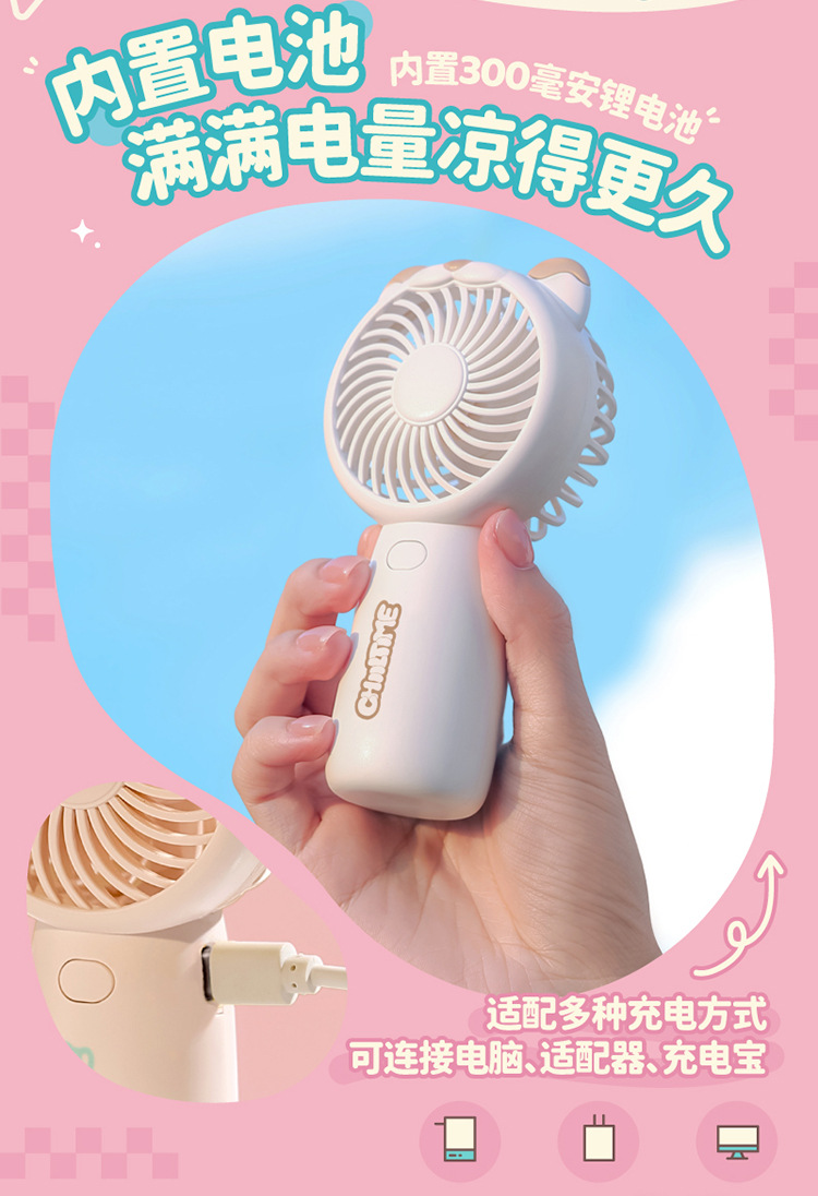 新款糖果色小风扇卡通USB充电便携式迷你手持电扇跨境小礼品批发