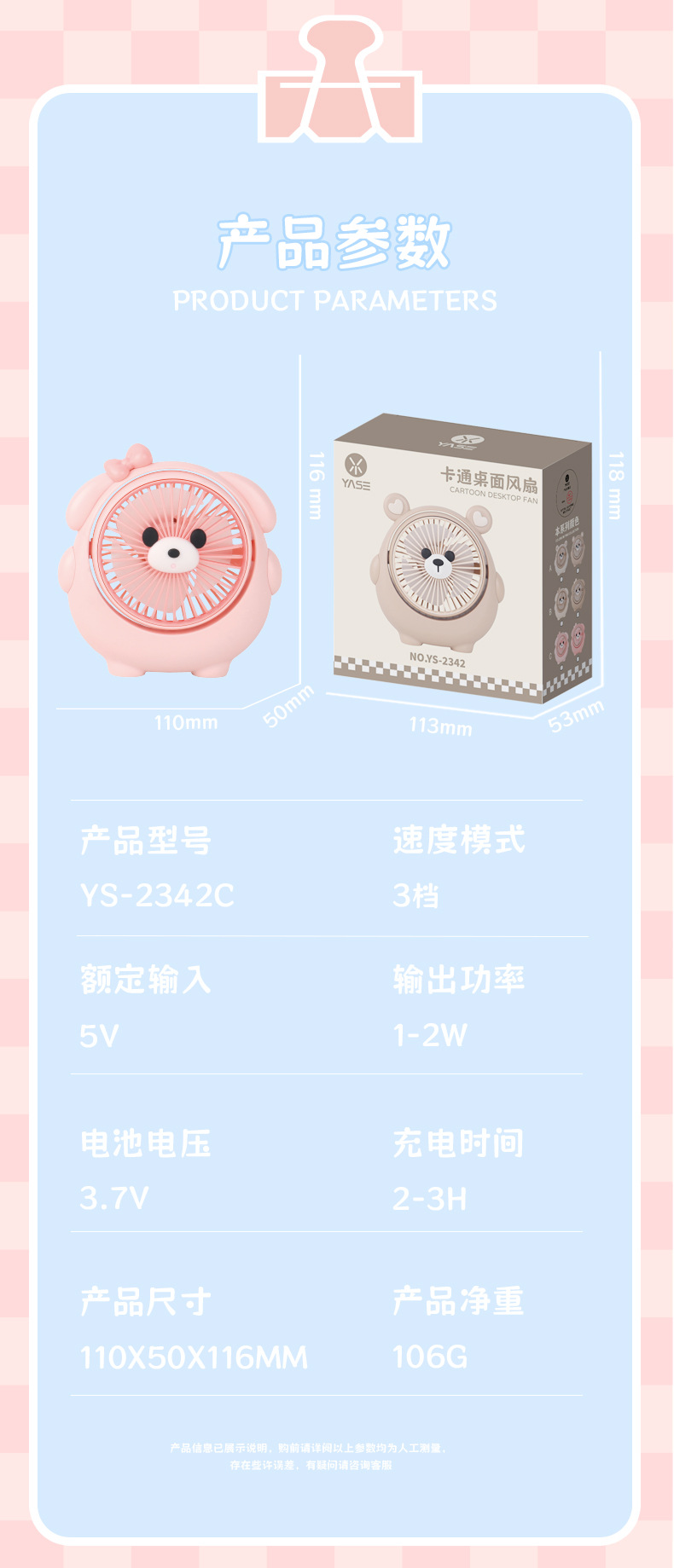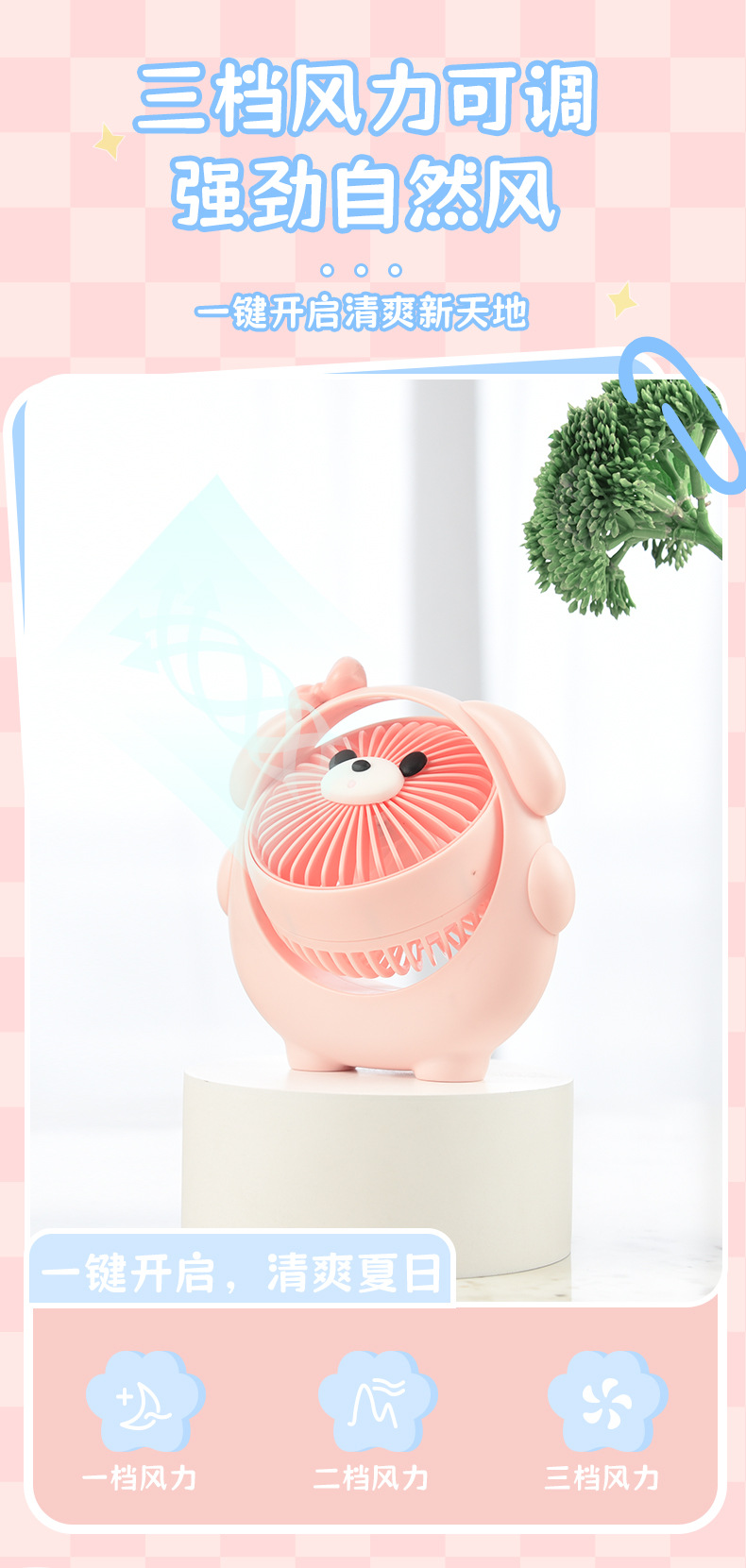 卡通小狗小风扇可调角度USB充电夏季儿童迷你便携式电扇跨境批发