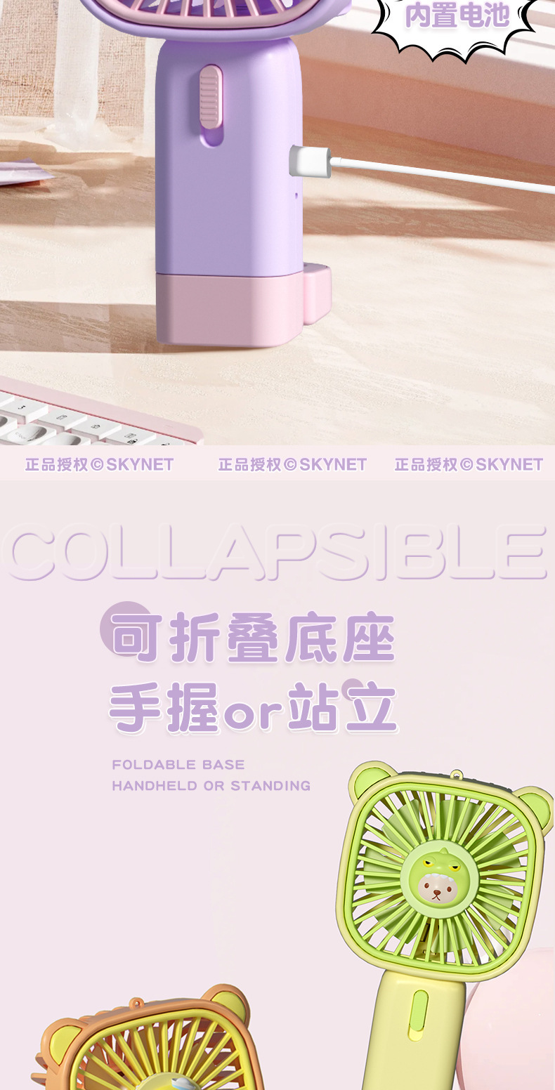 新款创意卡通可爱手持迷你小风扇usb充电大风力学生+办公电扇厂家