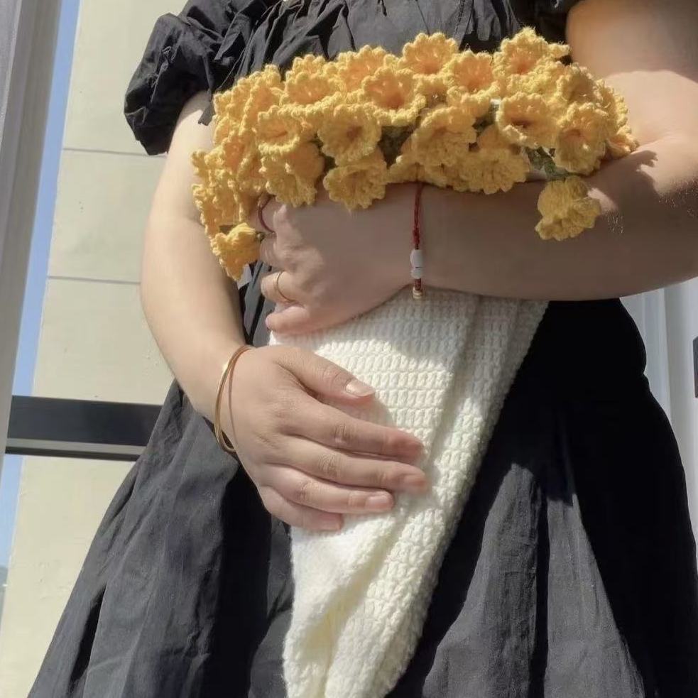手工毛线diy花束毯子材料包钩织铃兰玫瑰毯子变花束创意礼物