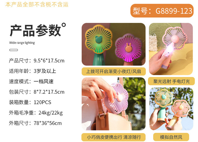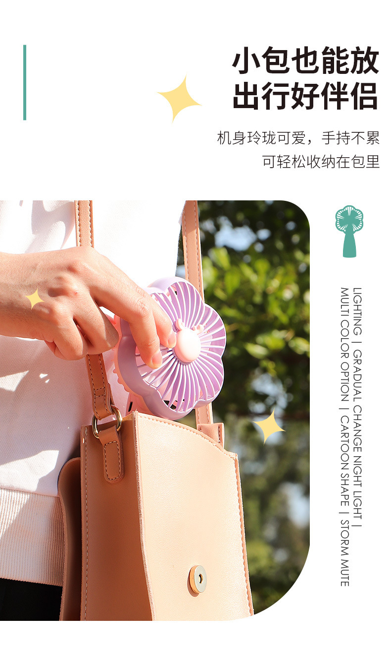 卡通花朵手持小风扇日漫公仔户外便携式电风扇加logo礼品扇工厂