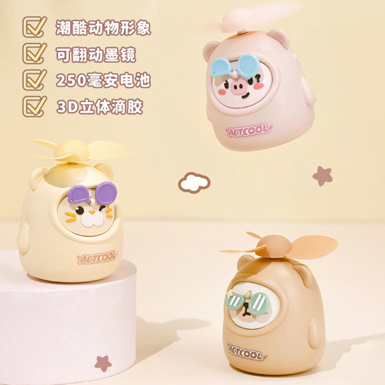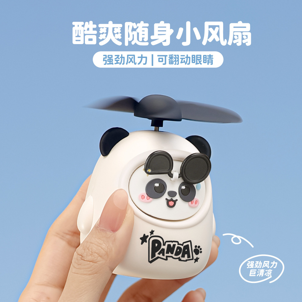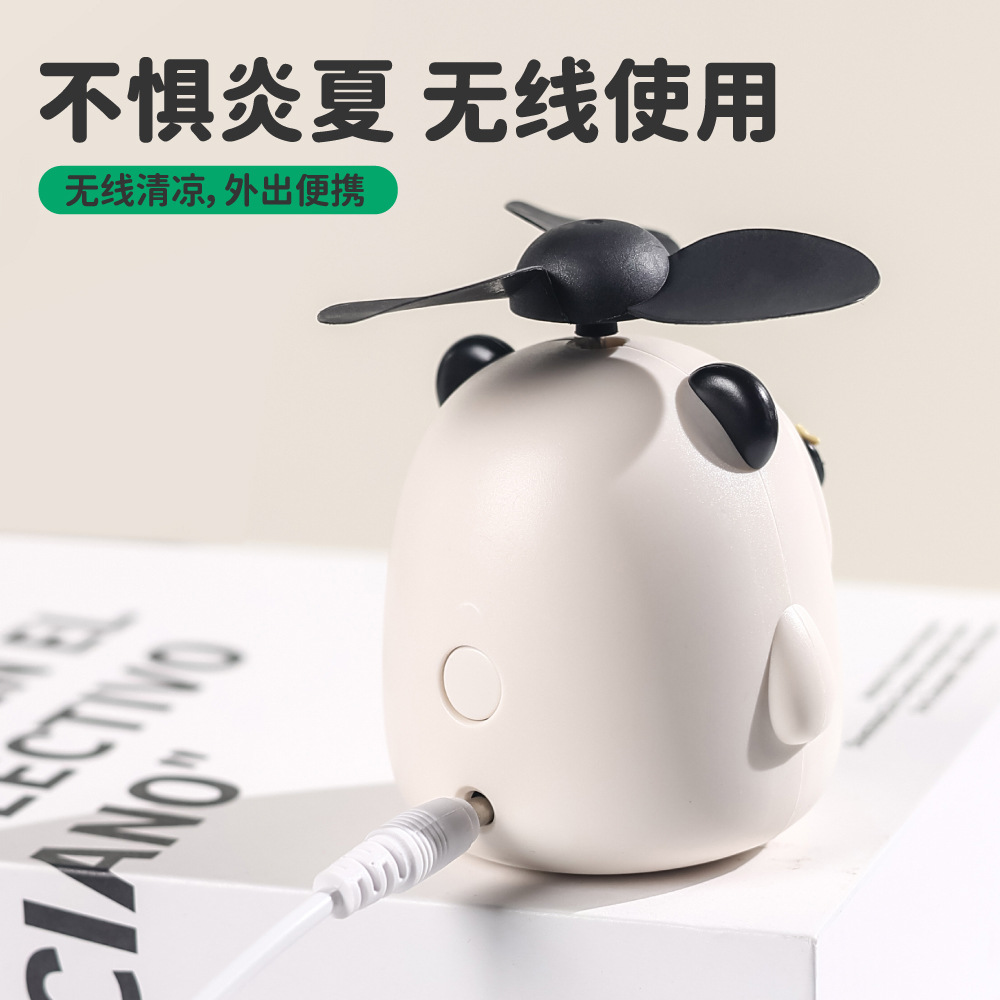手持迷你熊猫小风扇 USB充电可爱桌面便携式户外跨境电扇批发厂家