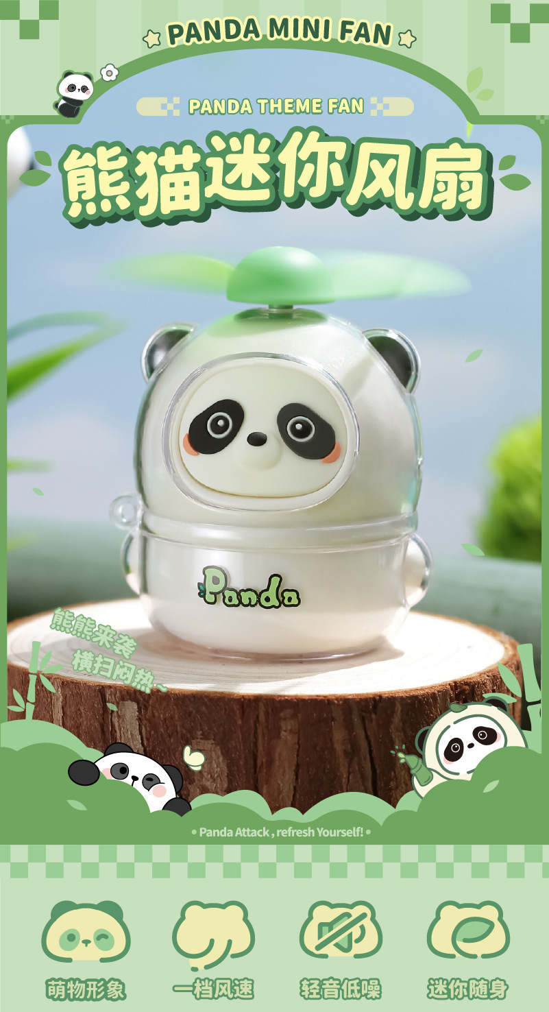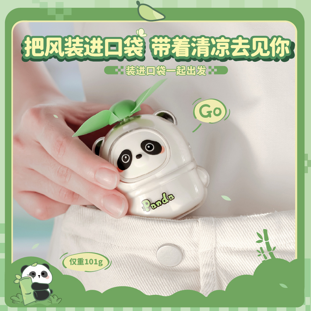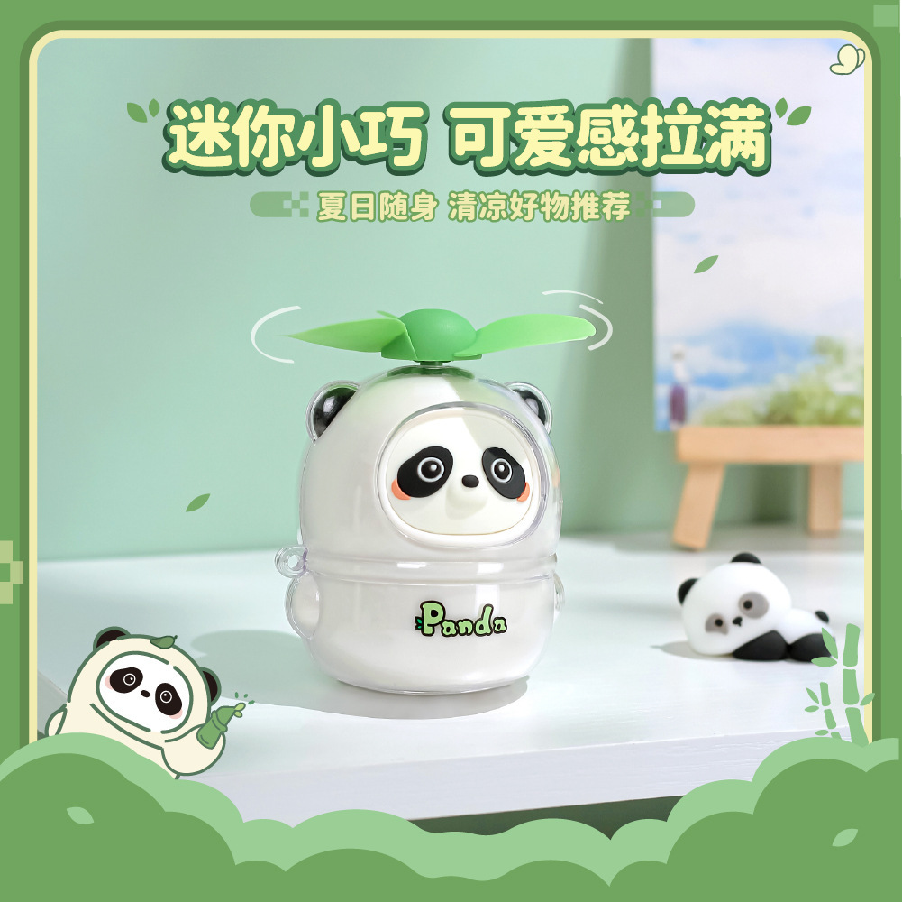 萌趣熊猫手持迷你简约小风扇 usb充电便携式电扇厂家批发制作LOGO