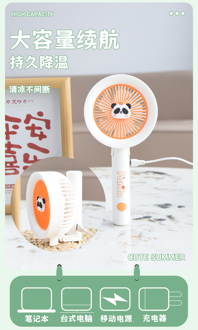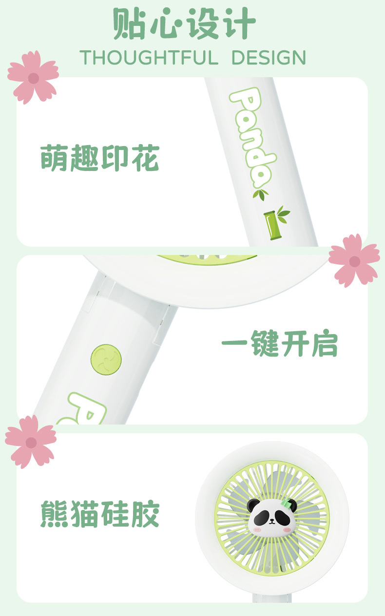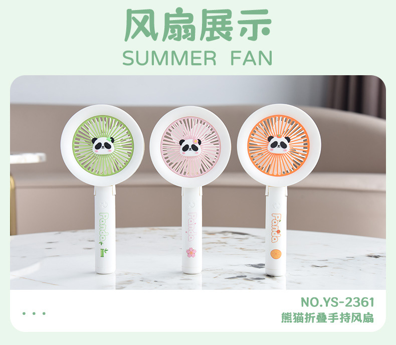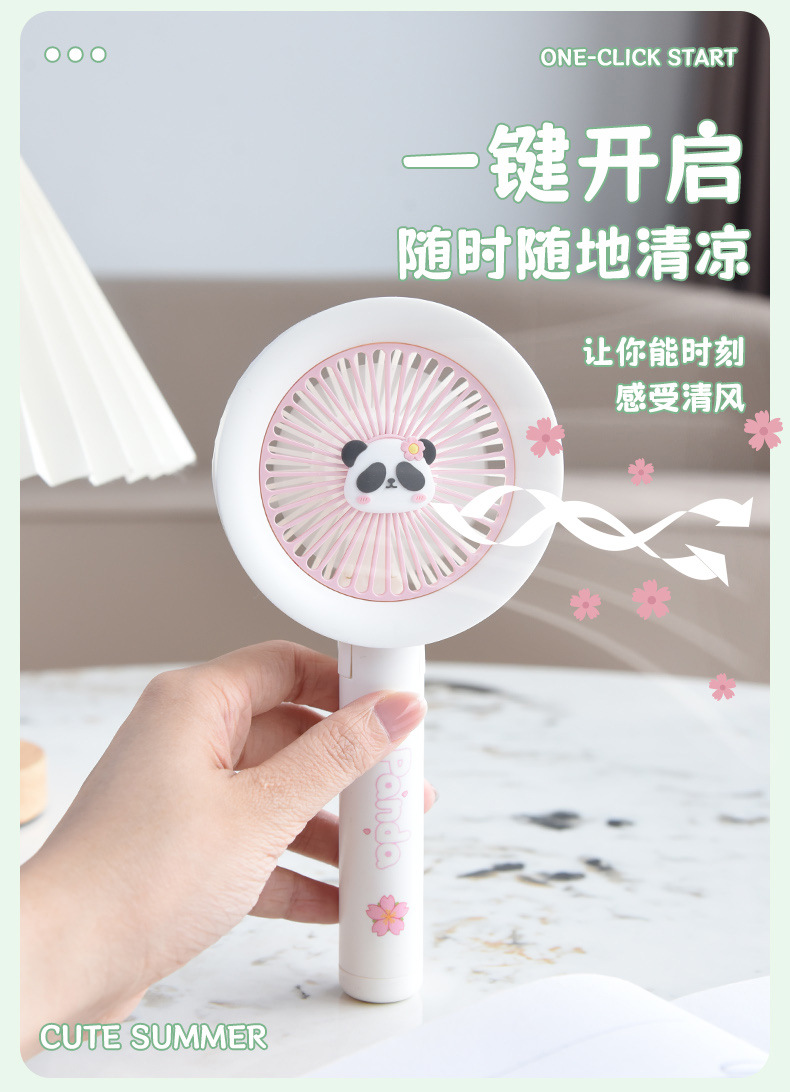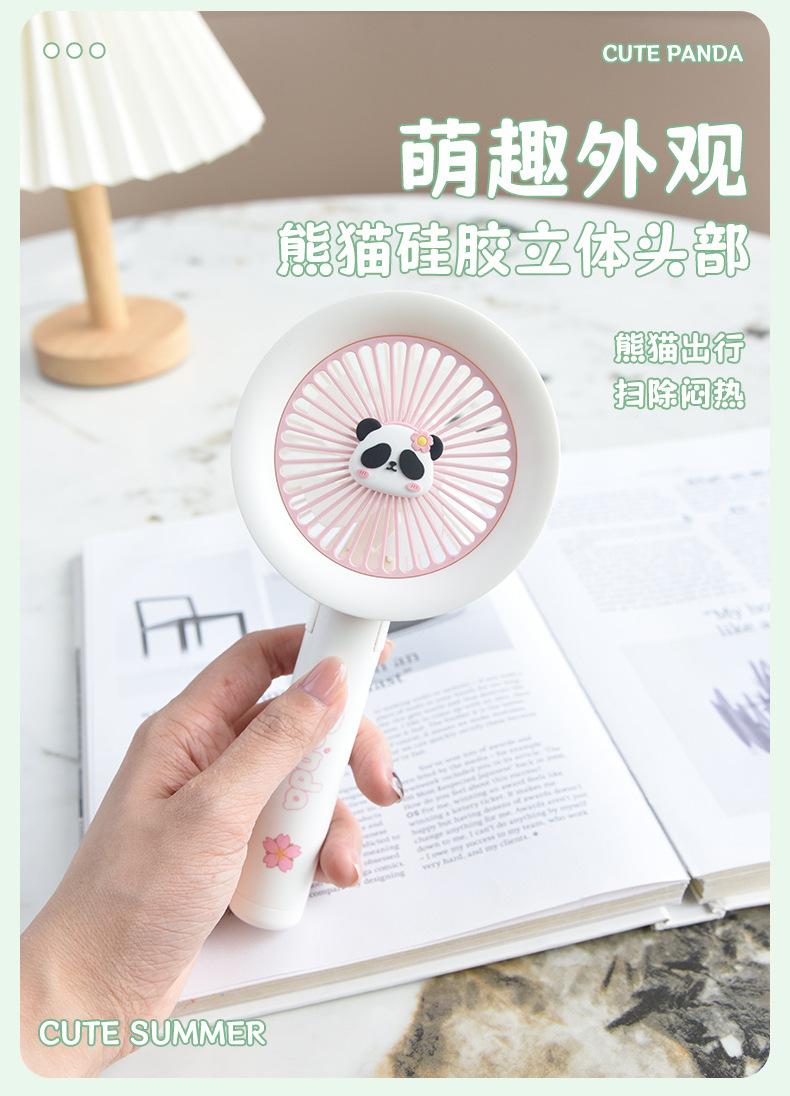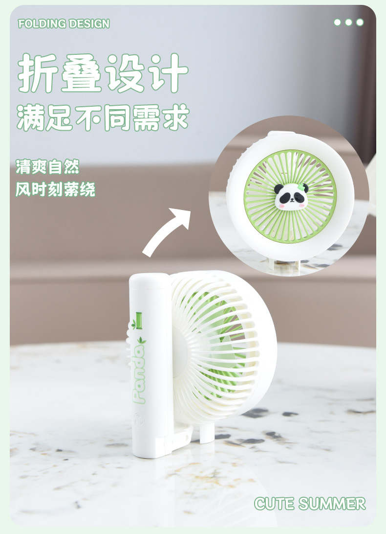 熊猫新款折叠手持小风扇迷你小风扇USB充电三档风力便携式电风扇