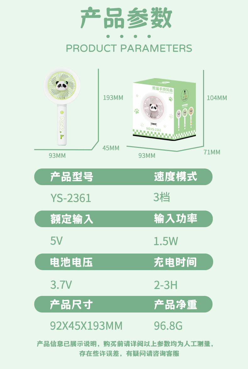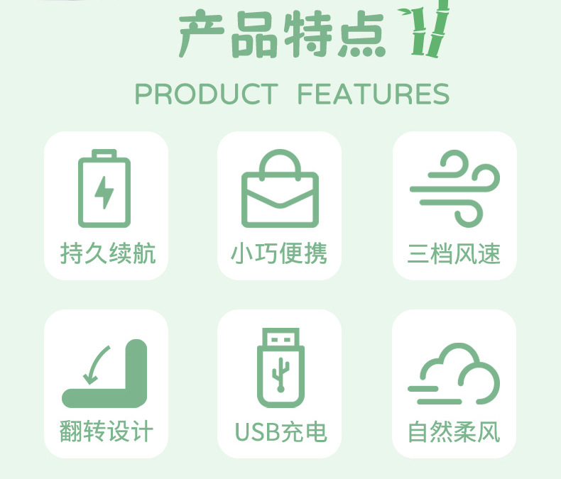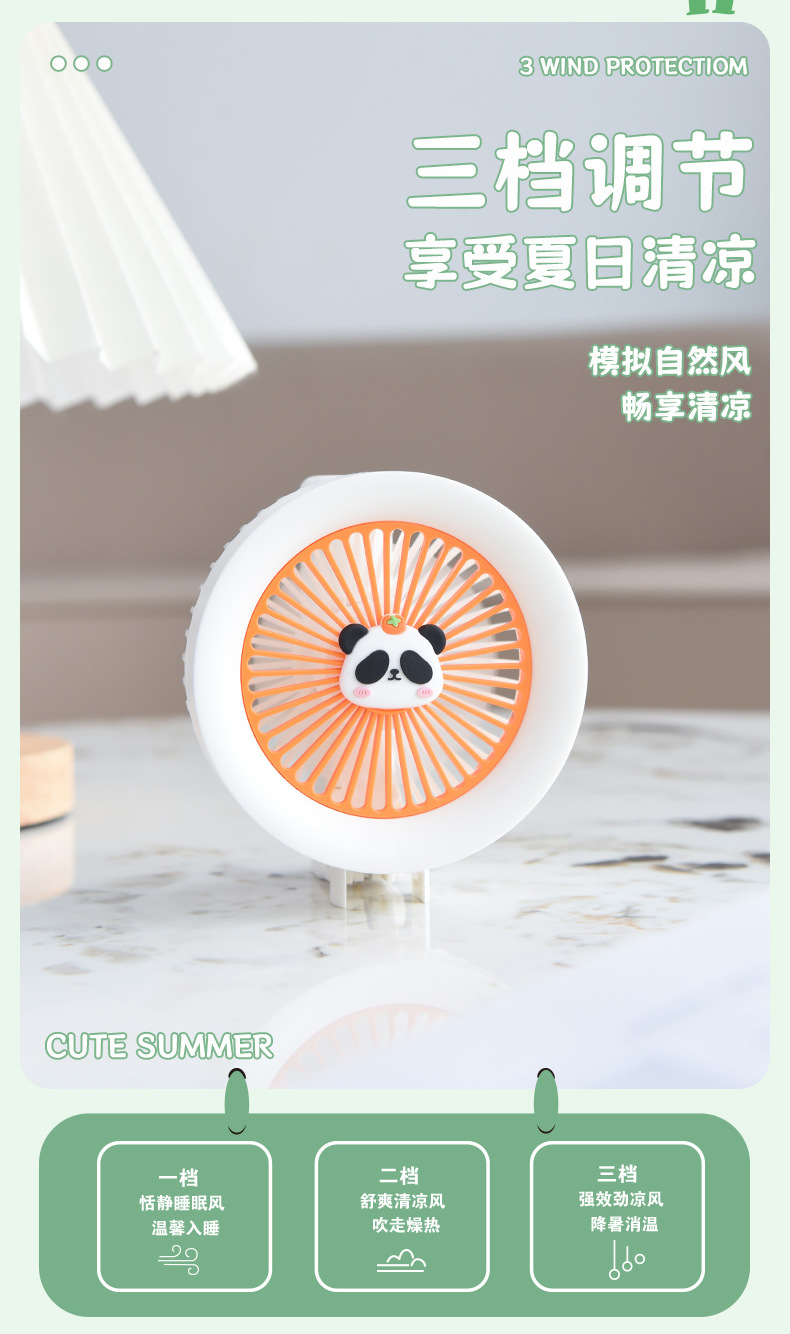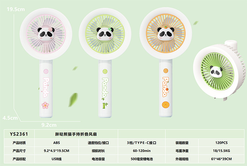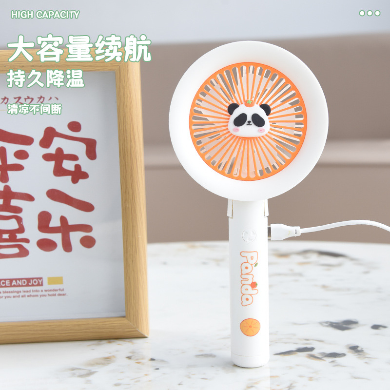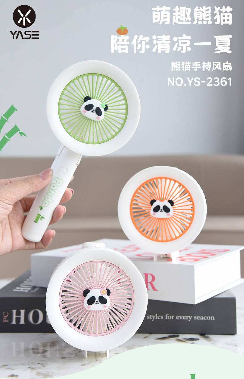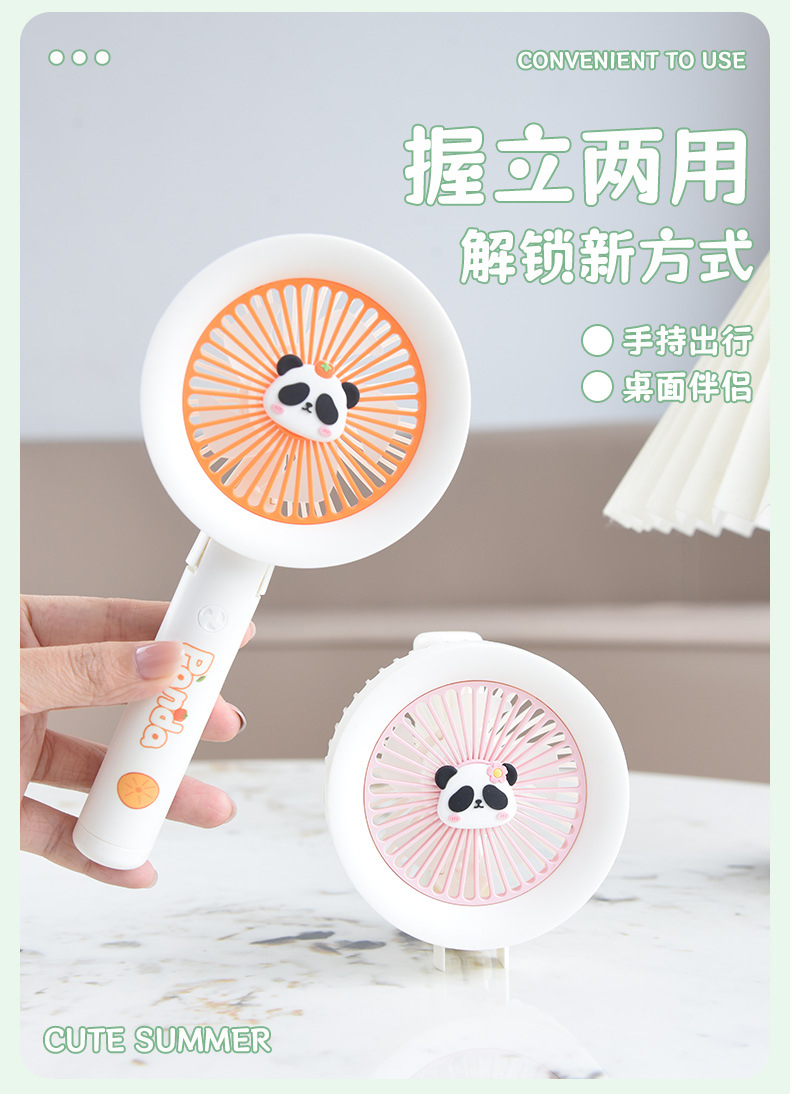 熊猫新款折叠手持小风扇迷你小风扇USB充电三档风力便携式电风扇