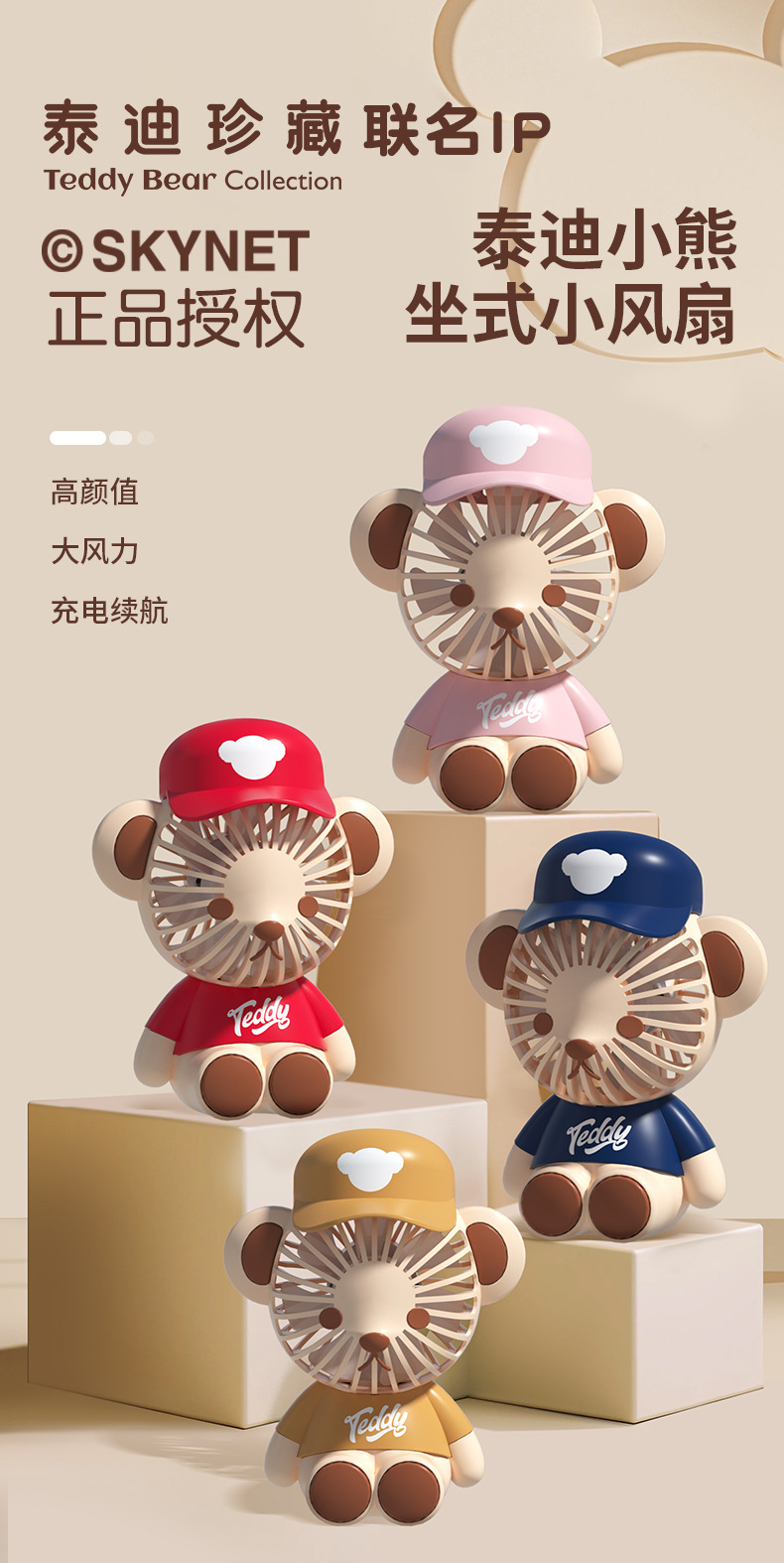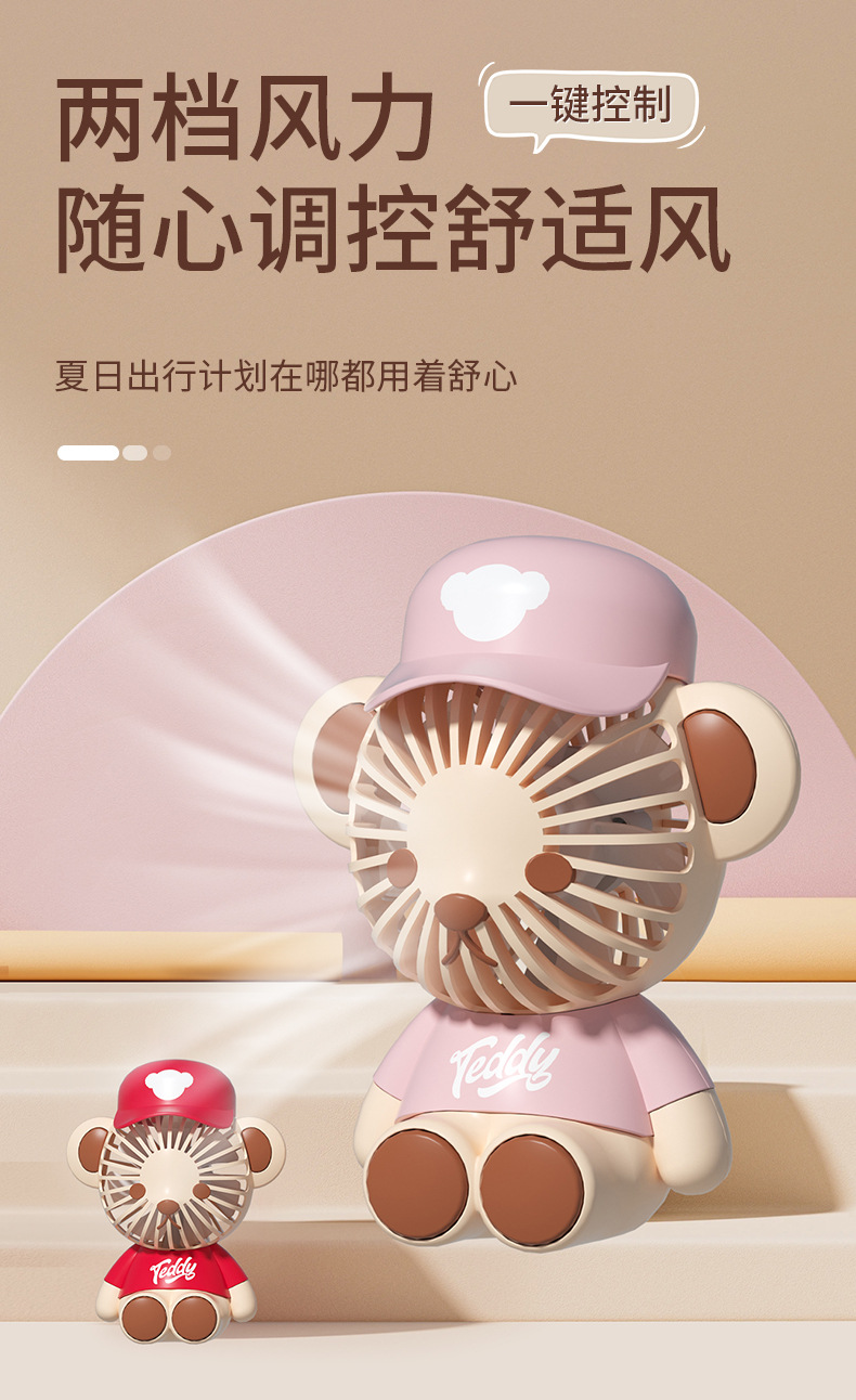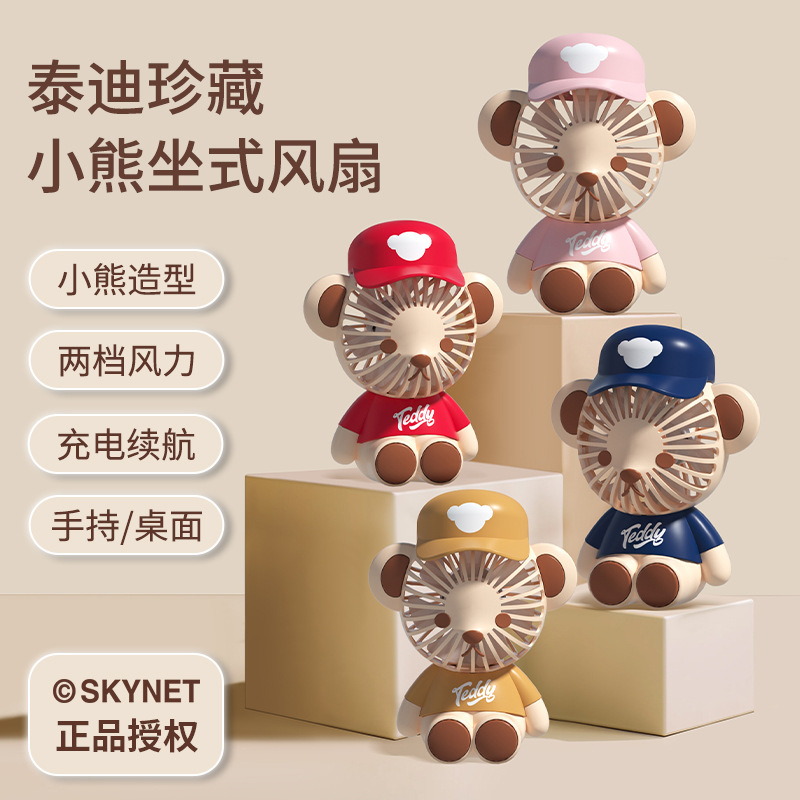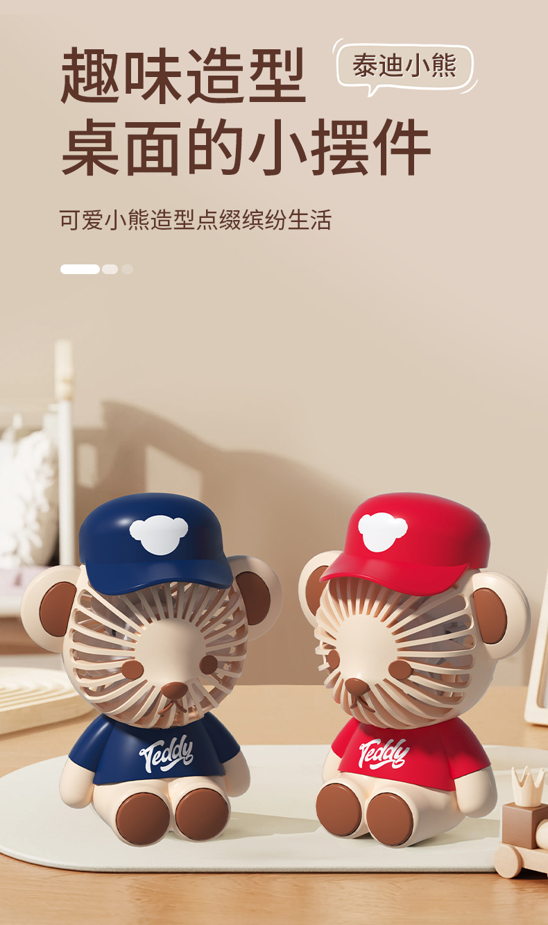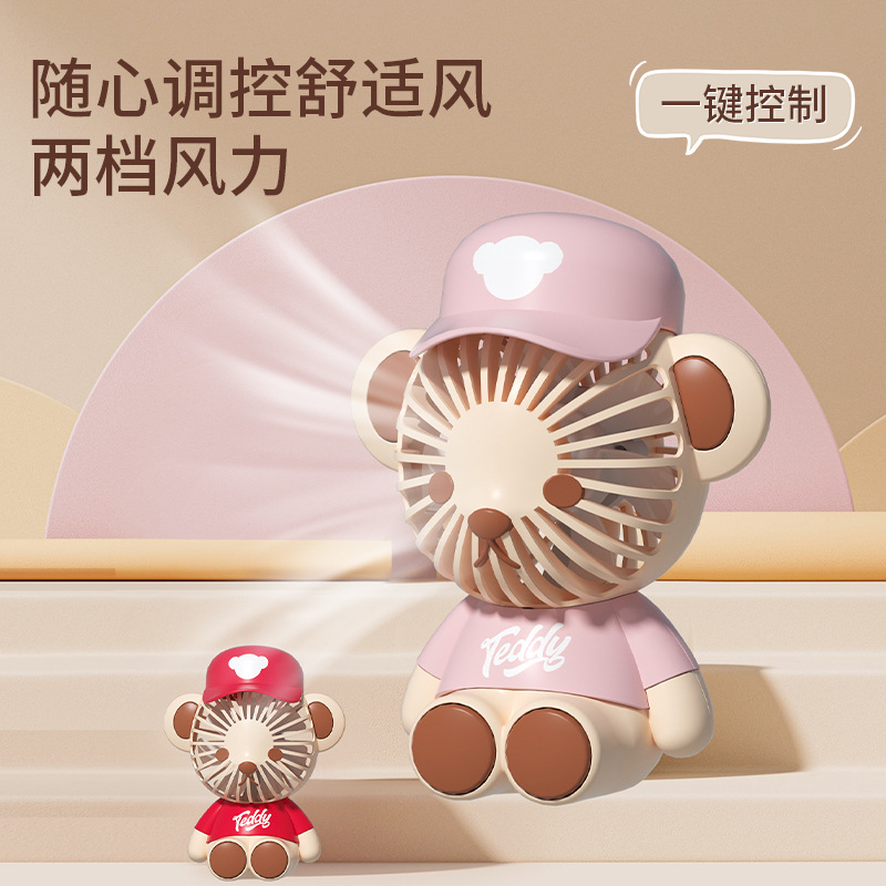 泰迪熊小风扇USB充电迷你便携式卡通可爱办公桌面礼品风扇厂批发
