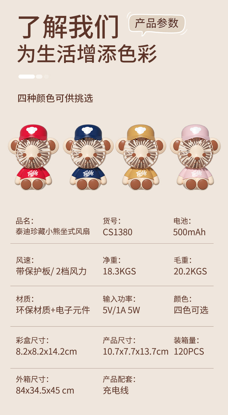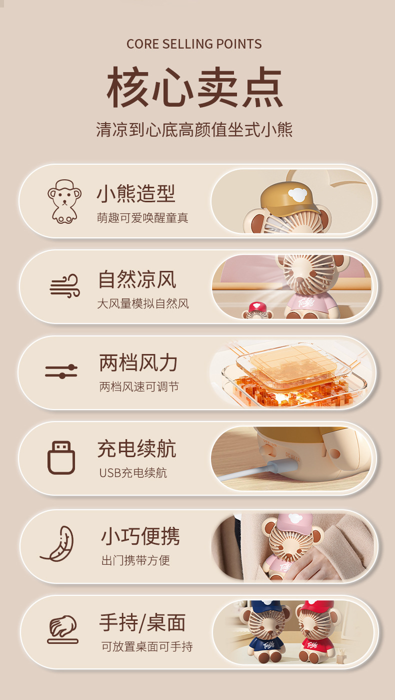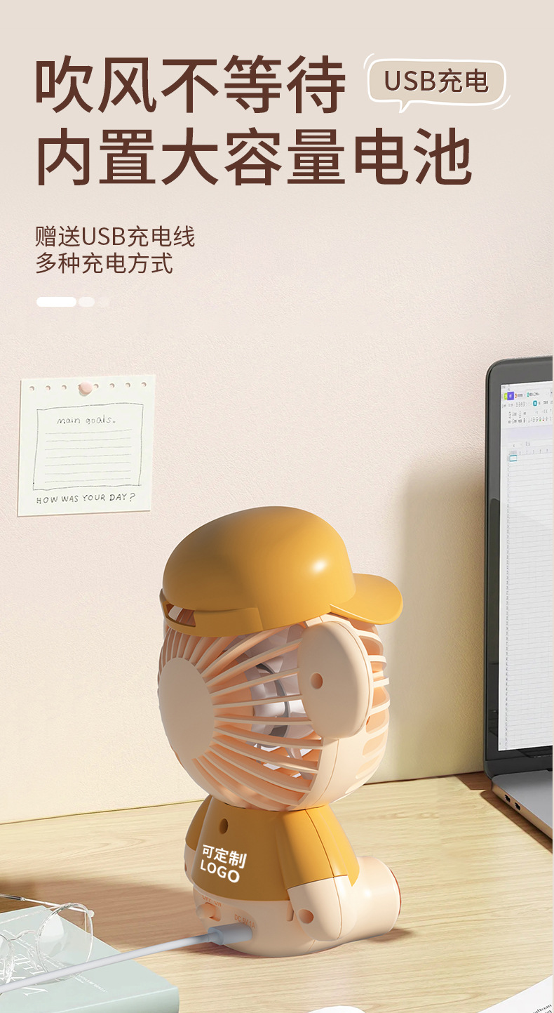 泰迪熊小风扇USB充电迷你便携式卡通可爱办公桌面礼品风扇厂批发