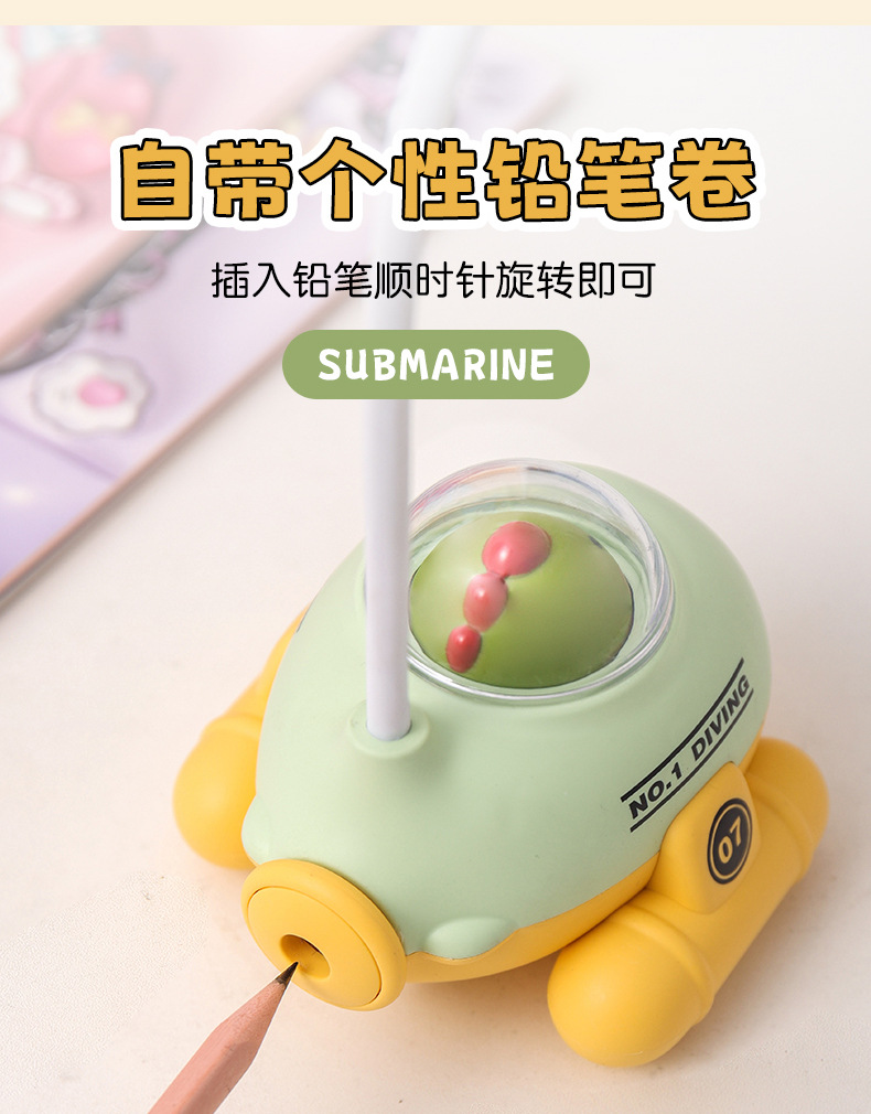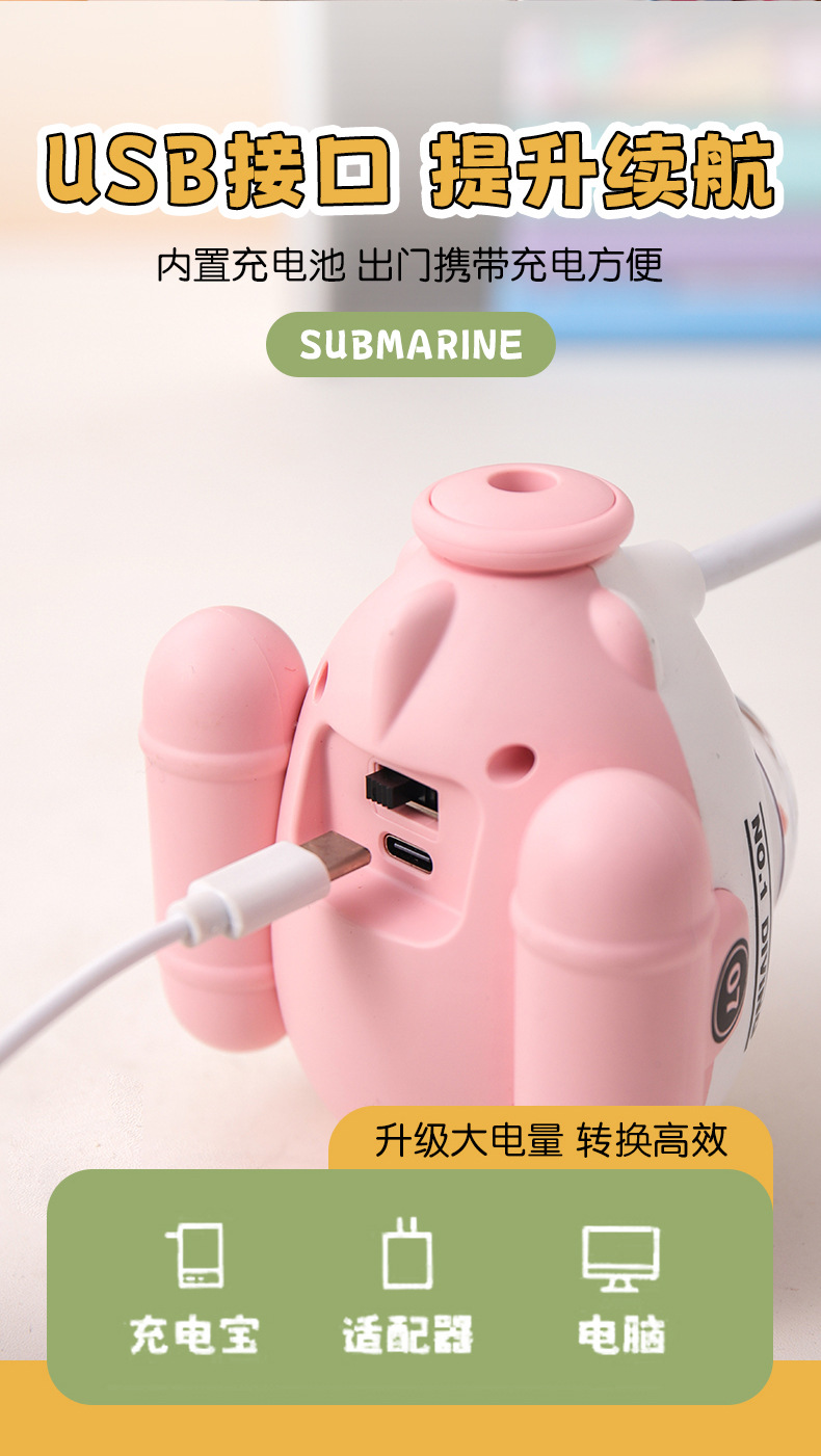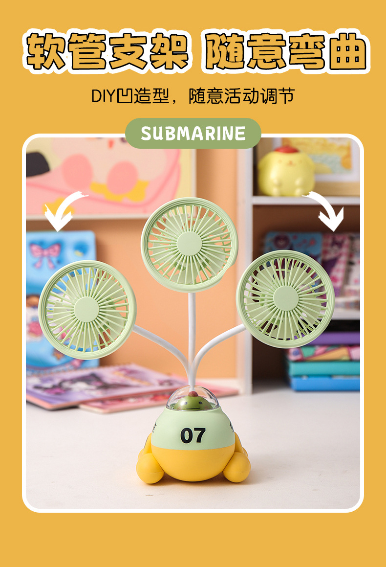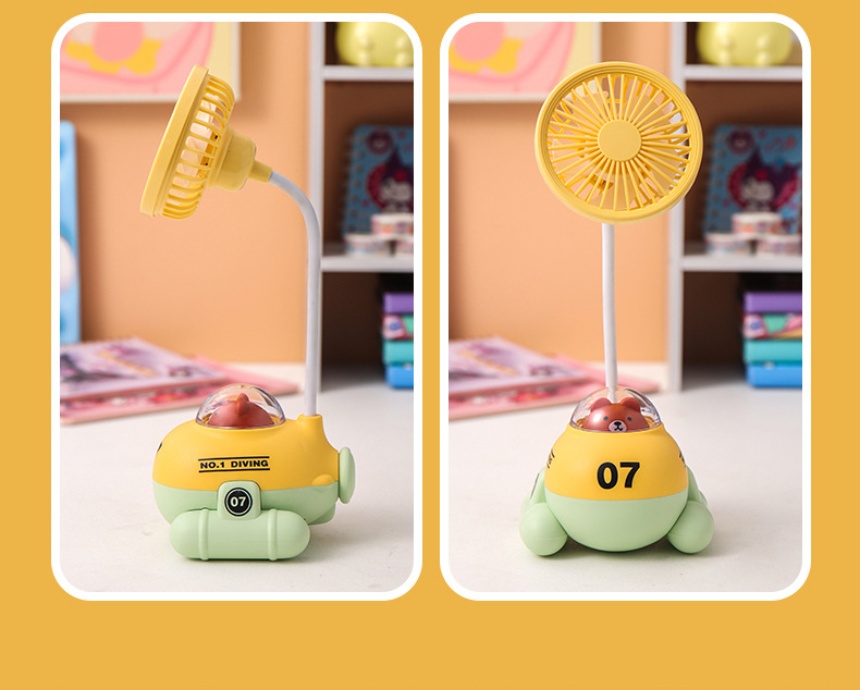 儿童卡通潜水艇小风扇USB充电学生桌面卷笔刀风扇便携式礼品电扇