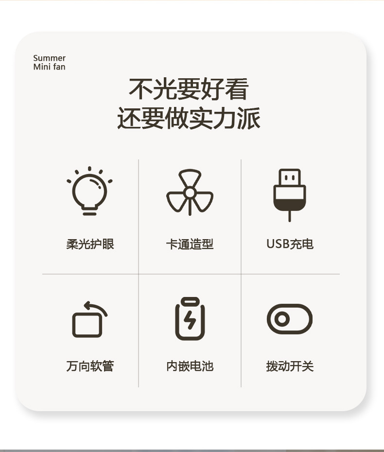 新款卡通小风扇 USB充电迷你台式电风扇学生宿舍桌面夜灯电风扇厂