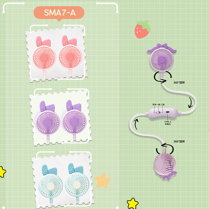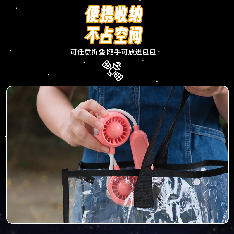 卡通萌熊折叠手持小风扇充电款便携式夏季户外学生礼品挂脖电风扇