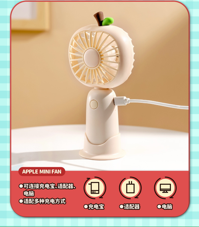 卡通迷你手持小风扇桌面usb充电便携式学生礼物跨境水果电扇批发