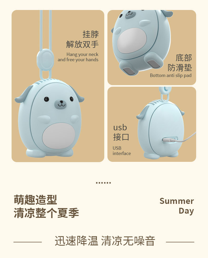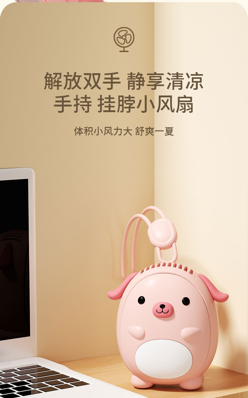爆款卡通可爱挂脖小风扇usb充电迷你静音便携式户外儿童电扇厂家