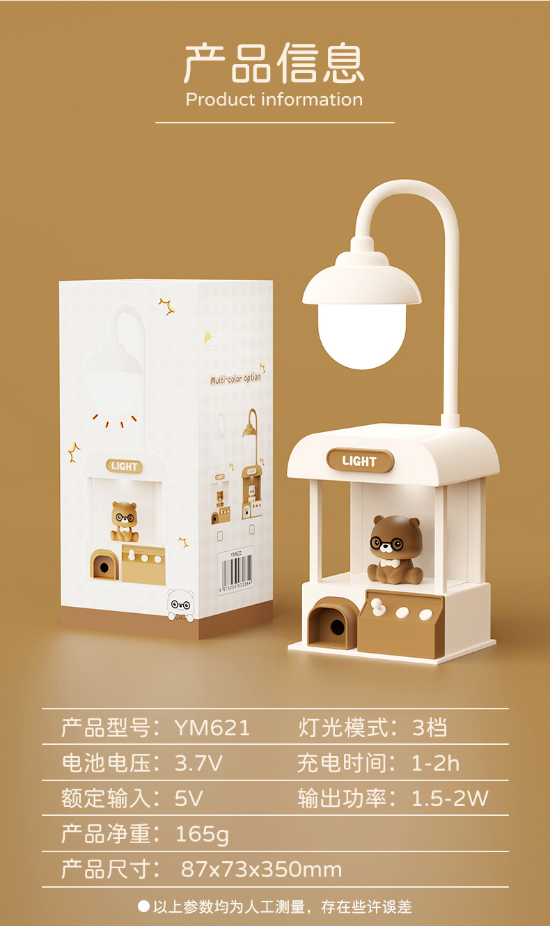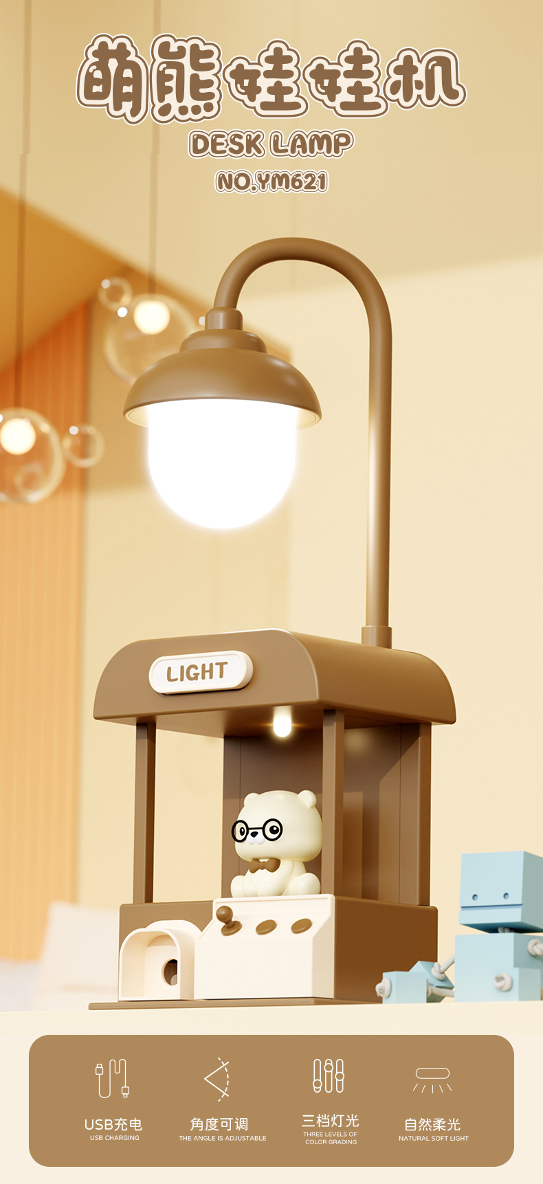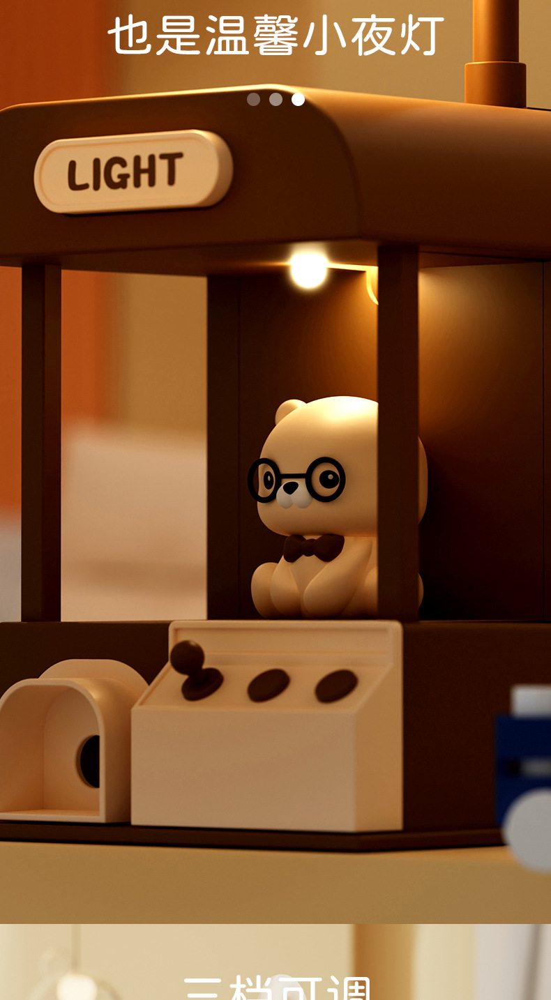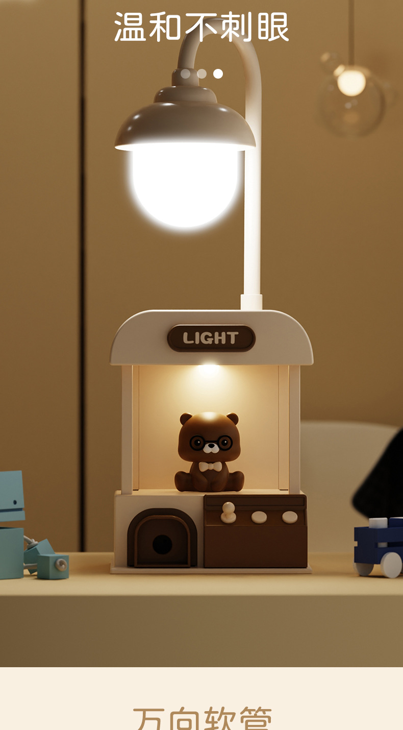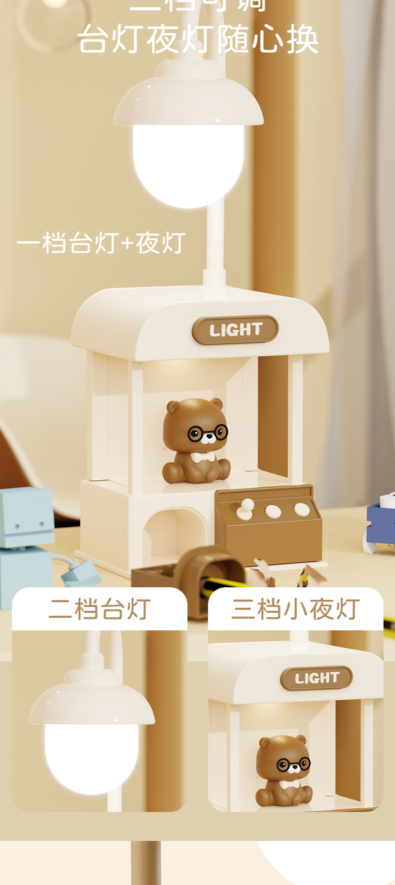 萌熊娃娃机可爱桌面夜灯带卷笔刀三档灯光儿童学生桌面护眼学习灯