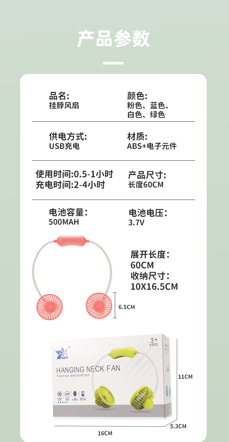 卡通挂脖风扇批发迷你便携式小电扇 USB充电学生户外运动风扇厂家