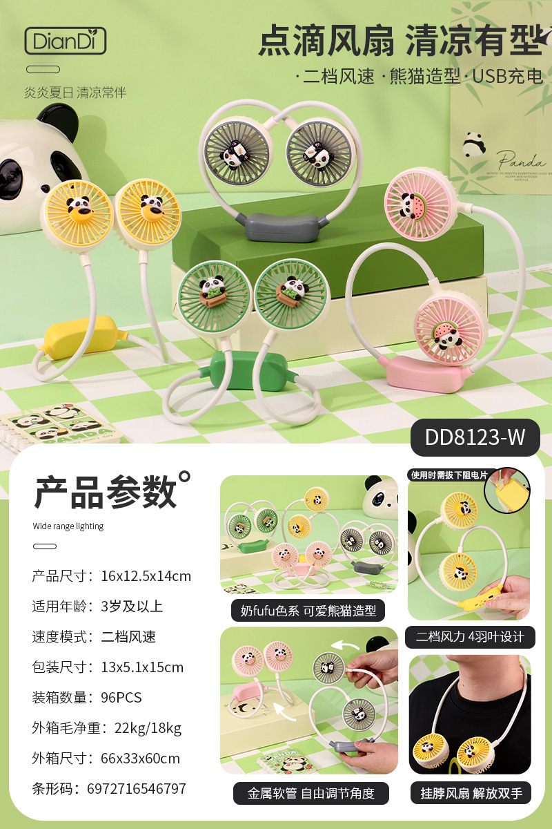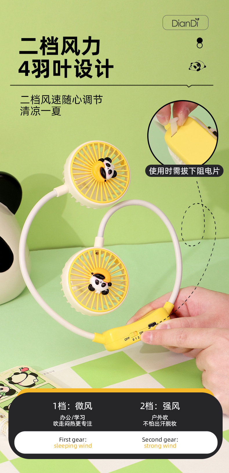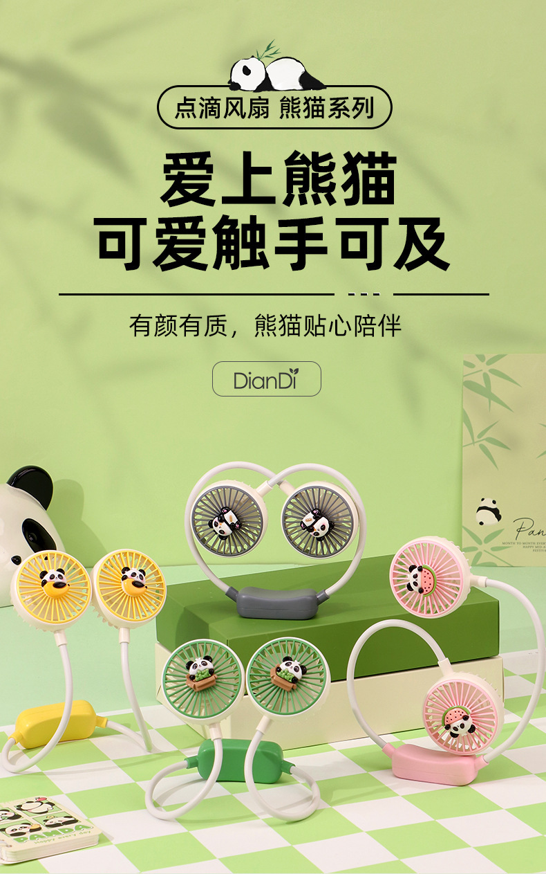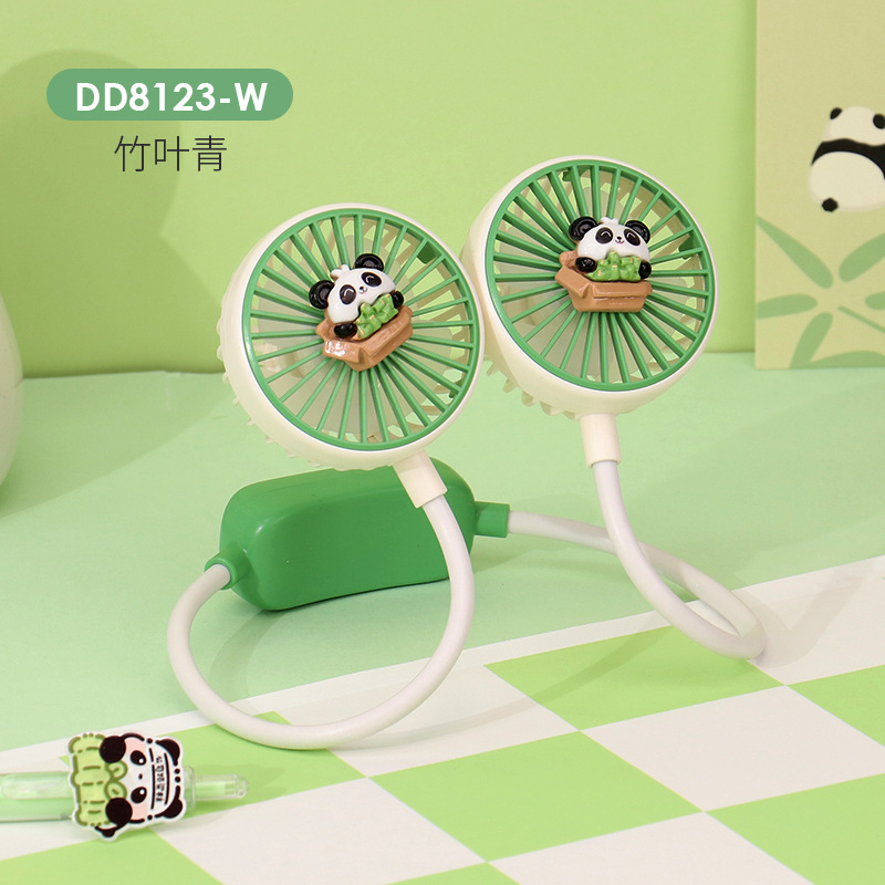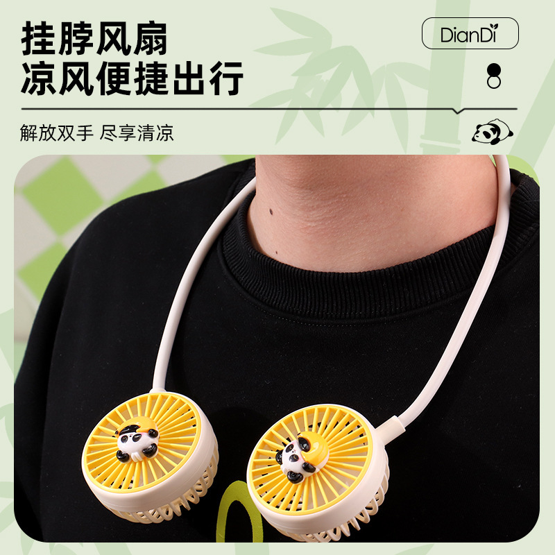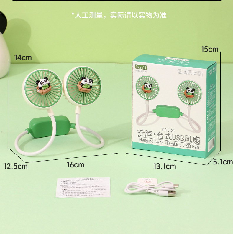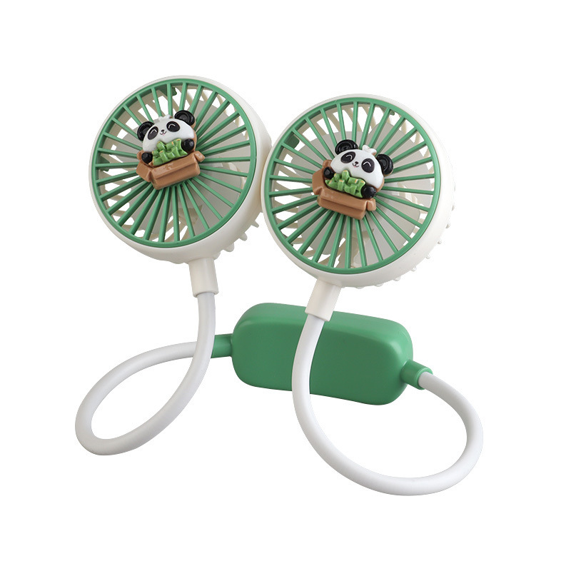 跨境新款熊猫懒人挂脖小风扇usb充电户外便携式大风力电扇批发厂