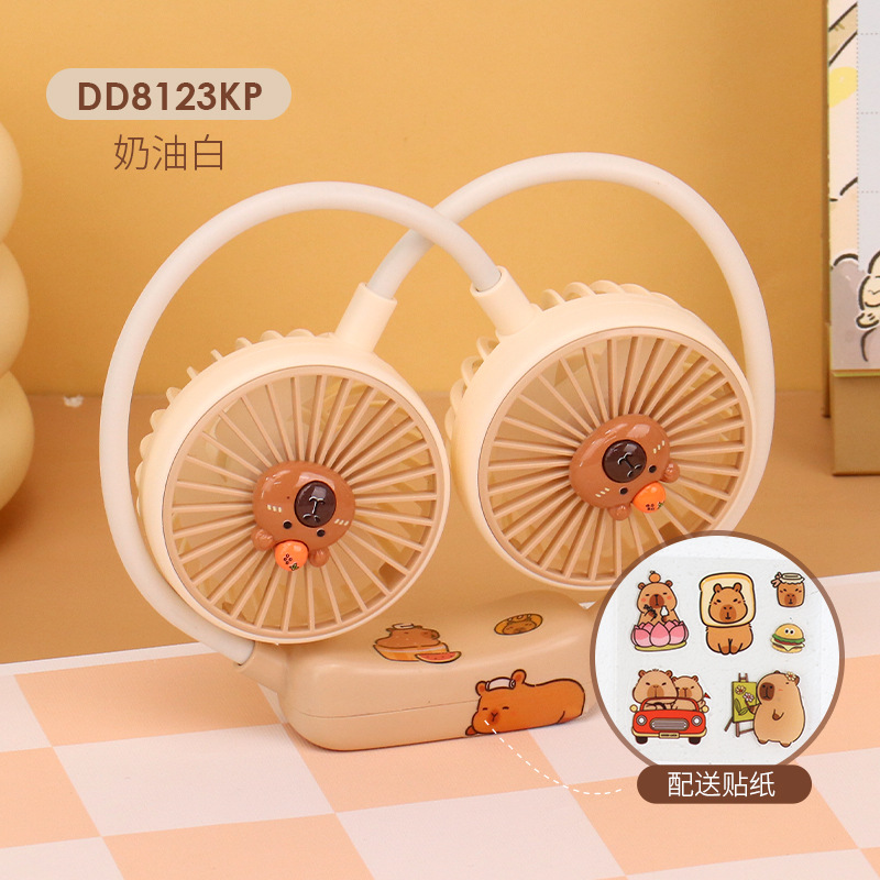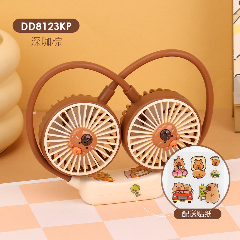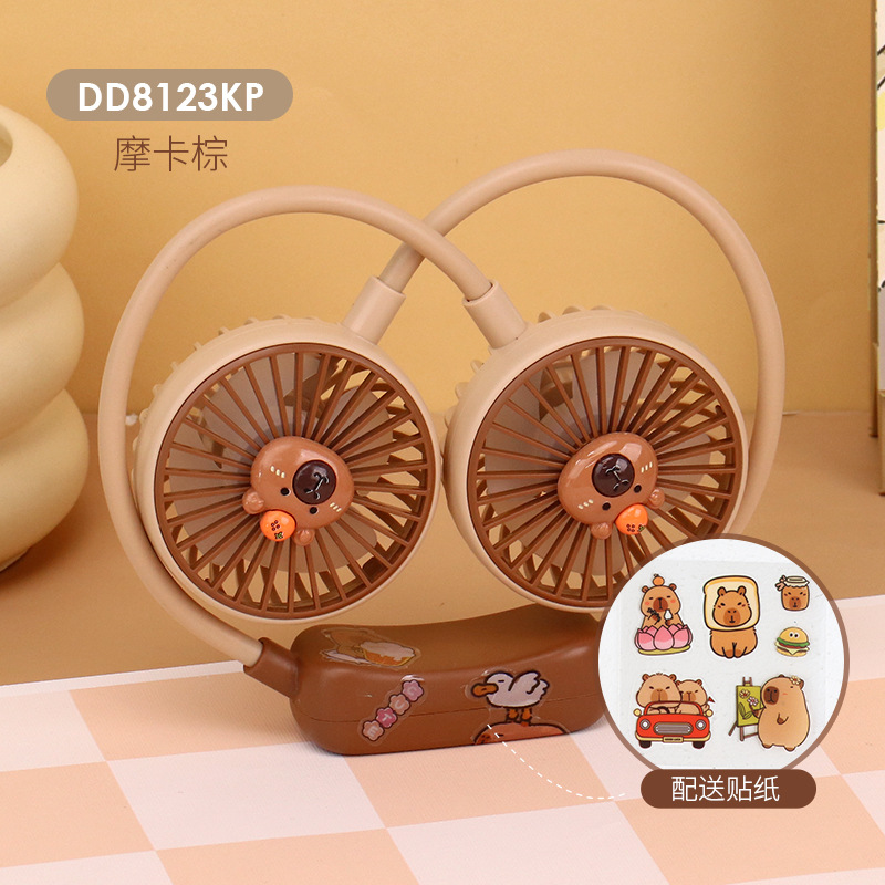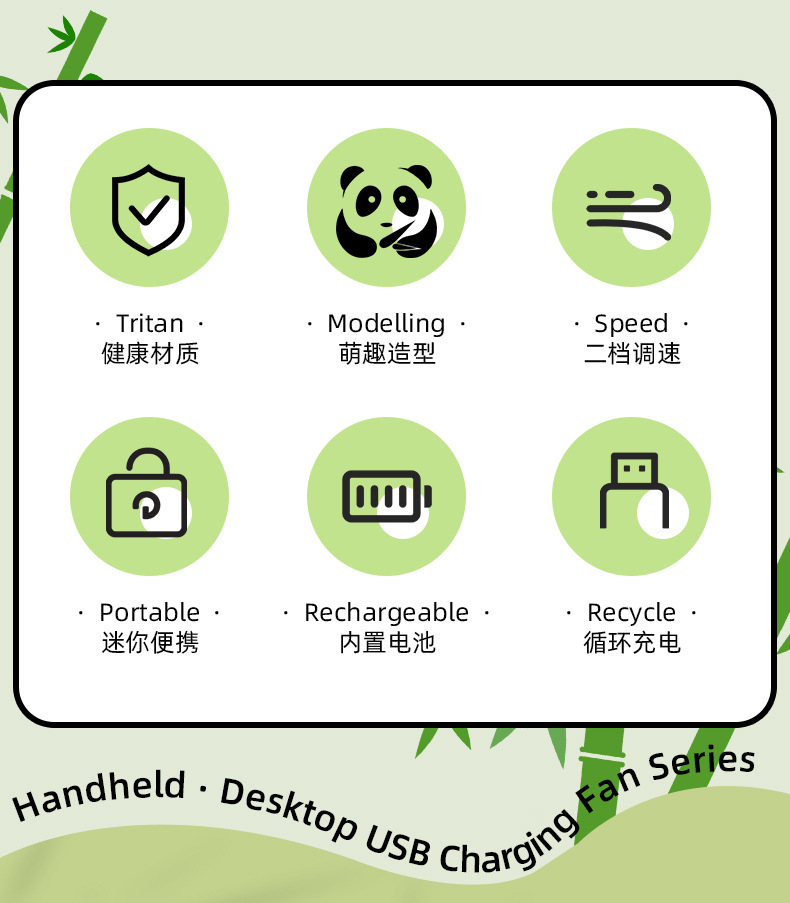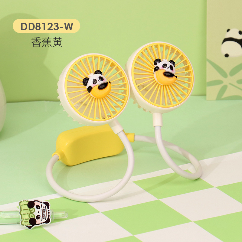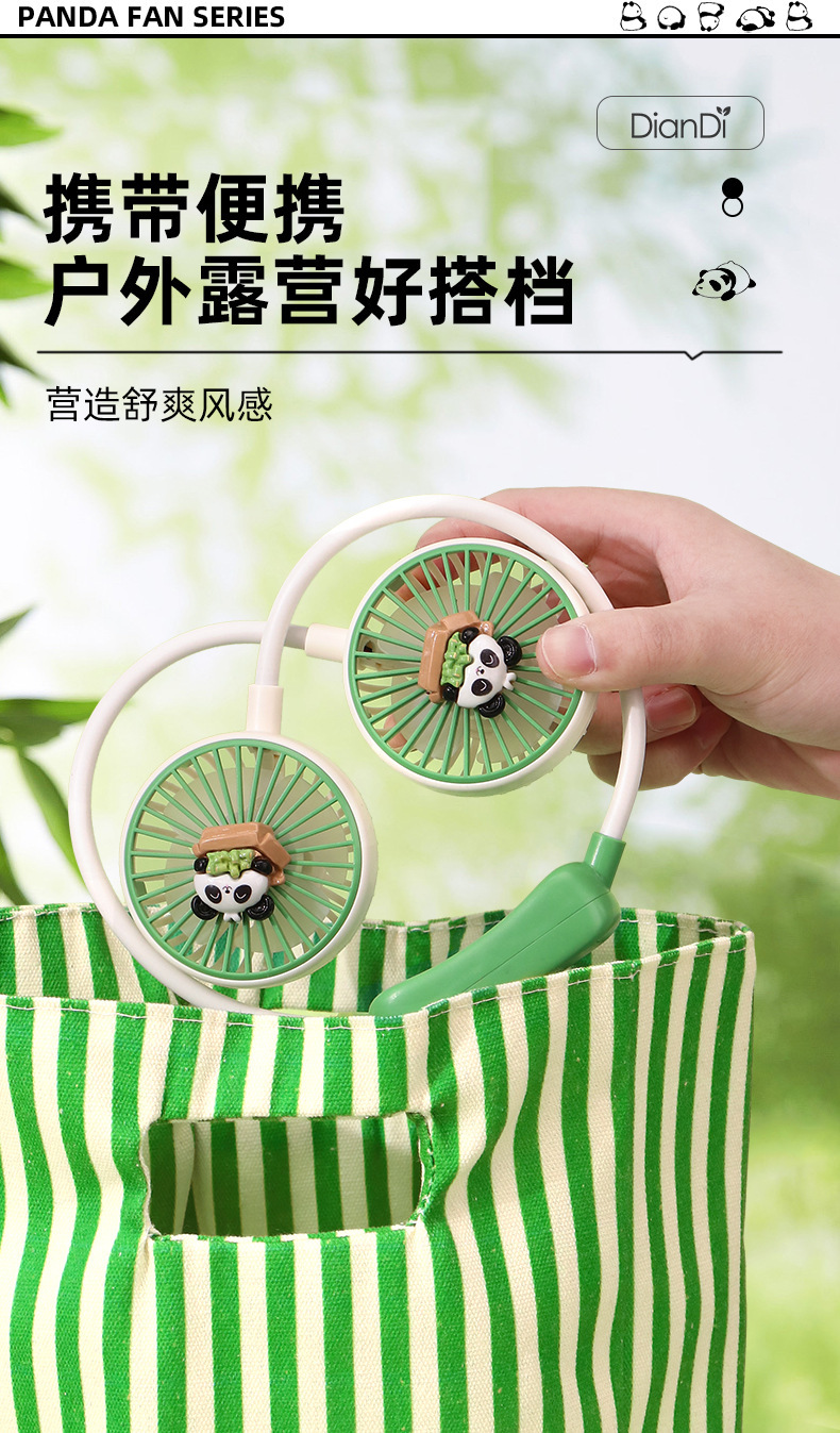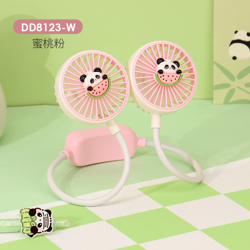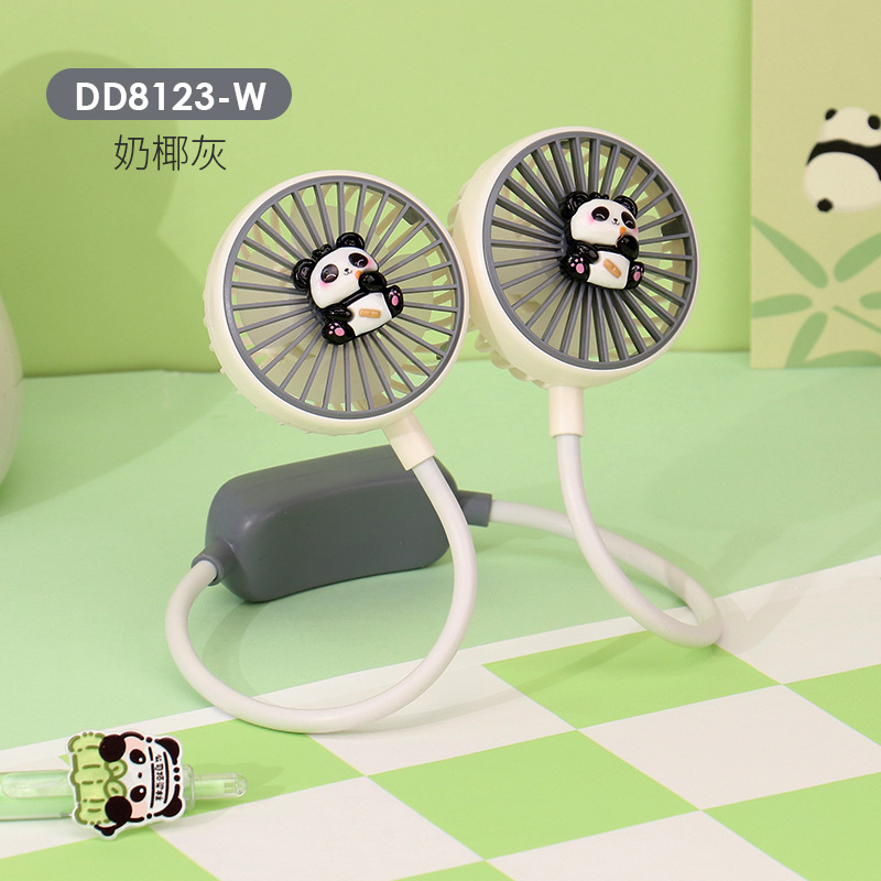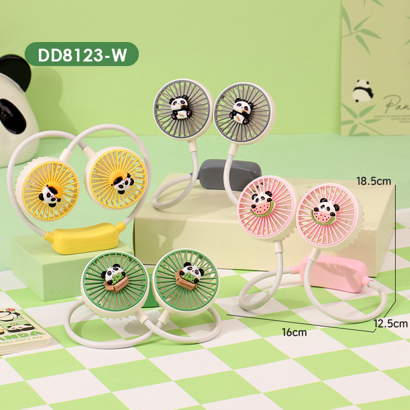 跨境新款熊猫懒人挂脖小风扇usb充电户外便携式大风力电扇批发厂