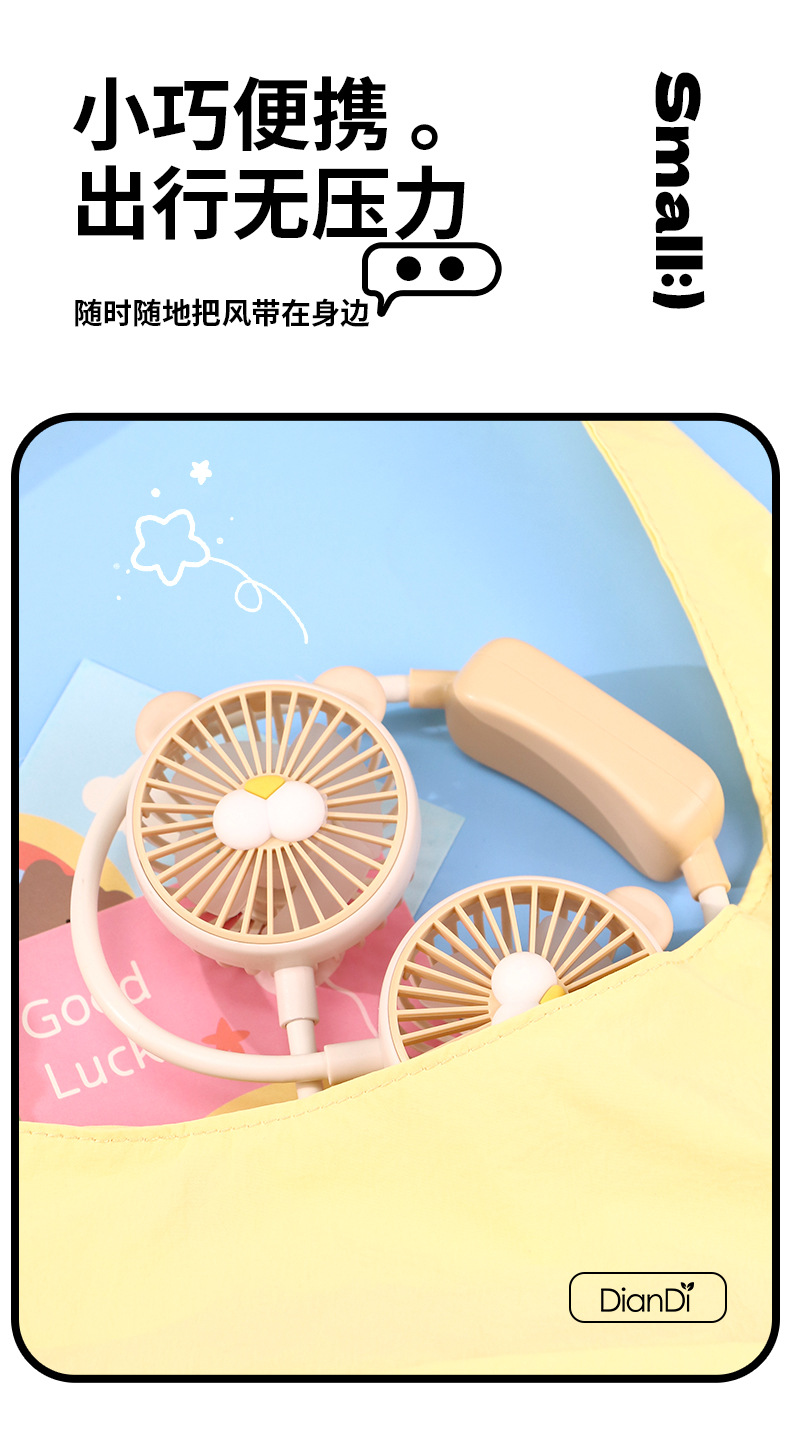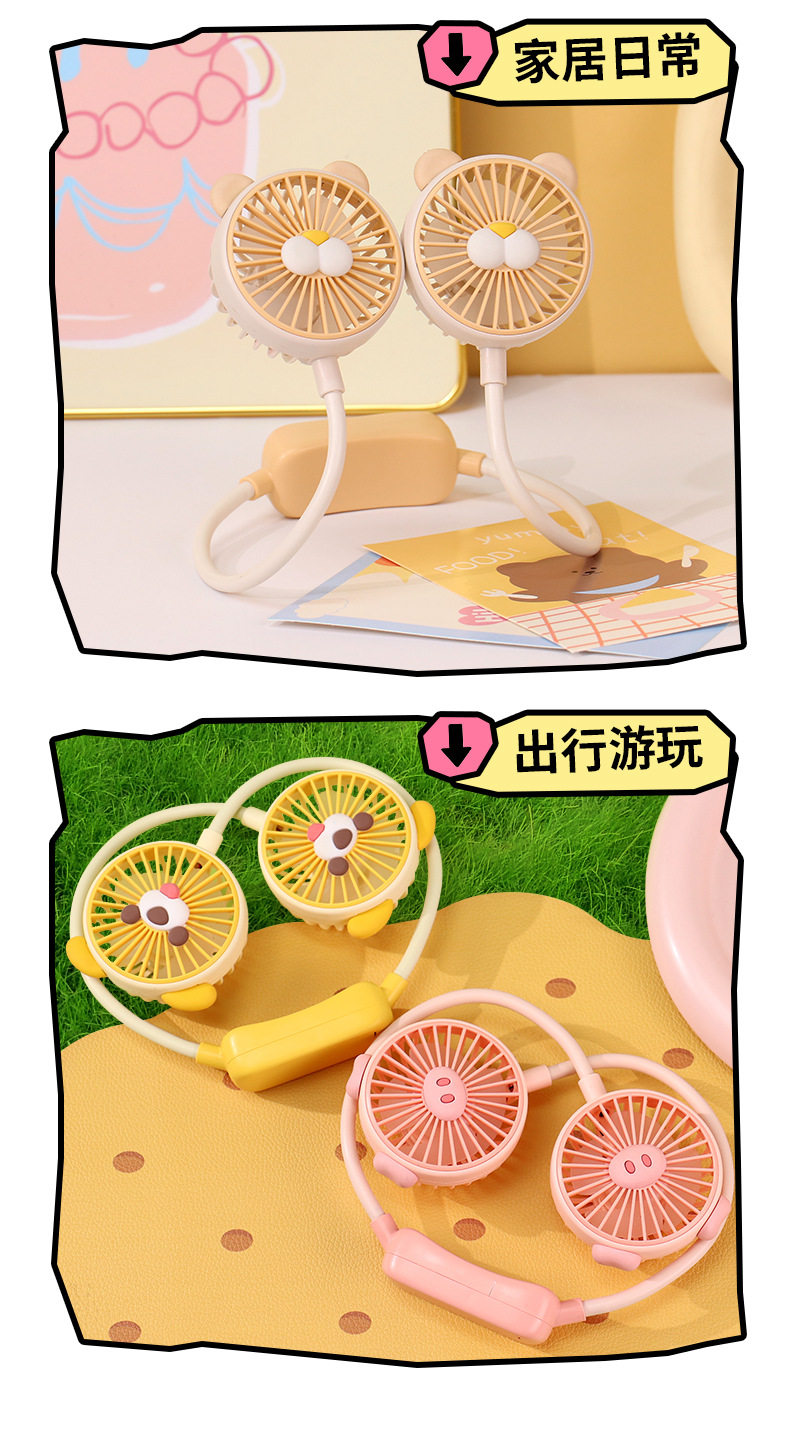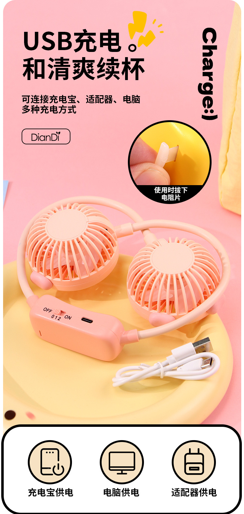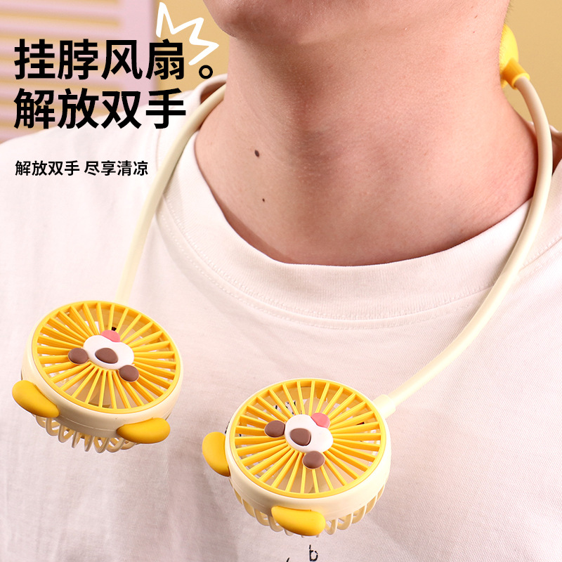 新款挂脖小风扇usb充电可折叠卡通风扇批发跨境户外学生迷你电扇