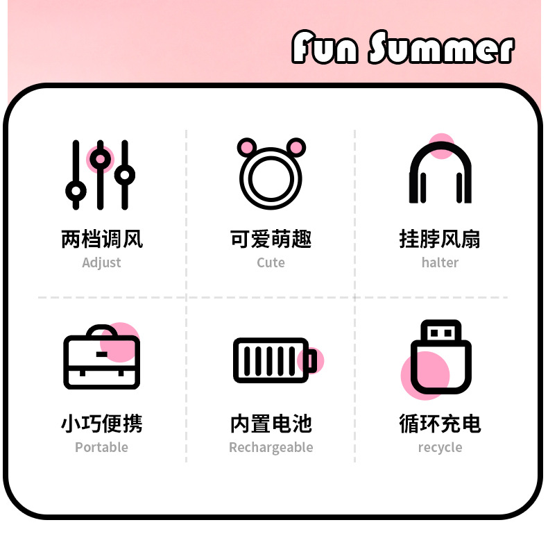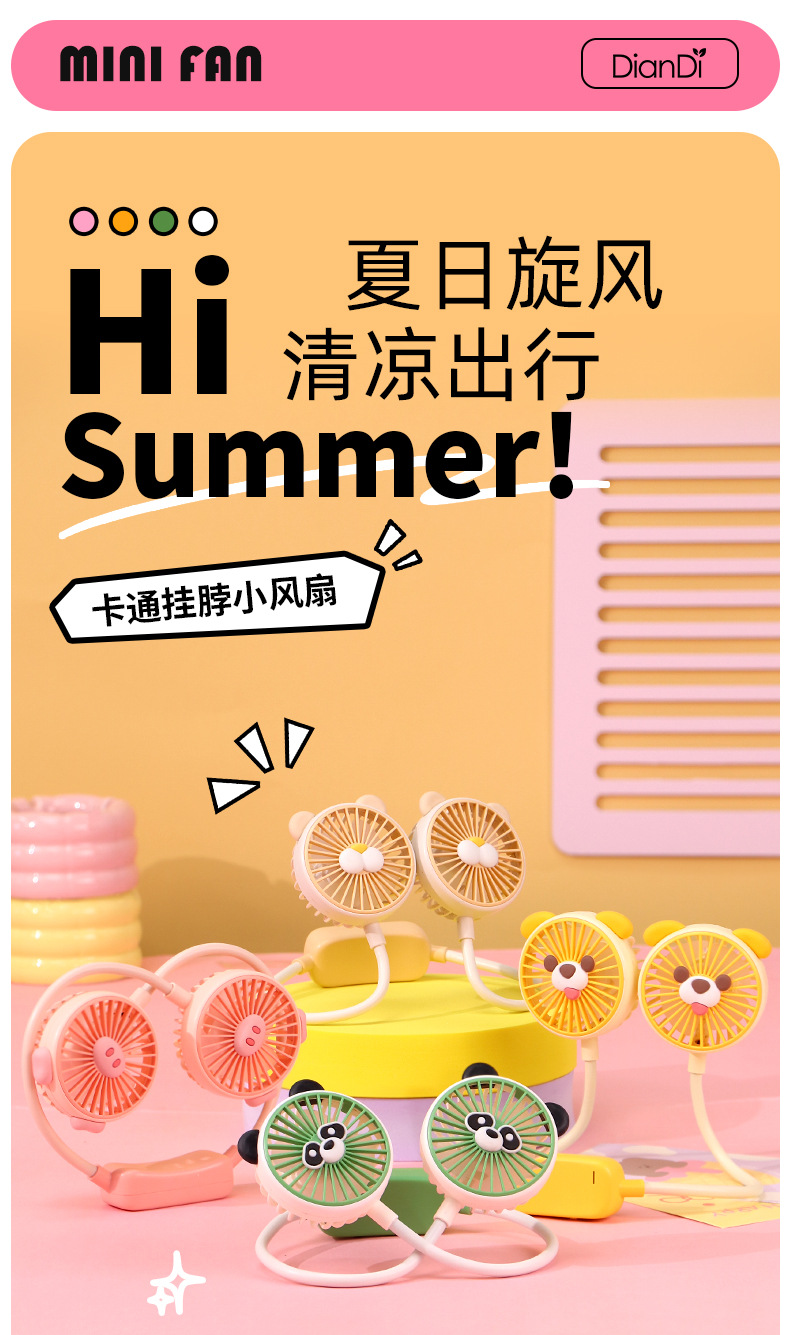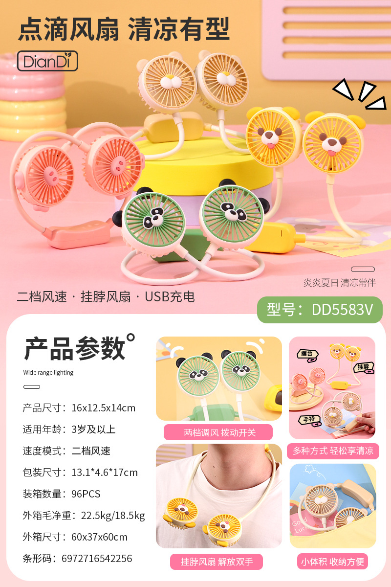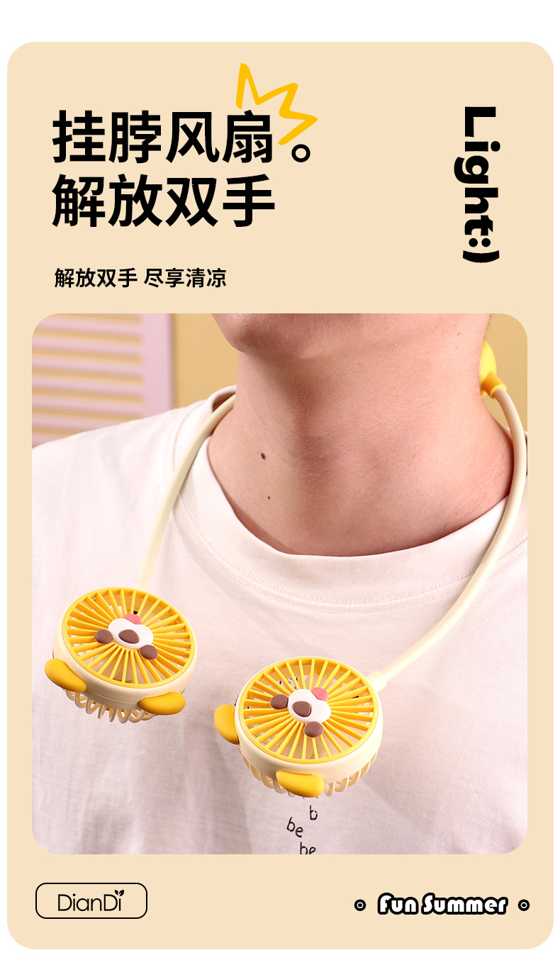 新款挂脖小风扇usb充电可折叠卡通风扇批发跨境户外学生迷你电扇