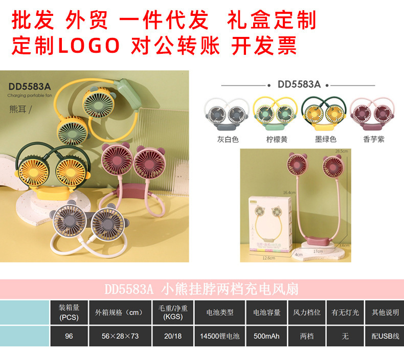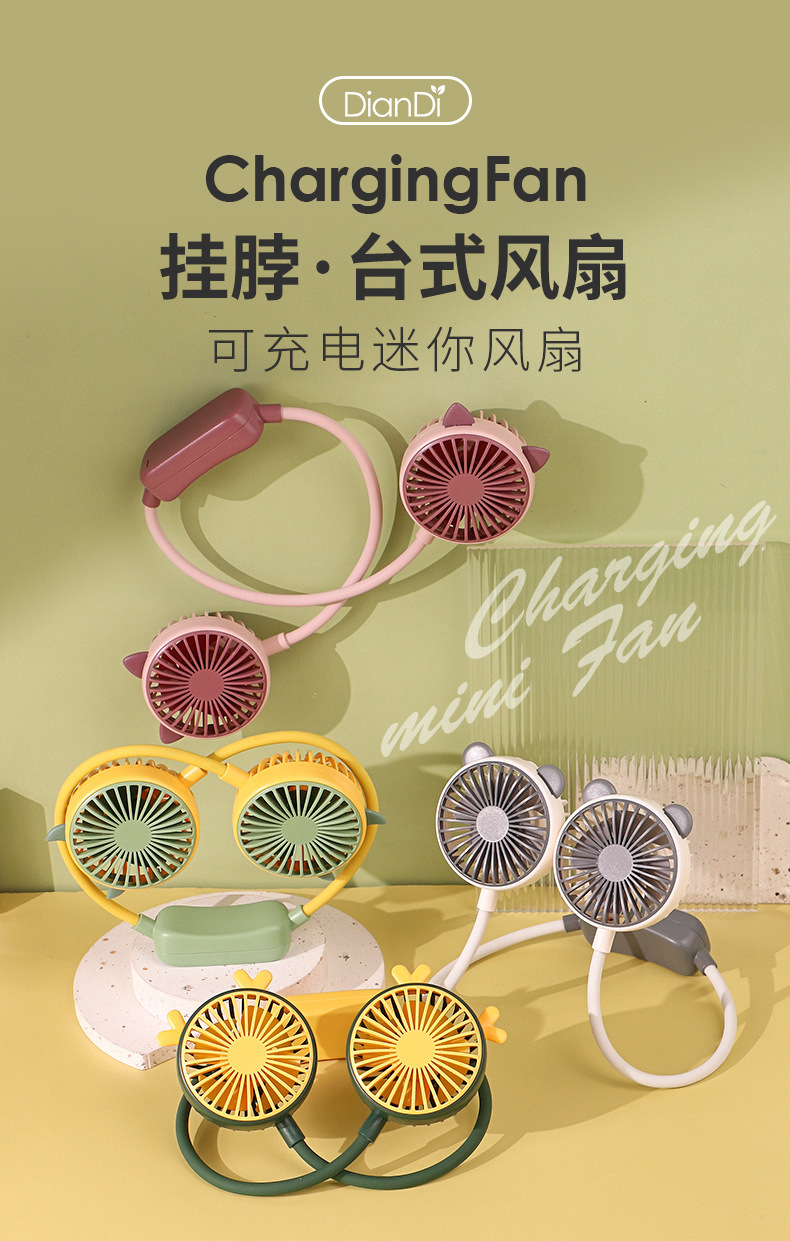 挂脖小风扇挂颈式电风扇充电可折叠 USB迷你便携式户外小电扇