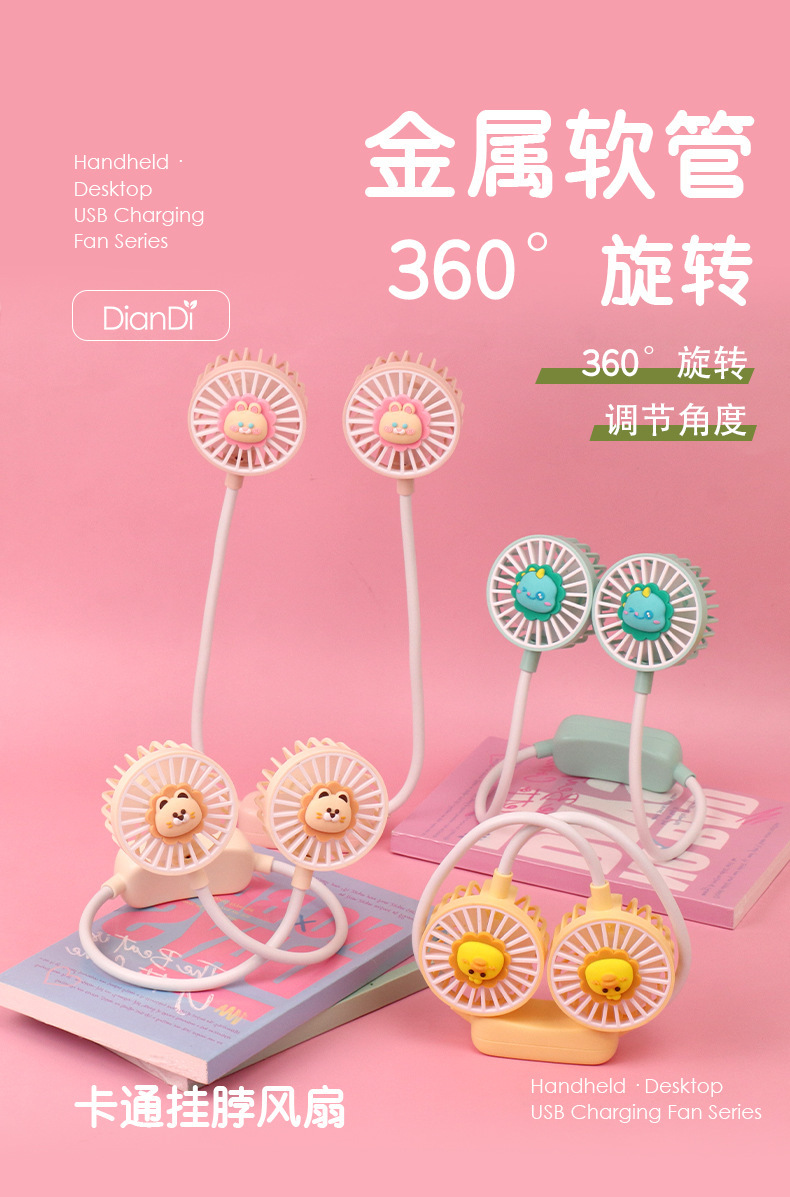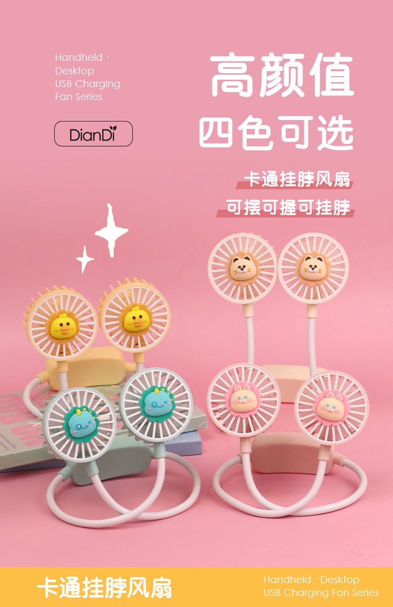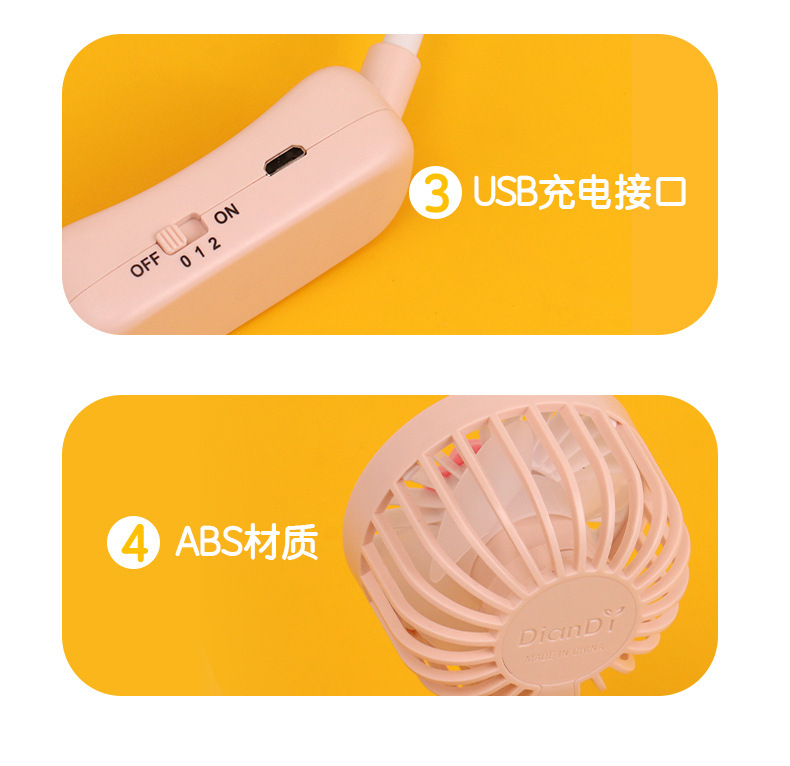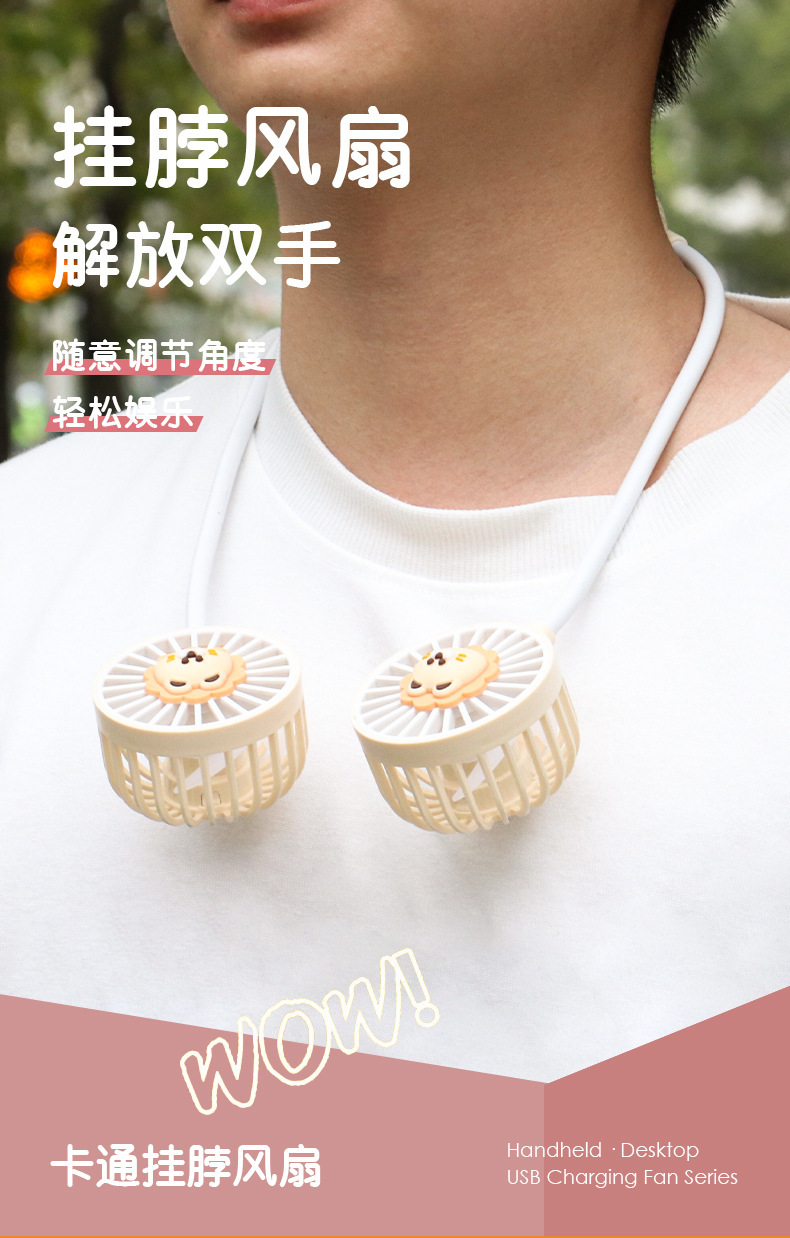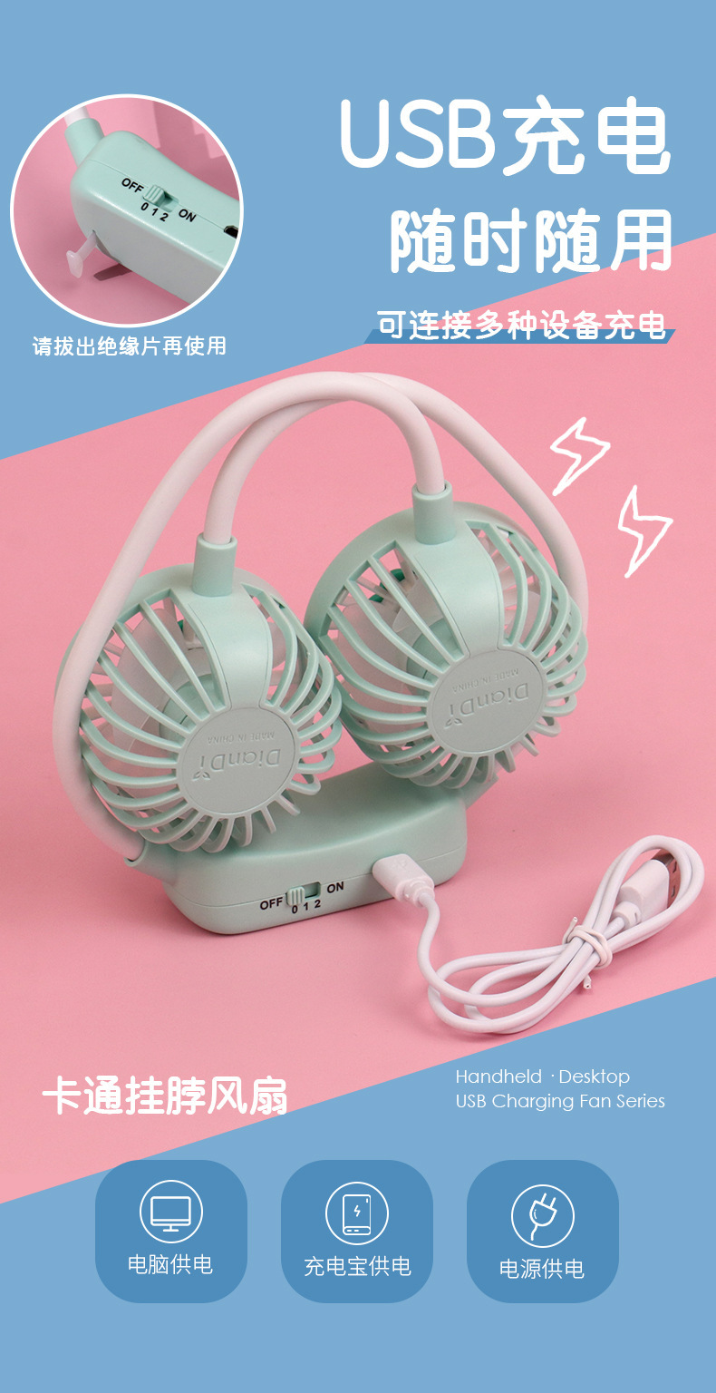 爆款卡通可爱挂脖小风扇usb充电折叠小风扇usb充电户外大风力电扇