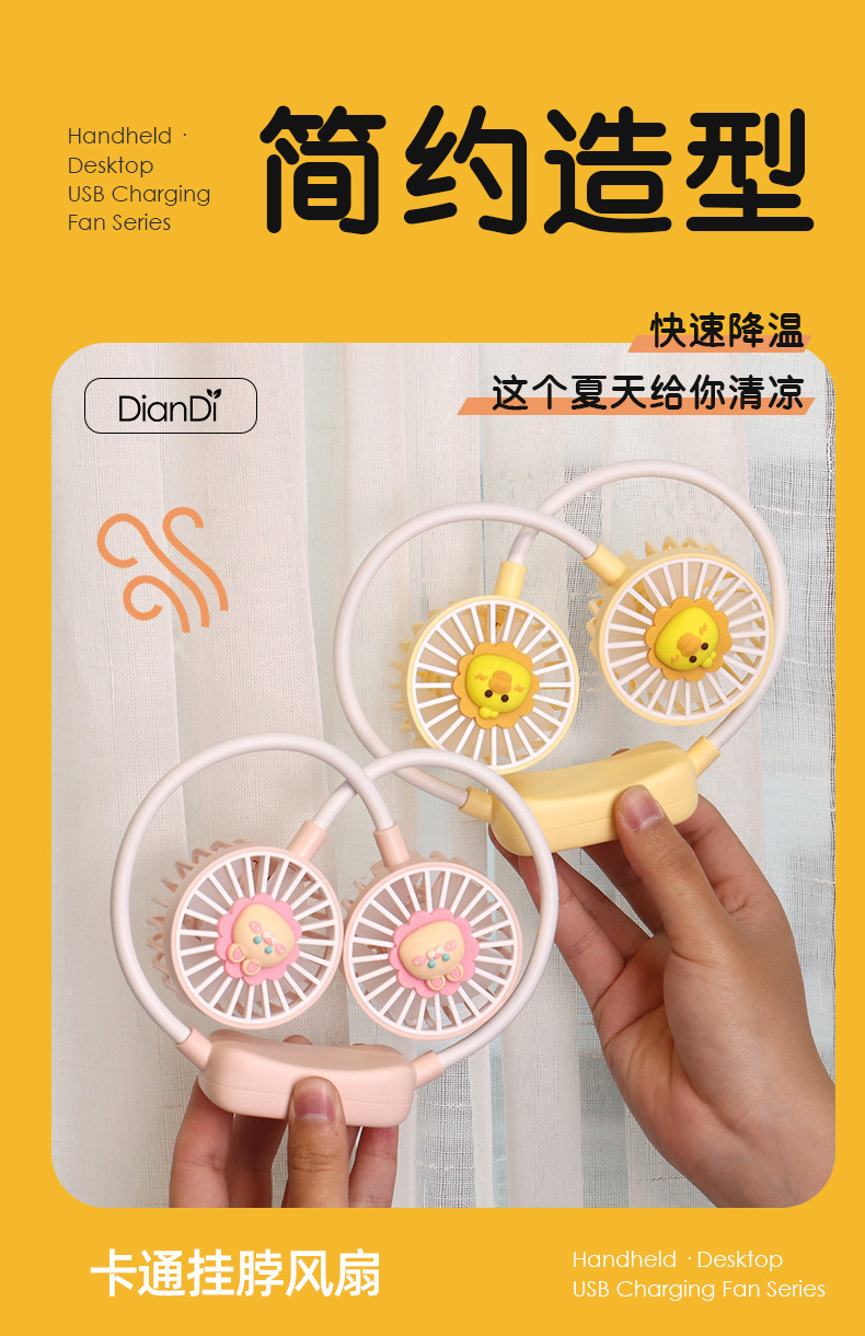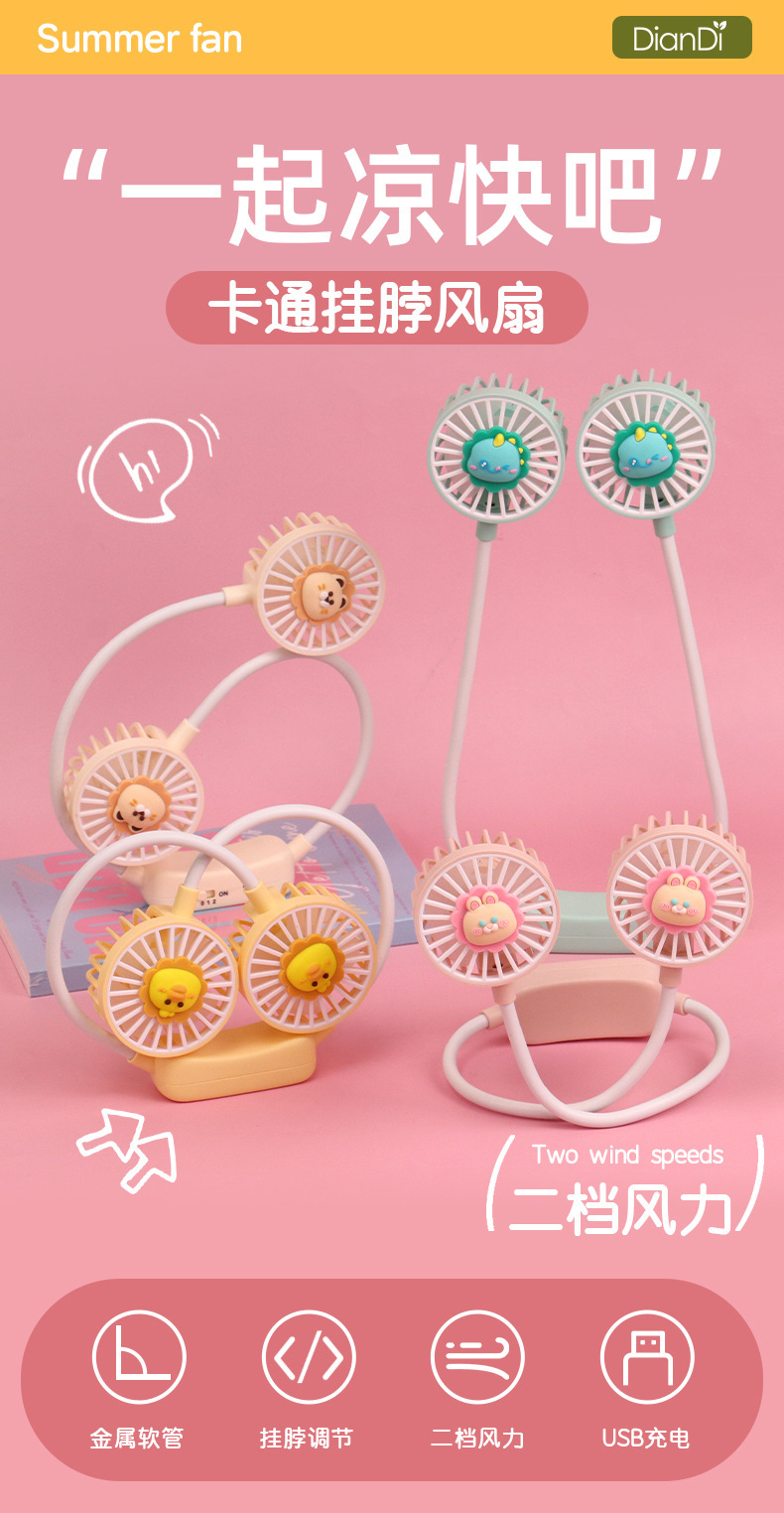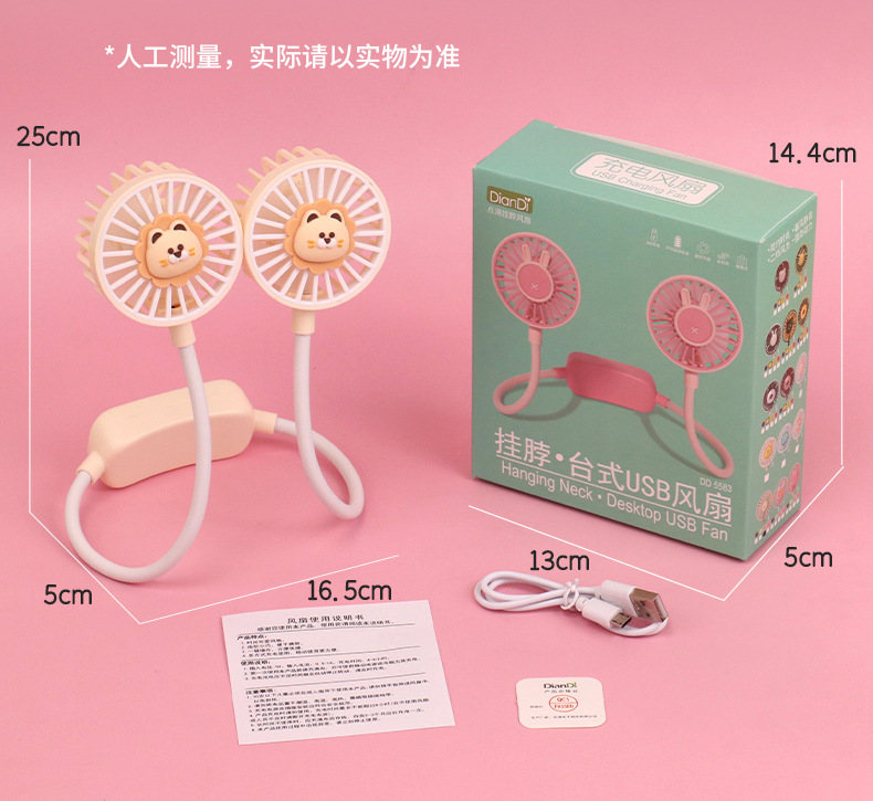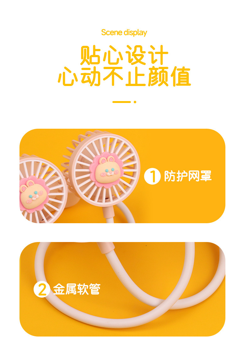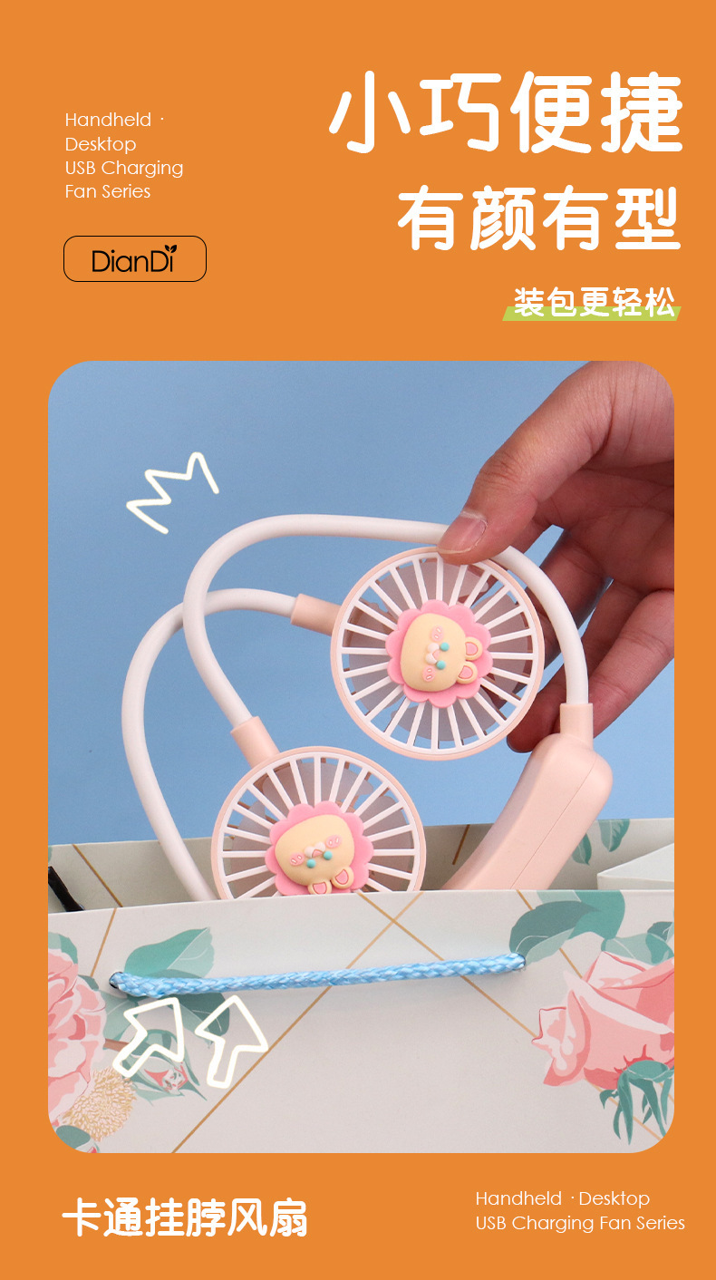 爆款卡通可爱挂脖小风扇usb充电折叠小风扇usb充电户外大风力电扇