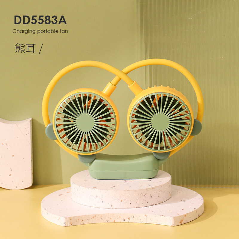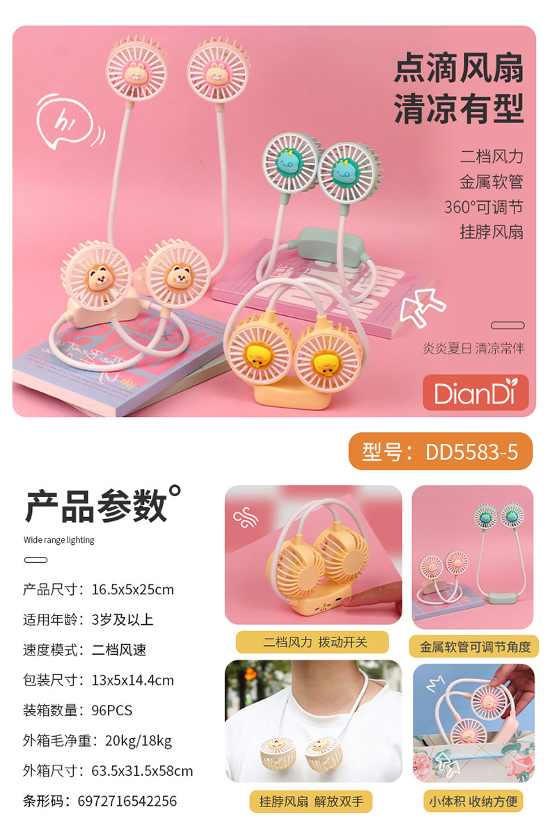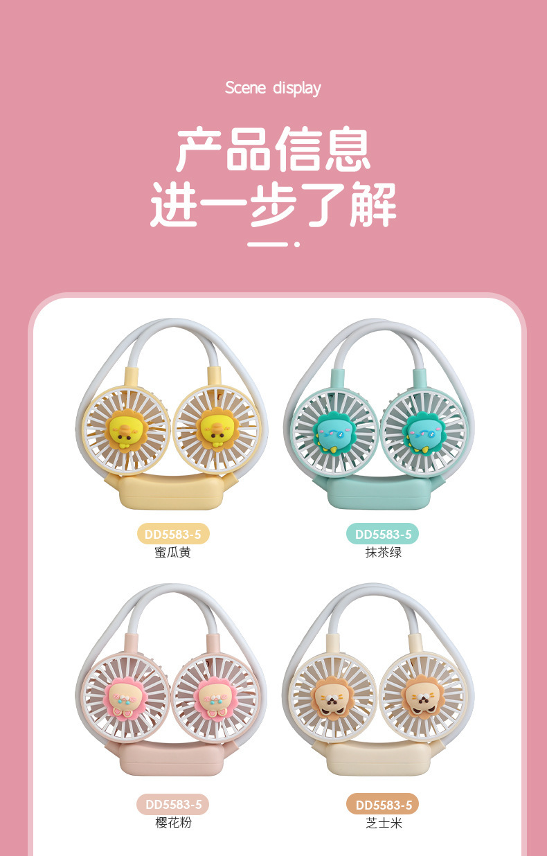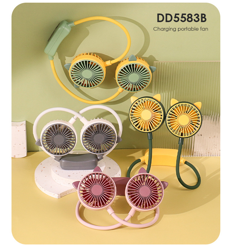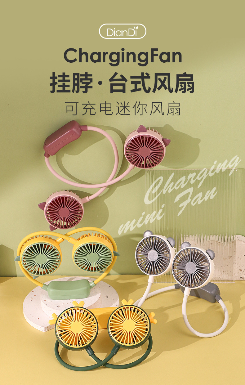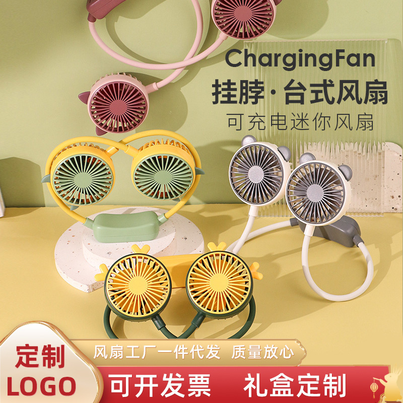 爆款卡通可爱挂脖小风扇usb充电折叠小风扇usb充电户外大风力电扇