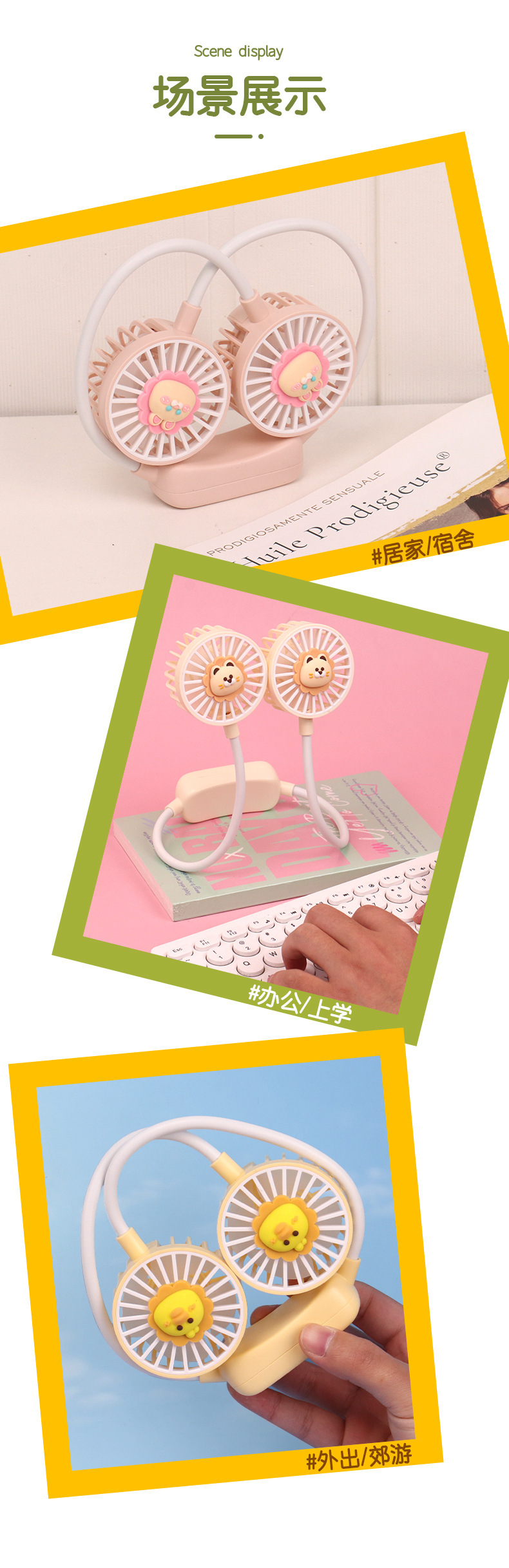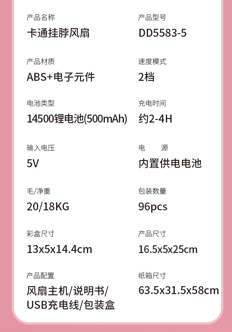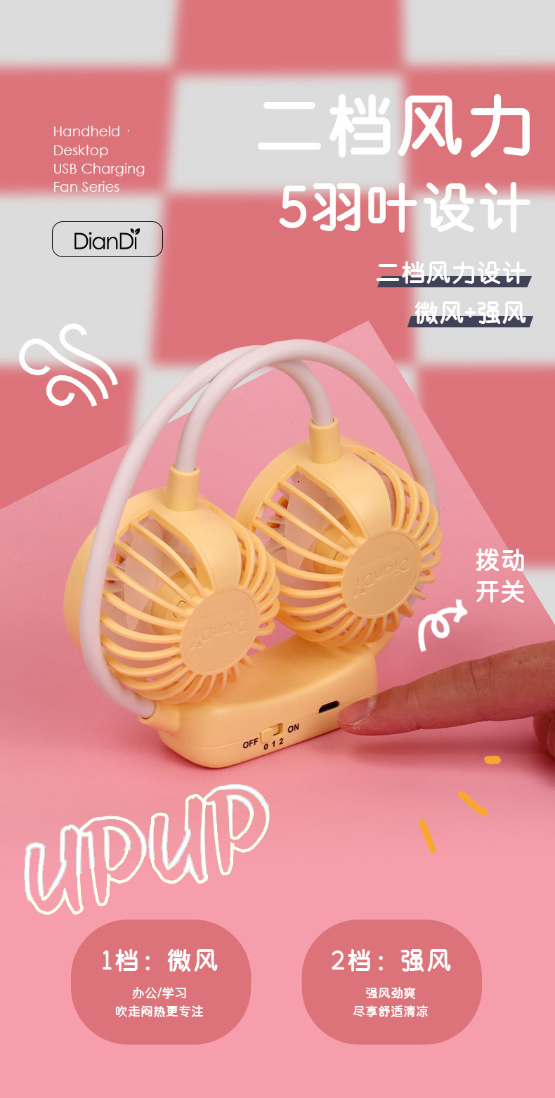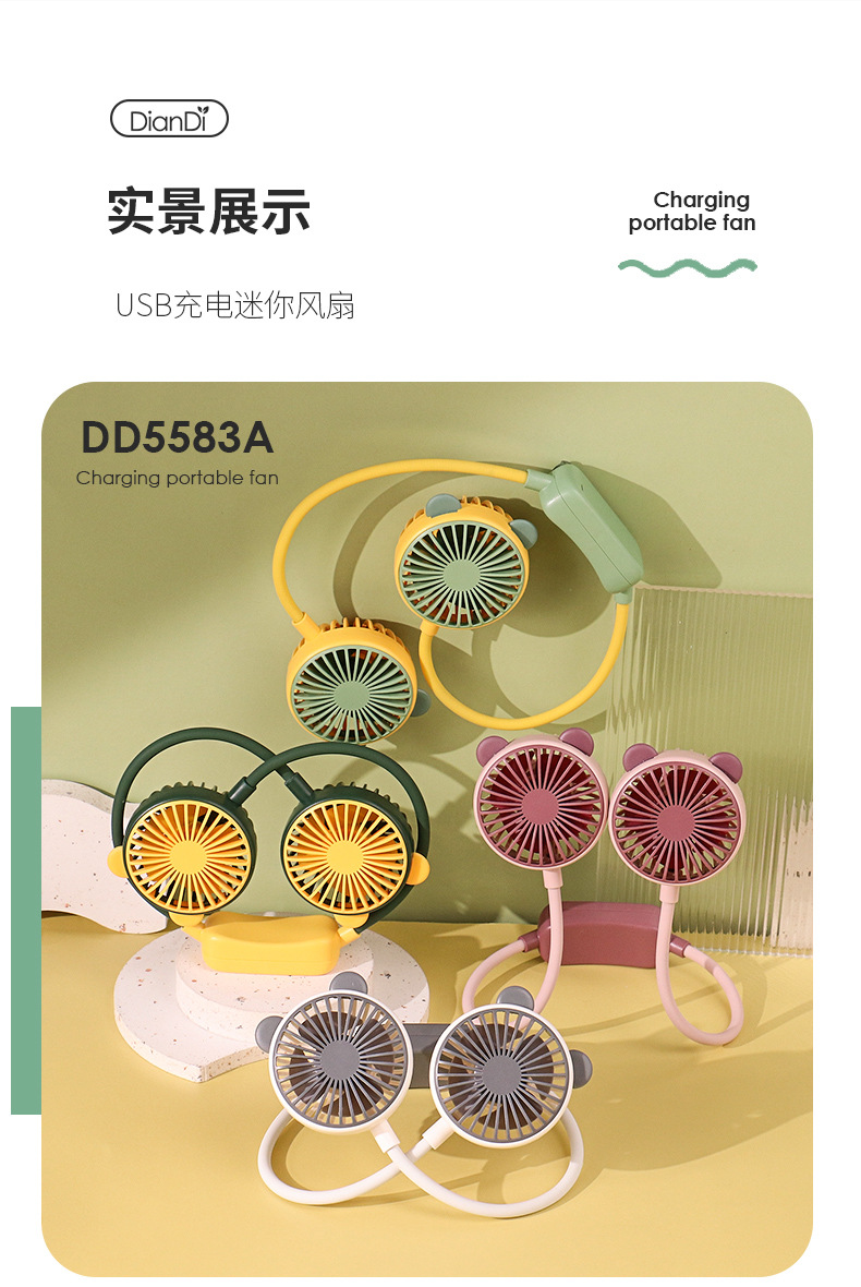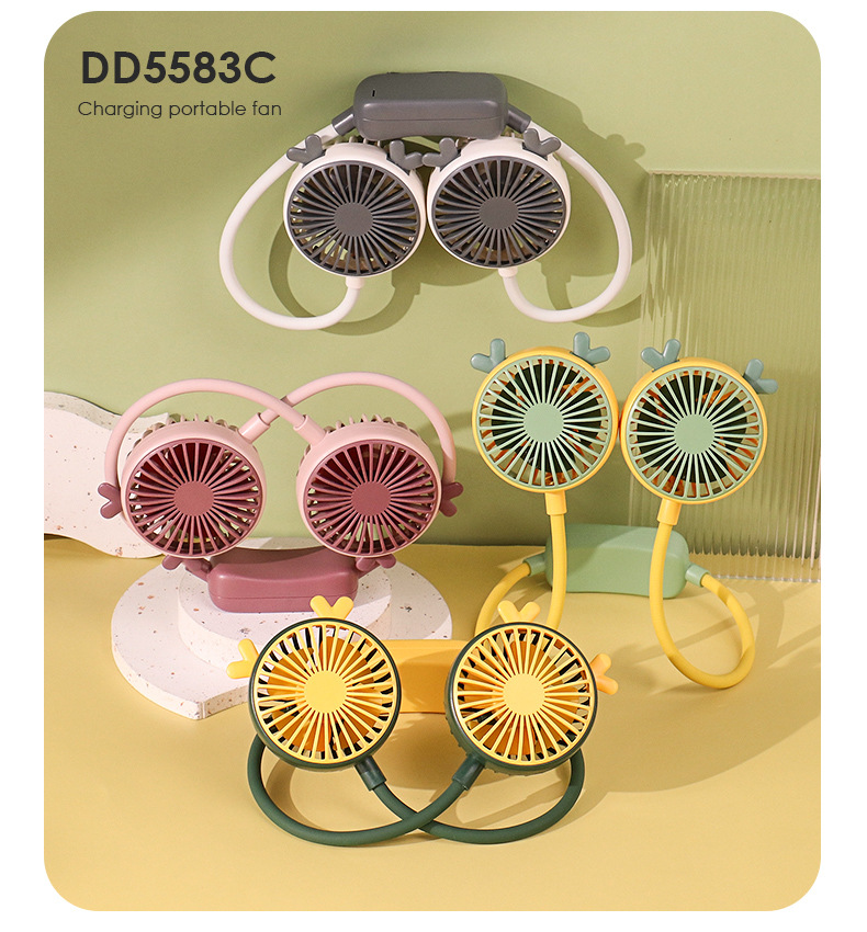 爆款卡通可爱挂脖小风扇usb充电折叠小风扇usb充电户外大风力电扇
