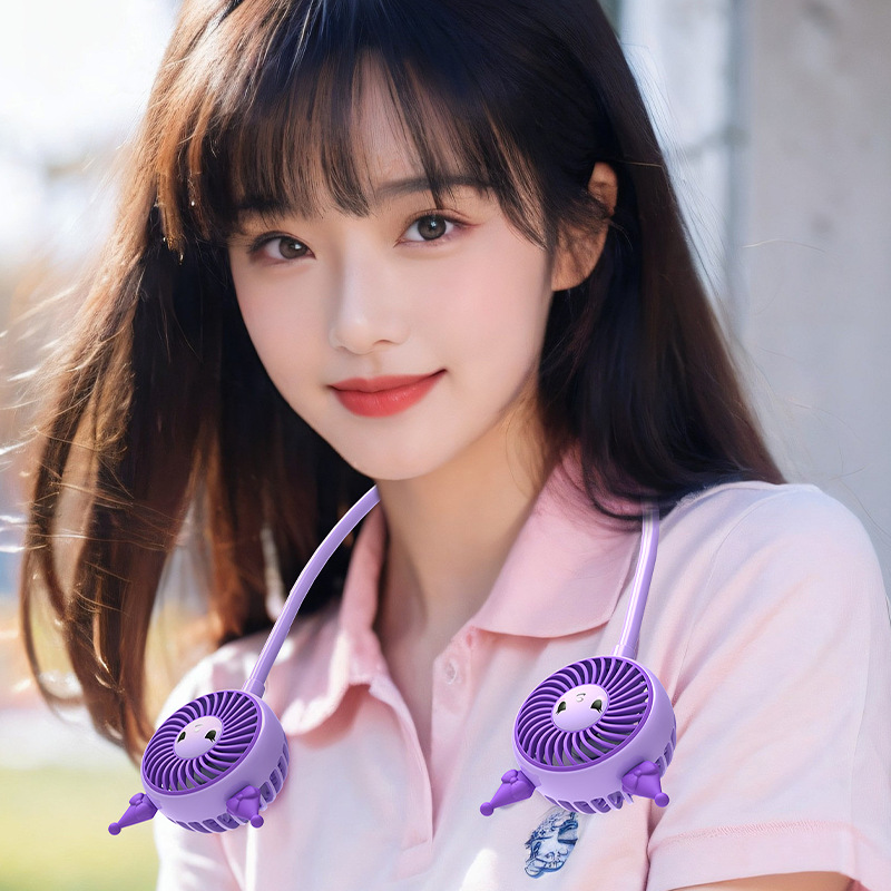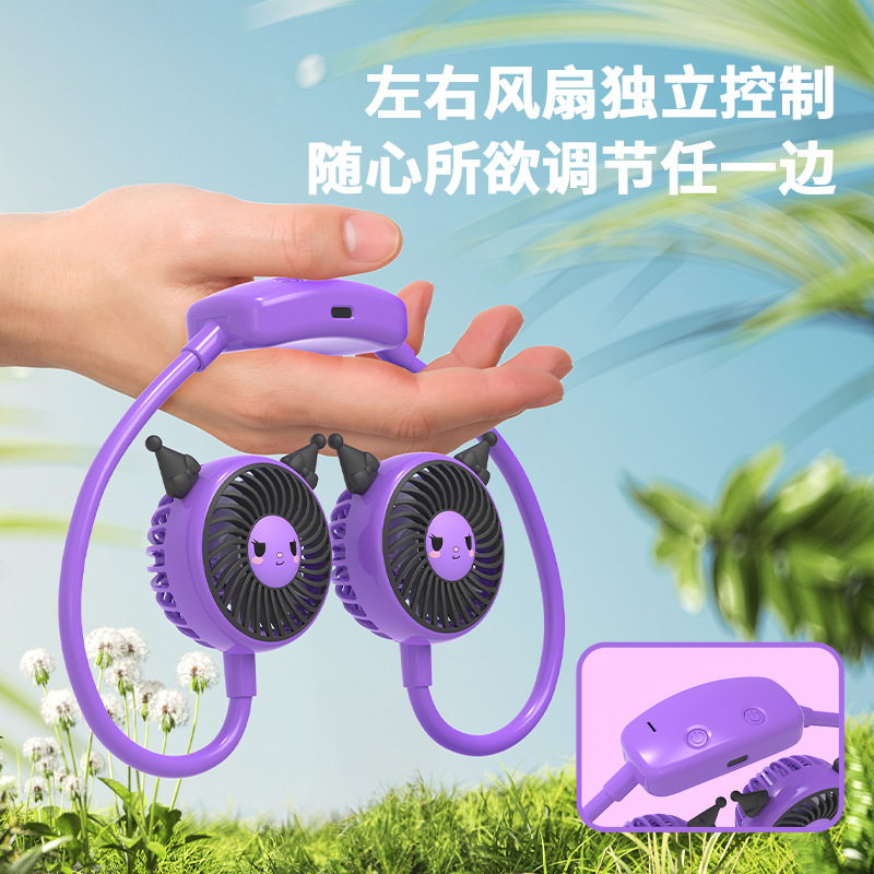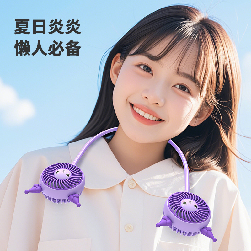卡通懒人挂脖风扇便携式户外运动小风扇大风力usb充电学生电风扇