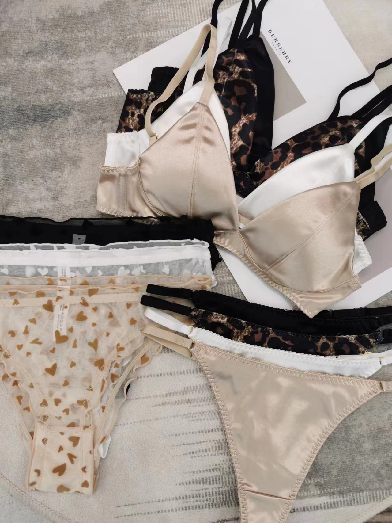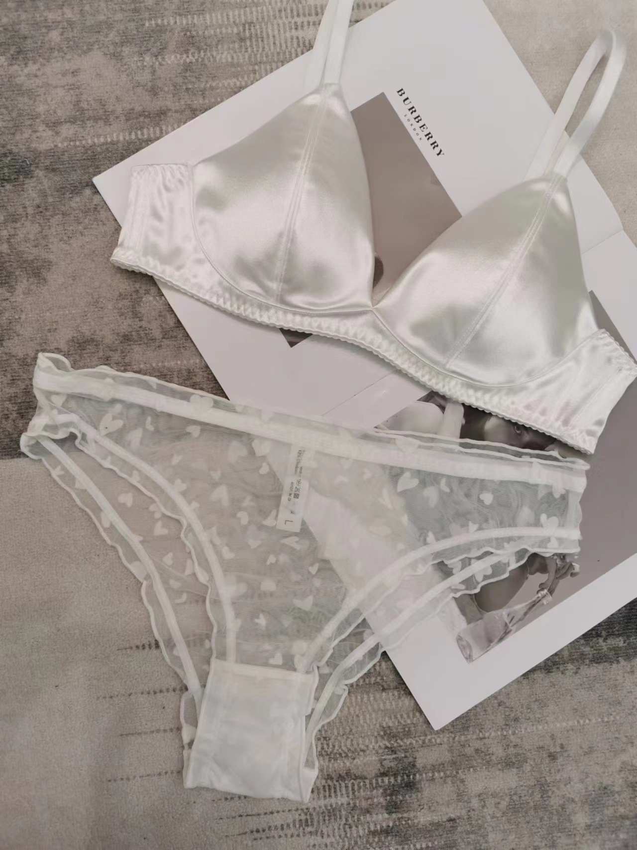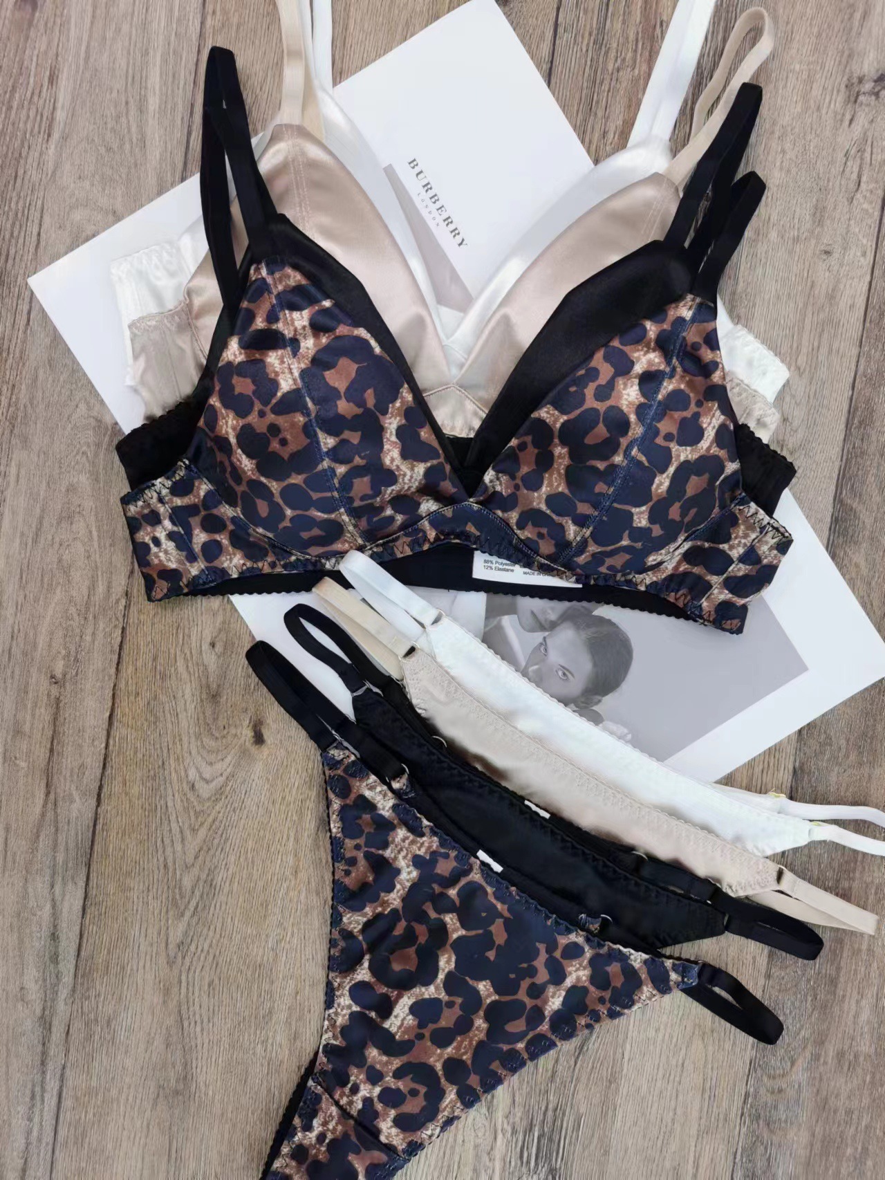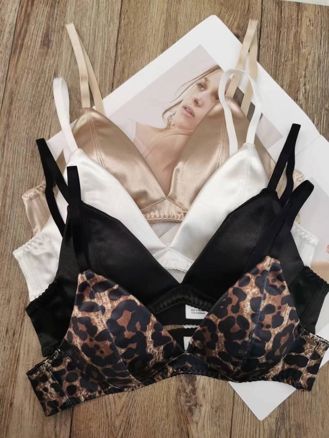 法式性感内衣薄款无痕缎面三角杯无钢圈文胸套装大胸显小大码内衣