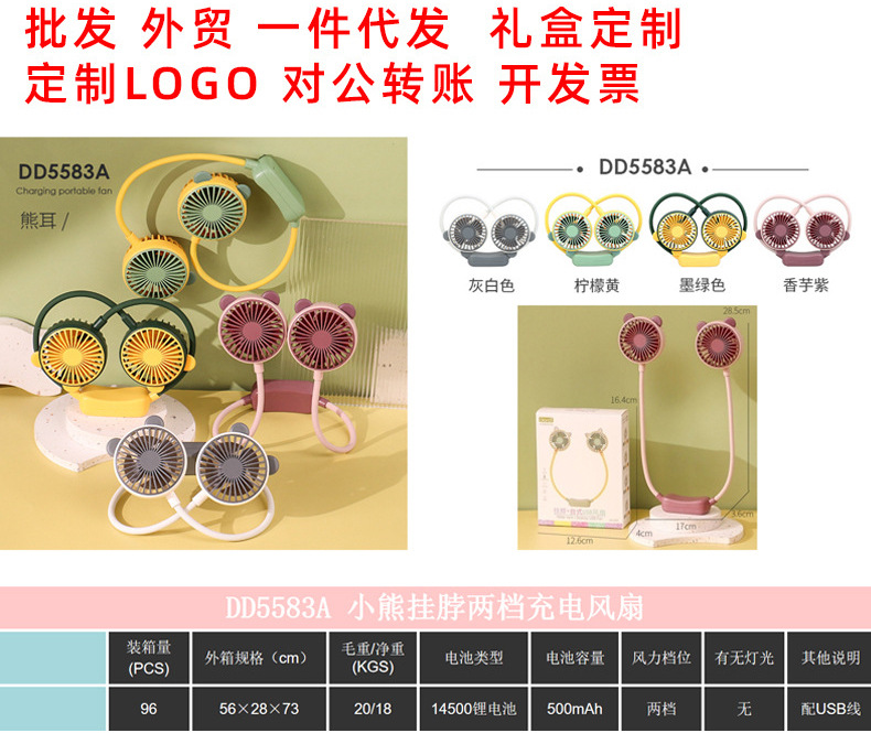 挂脖小风扇挂颈式电风扇充电可折叠 USB迷你便携式户外小电扇
