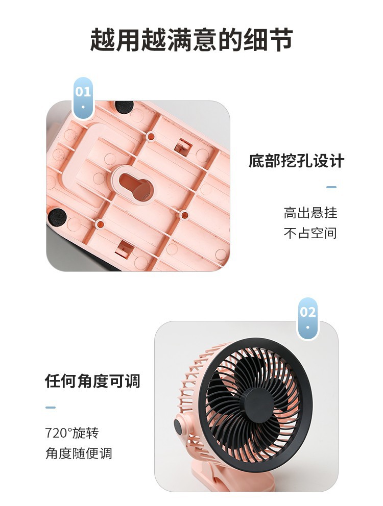 新款夹子小风扇USB充电迷你夏季静音夹子便携办公宿舍可旋转电扇