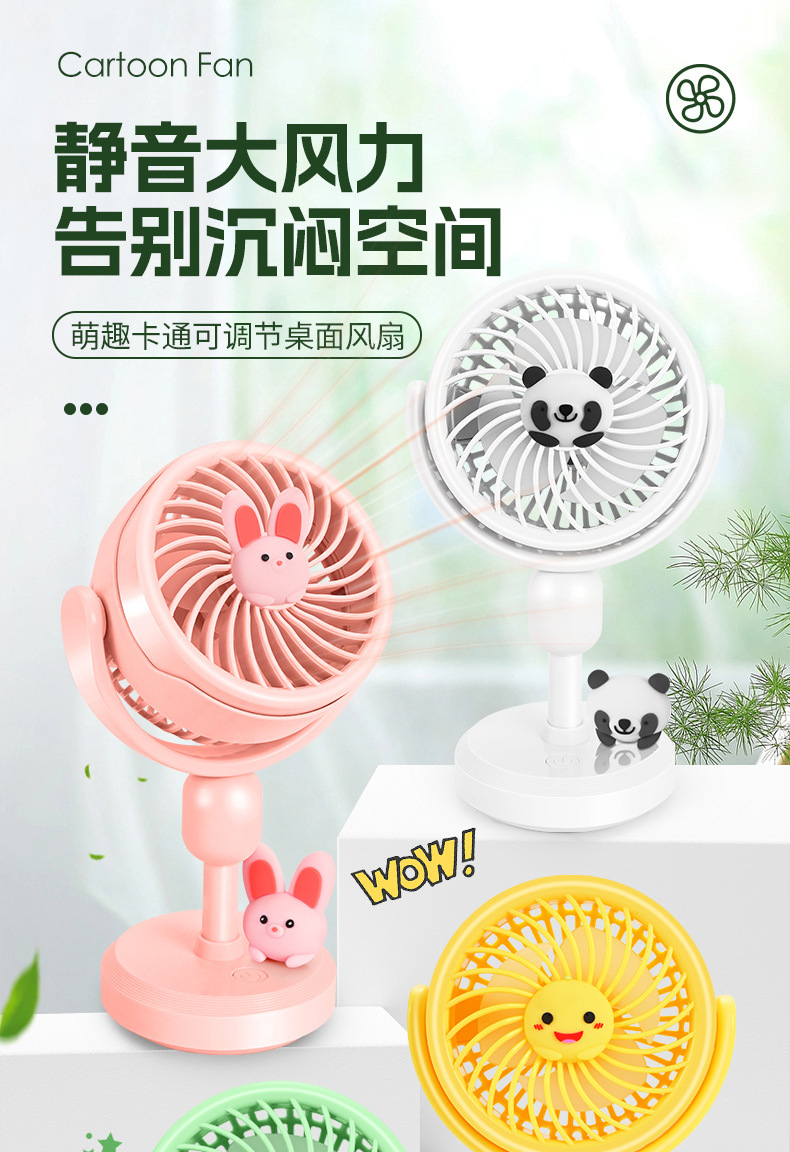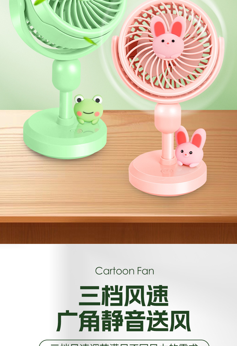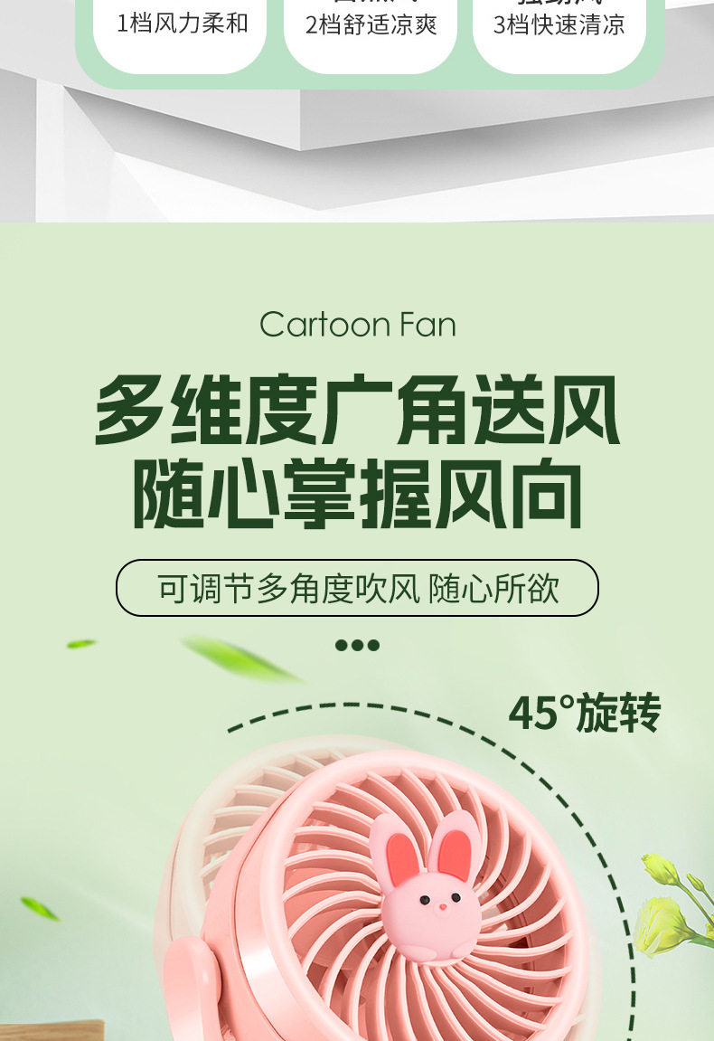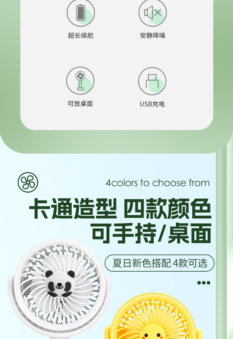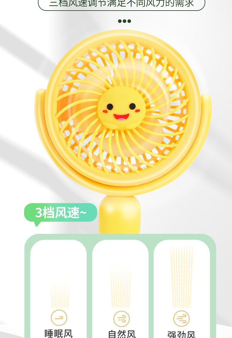 跨境新款卡通三挡手持台式小风扇静音大风力便携式学生学习电扇厂